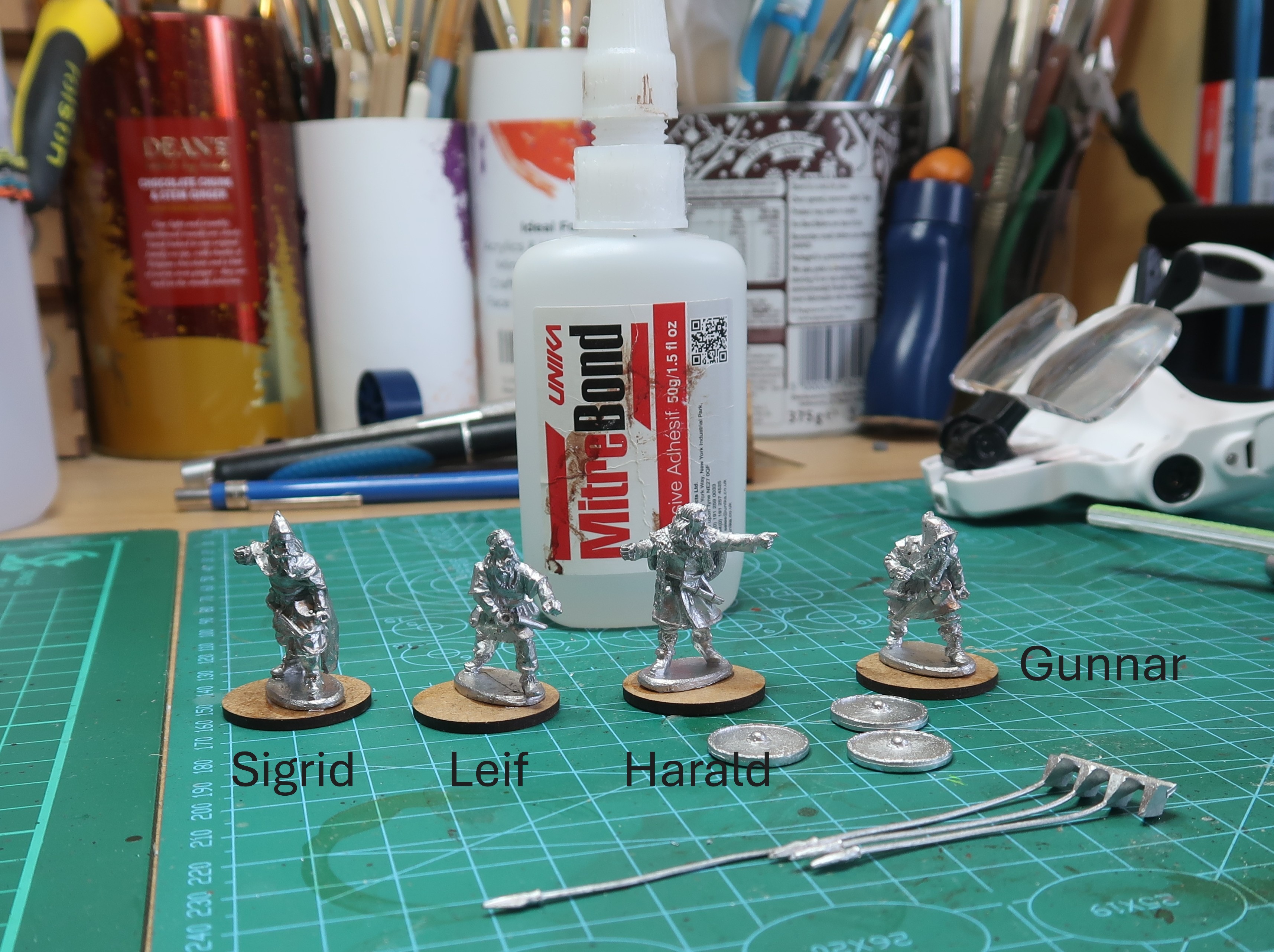 Time to name the band, so from left to right we have: Sigrid (with a long cloak); Leif (with some sort of bandana); Harald (with one eye and looks like he is in change to the gang); and Gunnar (who had a hood covering his face).