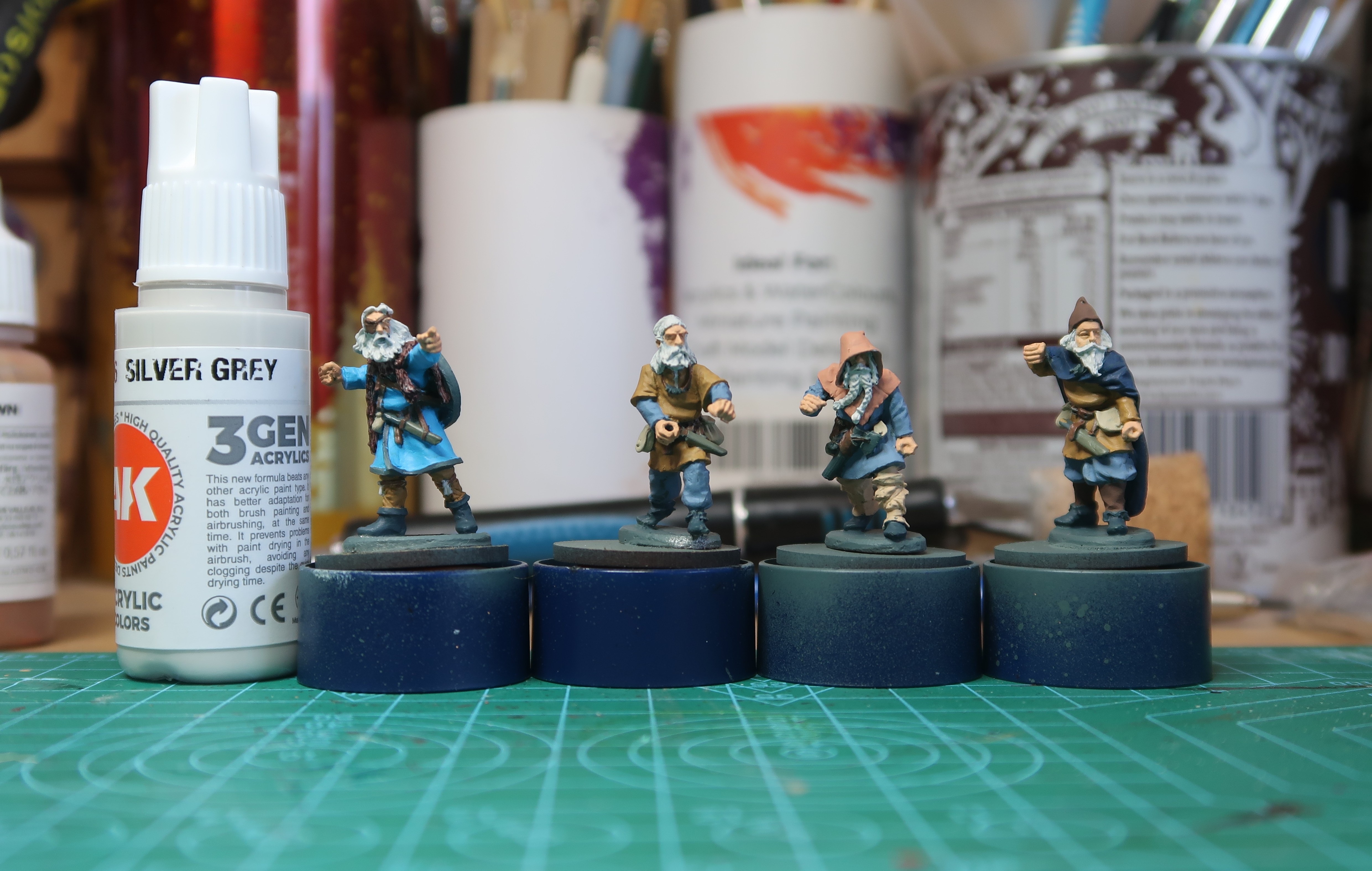 The gang got Silver Grey (AK) on all the bits that looked like hair (I use Silver Grey as (1) it seems to cover a bit better than white and (2) I seem to have two pots of it (not sure how that happened and when I find the person who bought the extra one, we will have words).