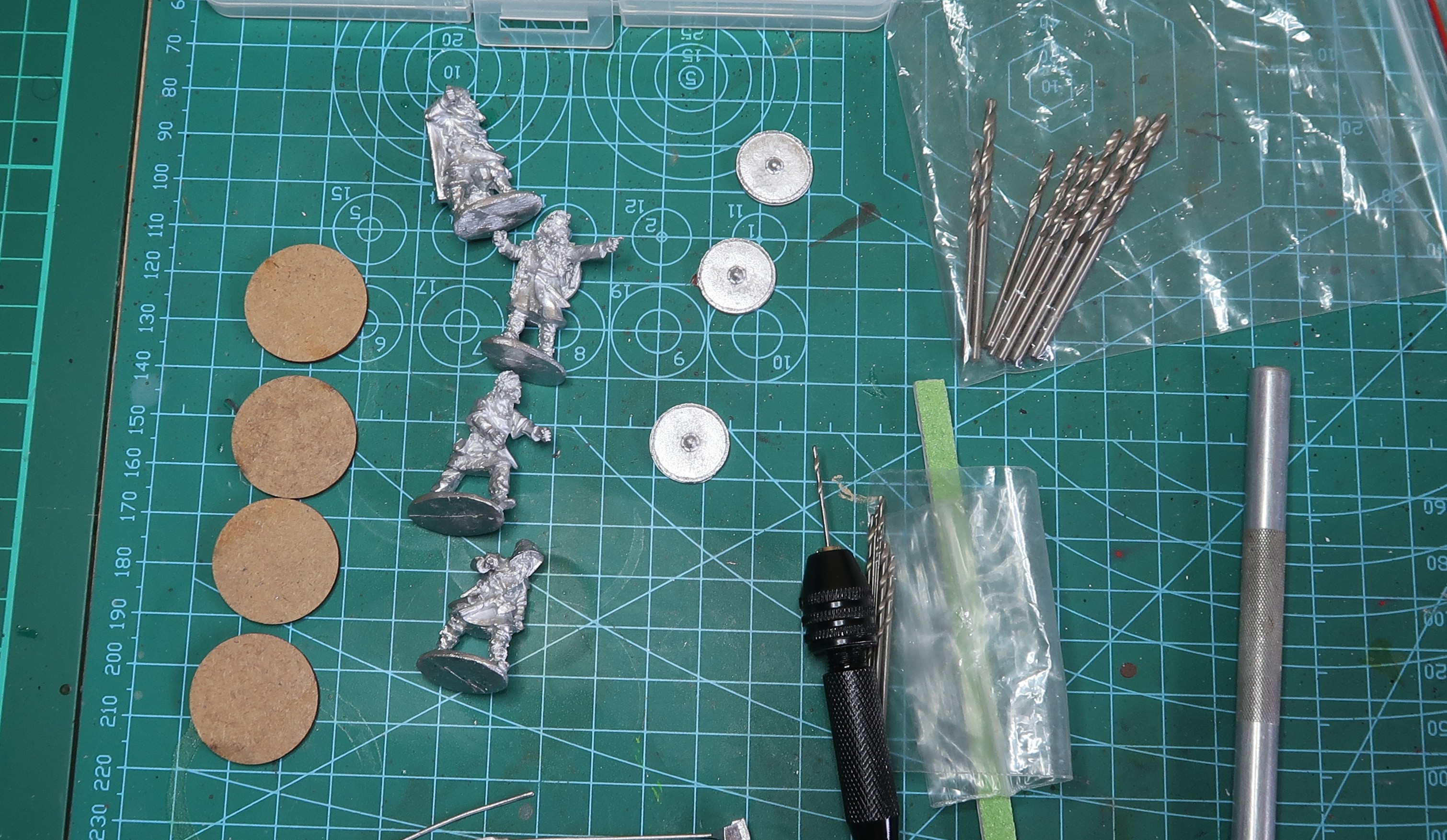 Finish the clean up (the legend before had done a great job), drilled the hands for the spears (the drill I used was just a bit bigger then the spear so everything slipped in well, (I was so proud that this worked as I have made some real messes when using a drill in the past… this pride came home to haunt me) and glued them onto the bases.