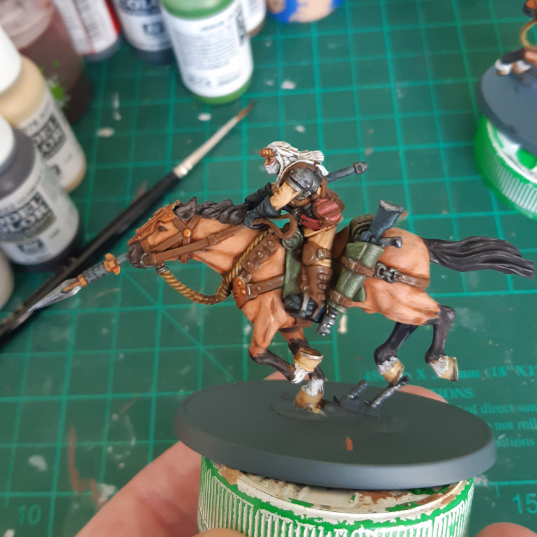 The bottom of the horses’ legs had Vallejo Model Colour Off-White added, as did the head scarves of the riders. These are both likely to get some additional highlights added later.