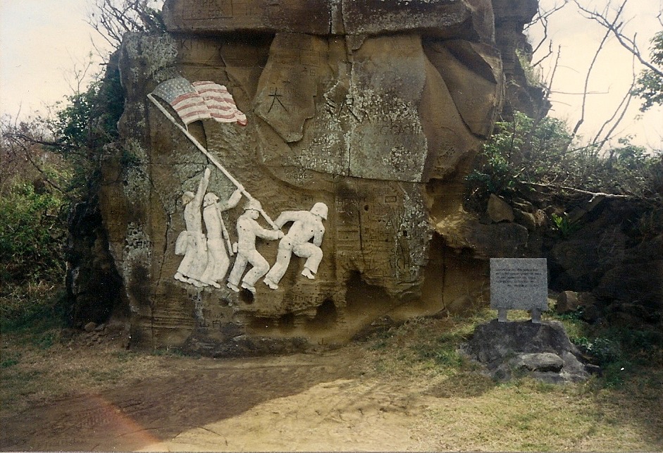 One of the Marine Corps memorials. This one is on top of Mt Suribachi. This one specifically is the site of the flag raising. Behind the memorial you can see the airfield.