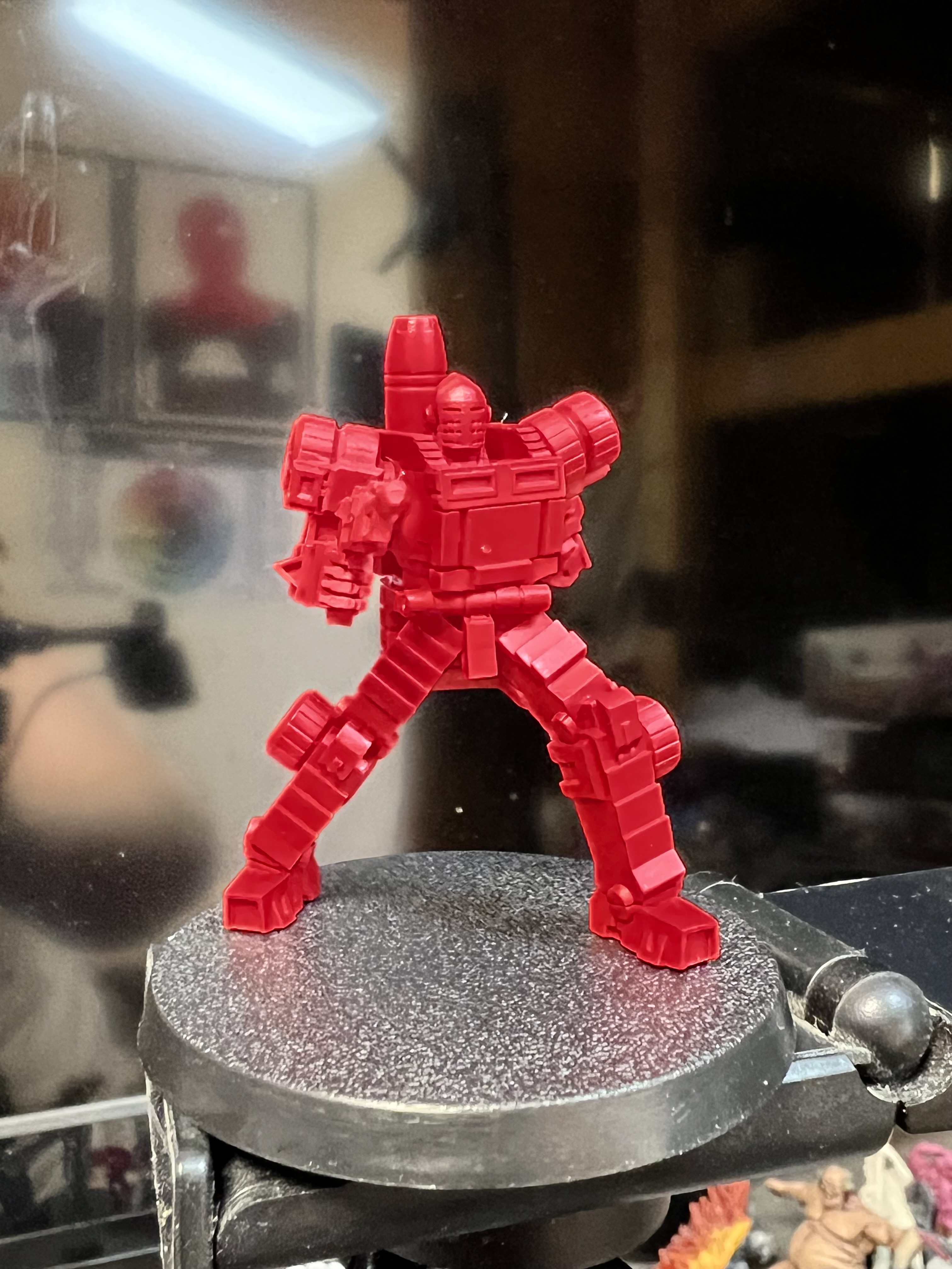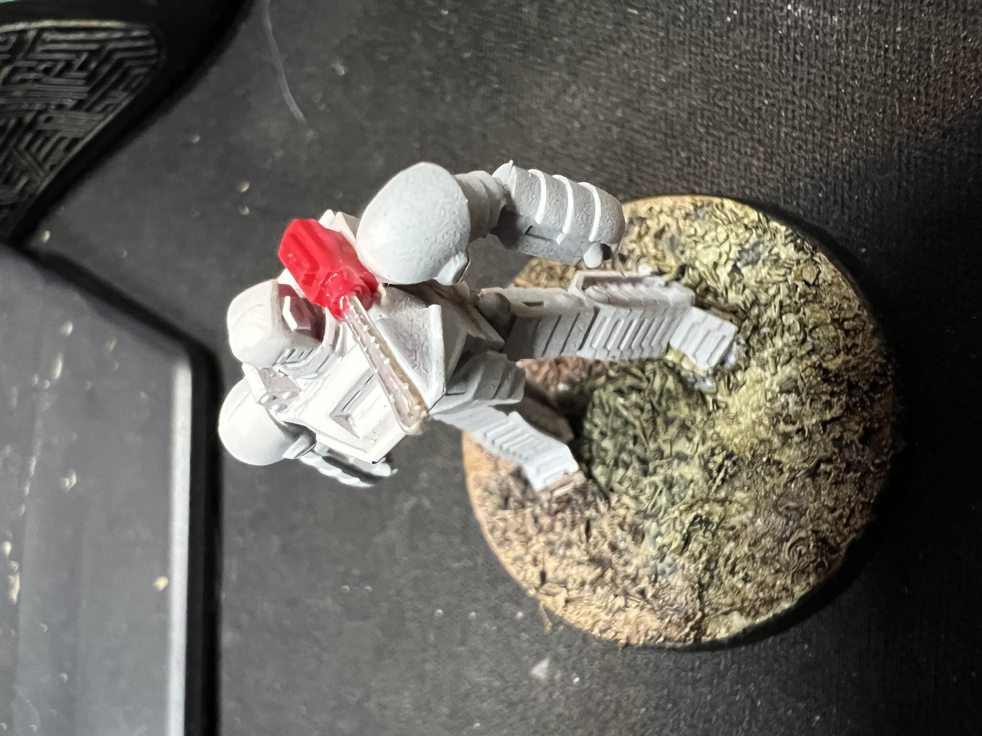 Also I had a mini that I suddenly realised I had forgotten to attach its shoulder cannon. So I glued that on and then knocked something over on the table and it knocked the end of the gun off so I had a thing to do in the end of it