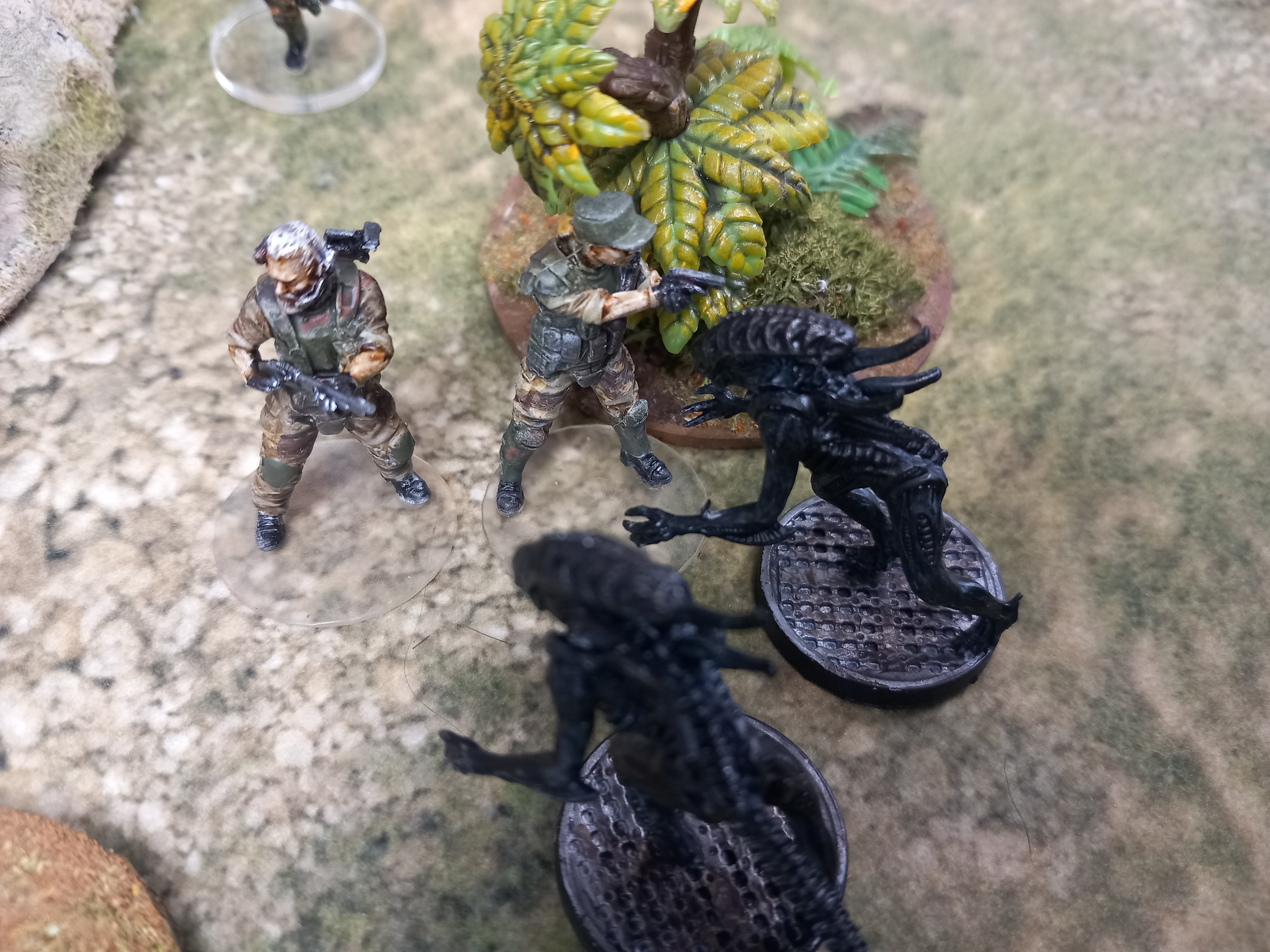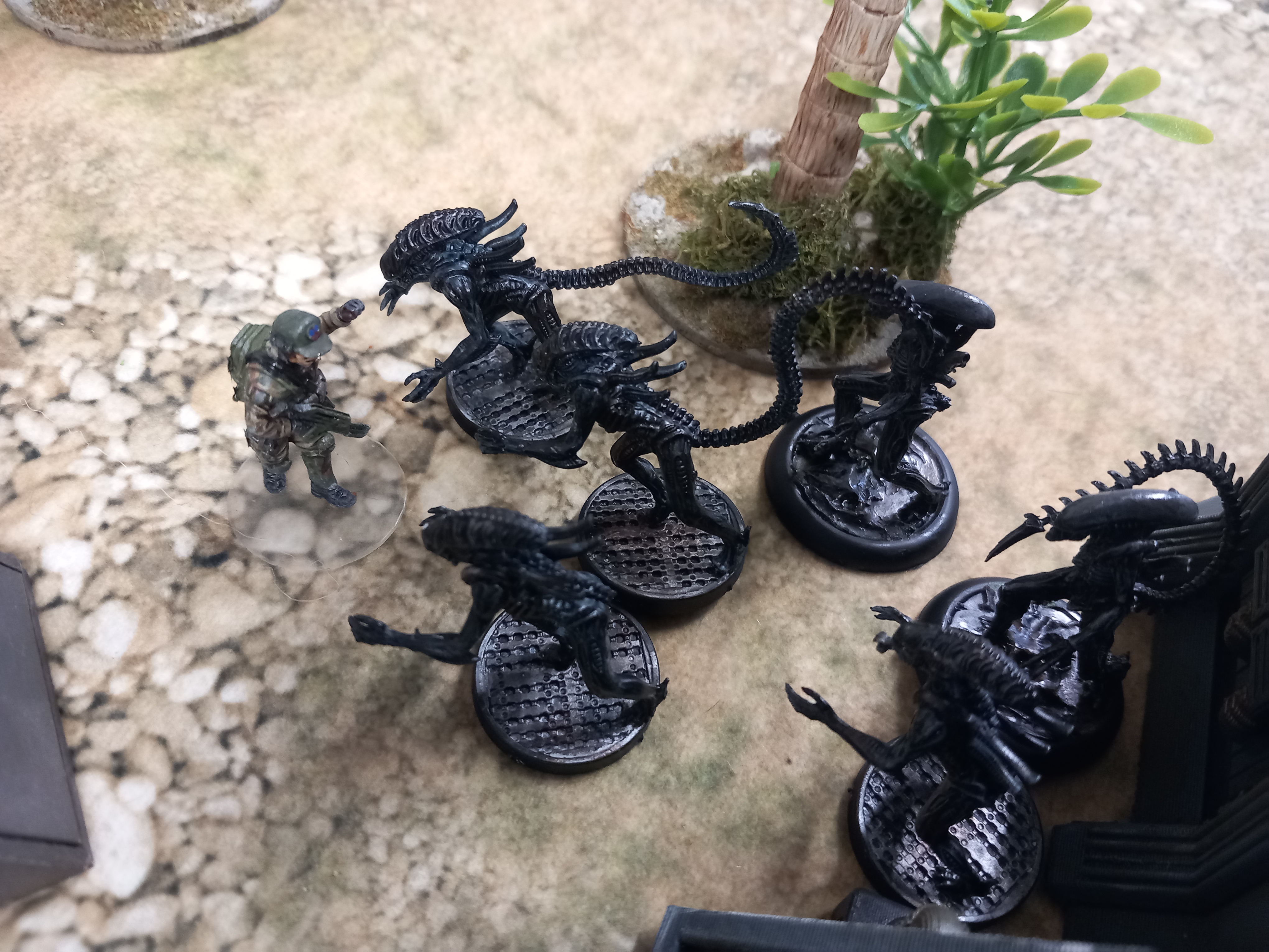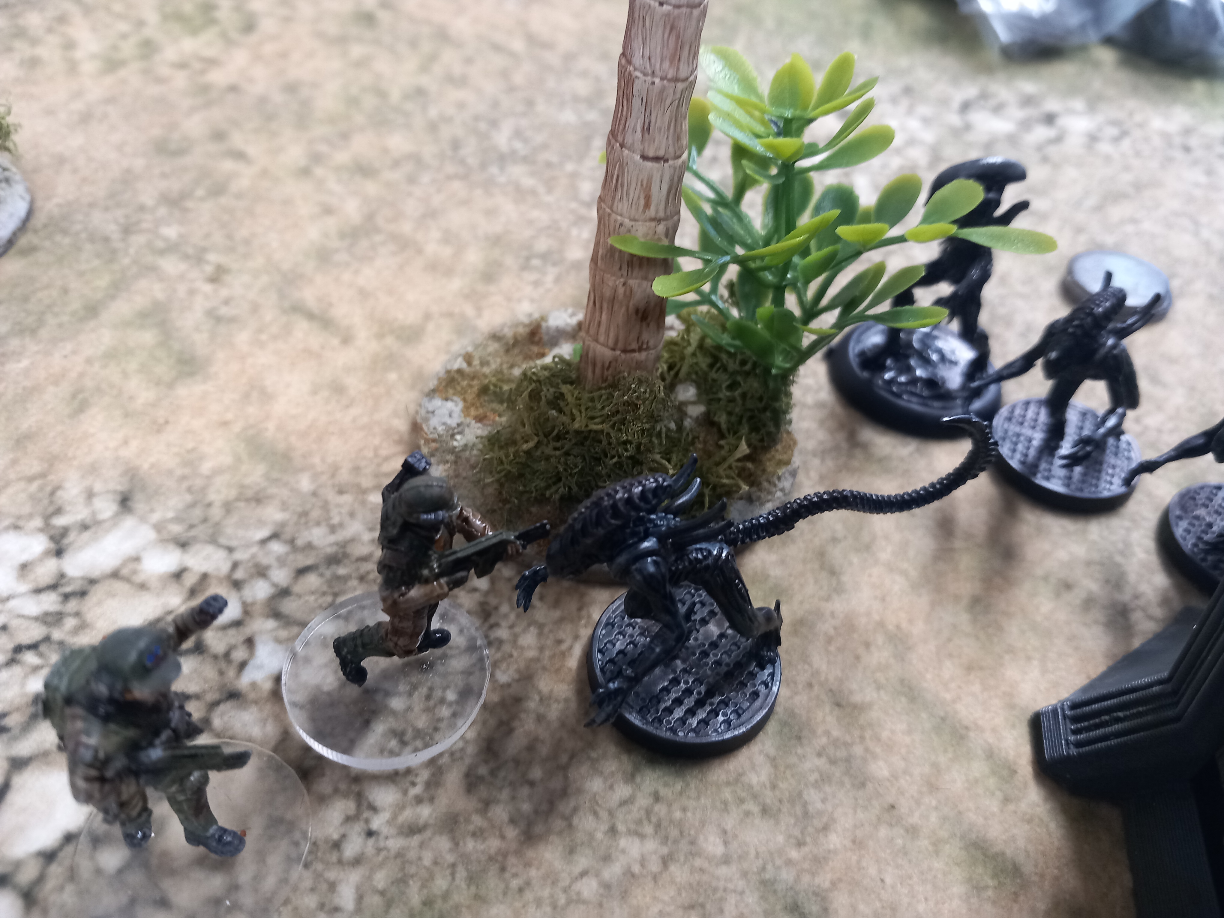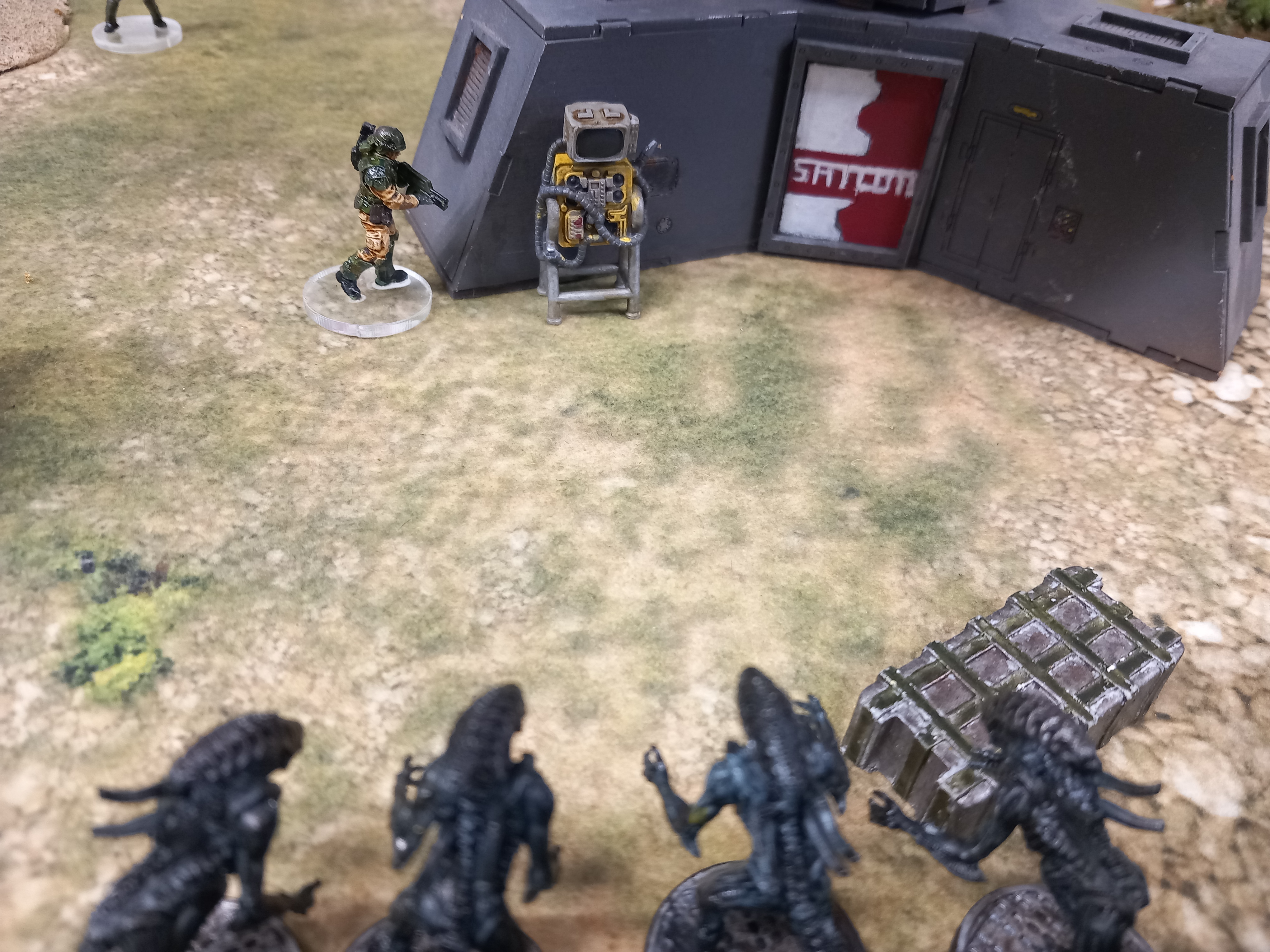 The counters and dice I use are all from the Alien rpg so they fit the theme. The marines move on to an objective which when rolled up crested a distraction which prevented any alien models within 18 inches from moving. This was useful as I kept rolling doubles bringing more on the board. Whenever a blop was neared a roll indicates if its a false alarm but I was getting D3+1 aliens everytime
