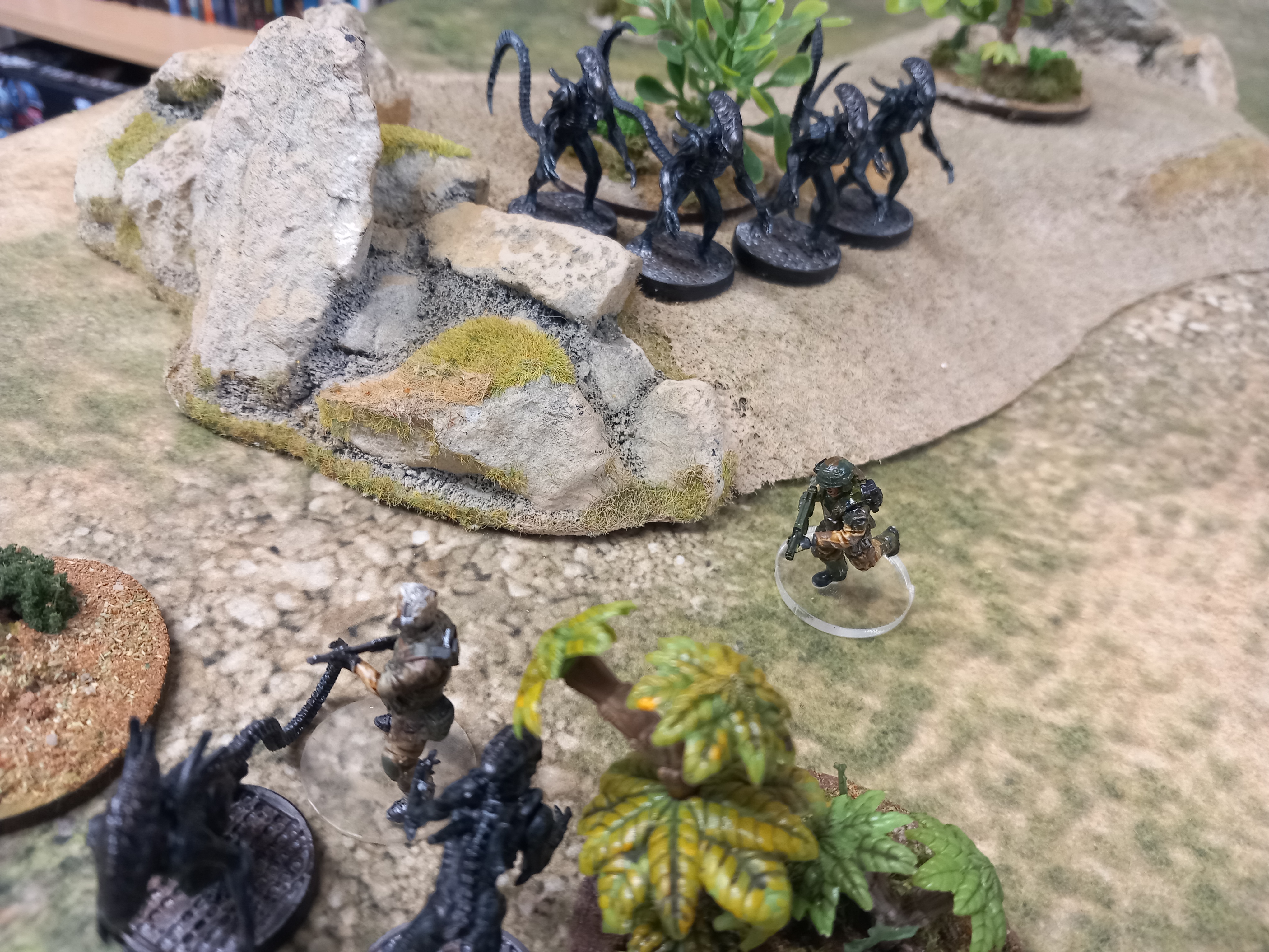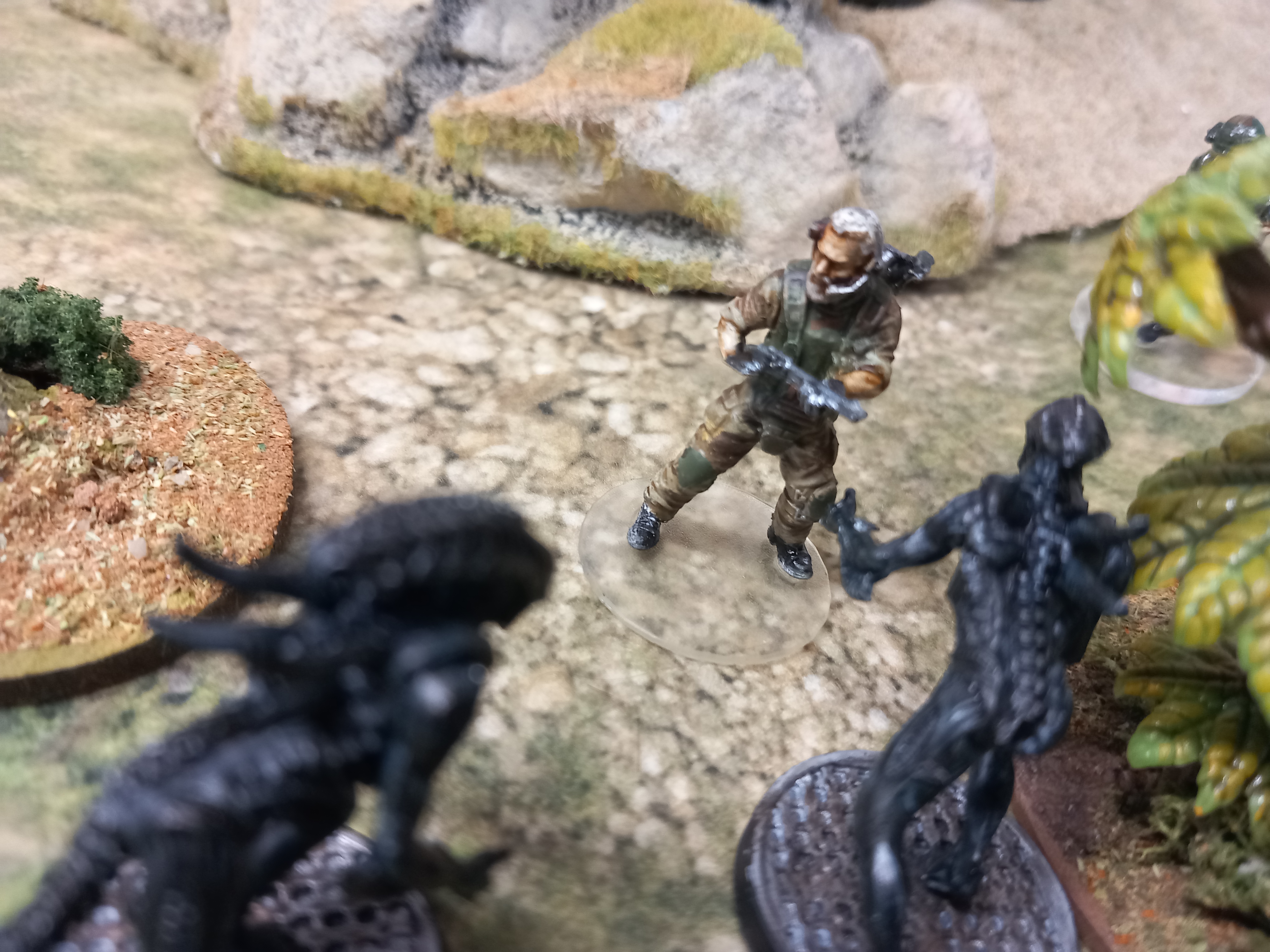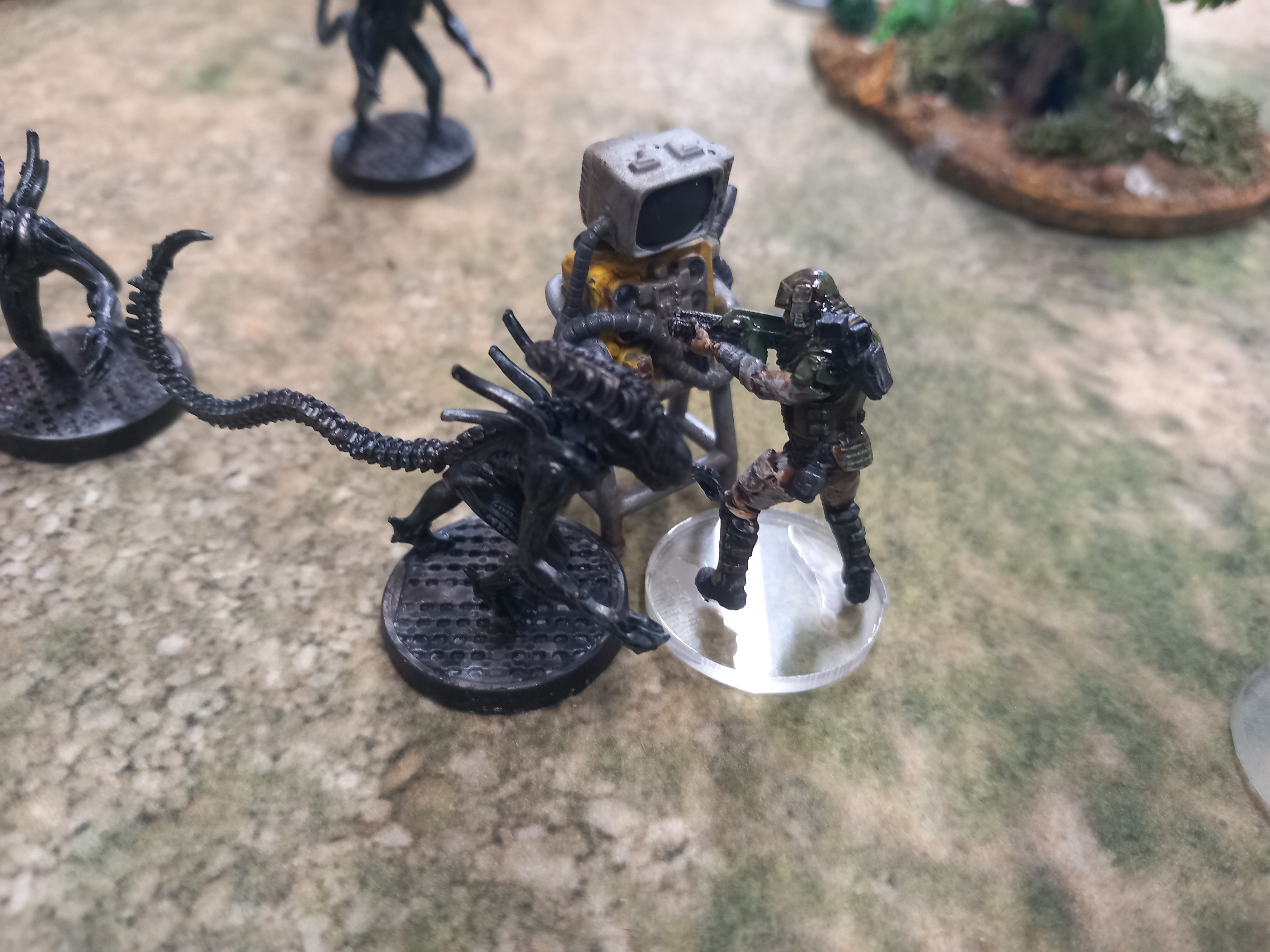 Not so lucky in the middle of the field where xenos are detected of the acid spitting variety. Luckily they appear in the field of fire and quickly disposed of