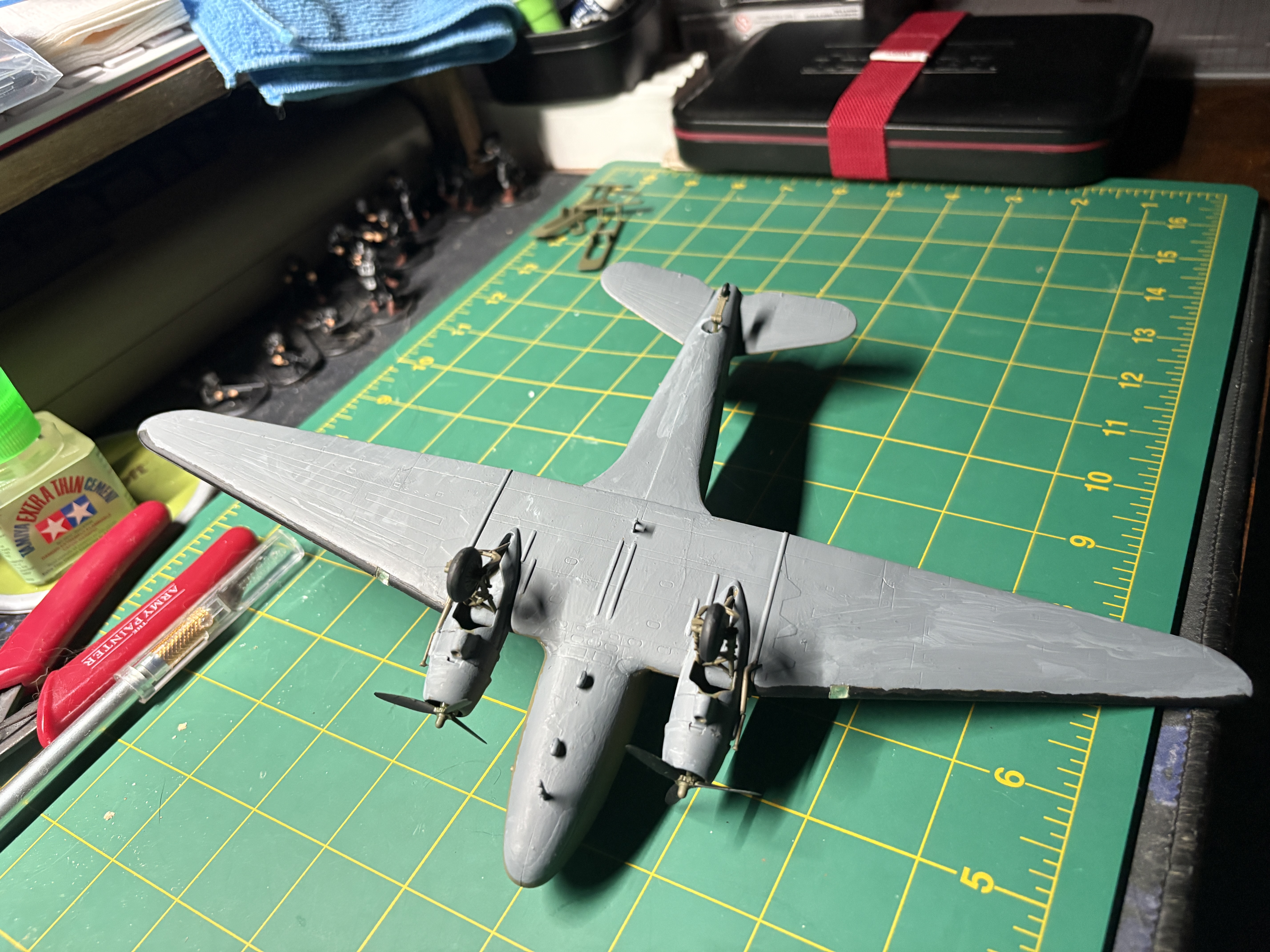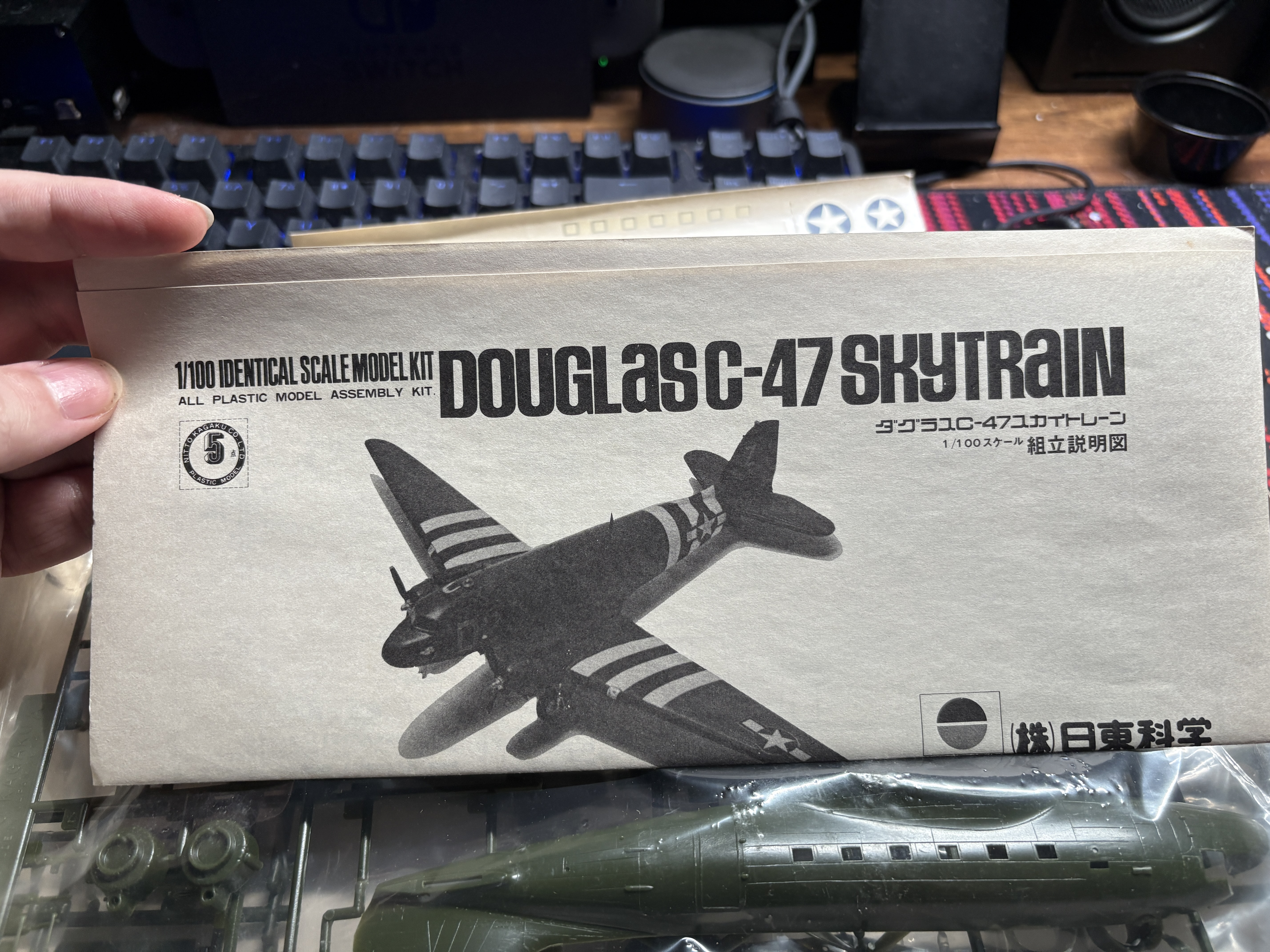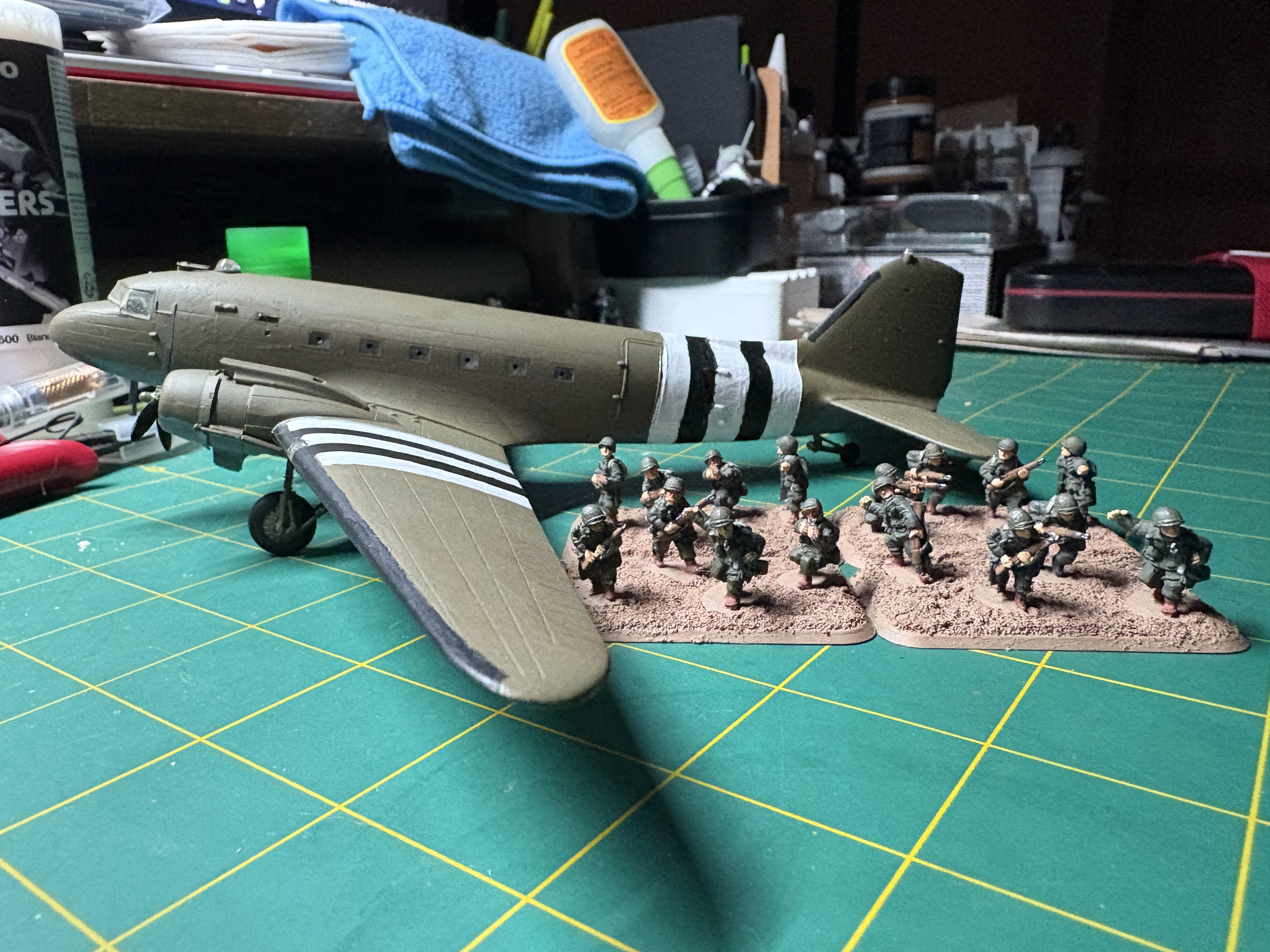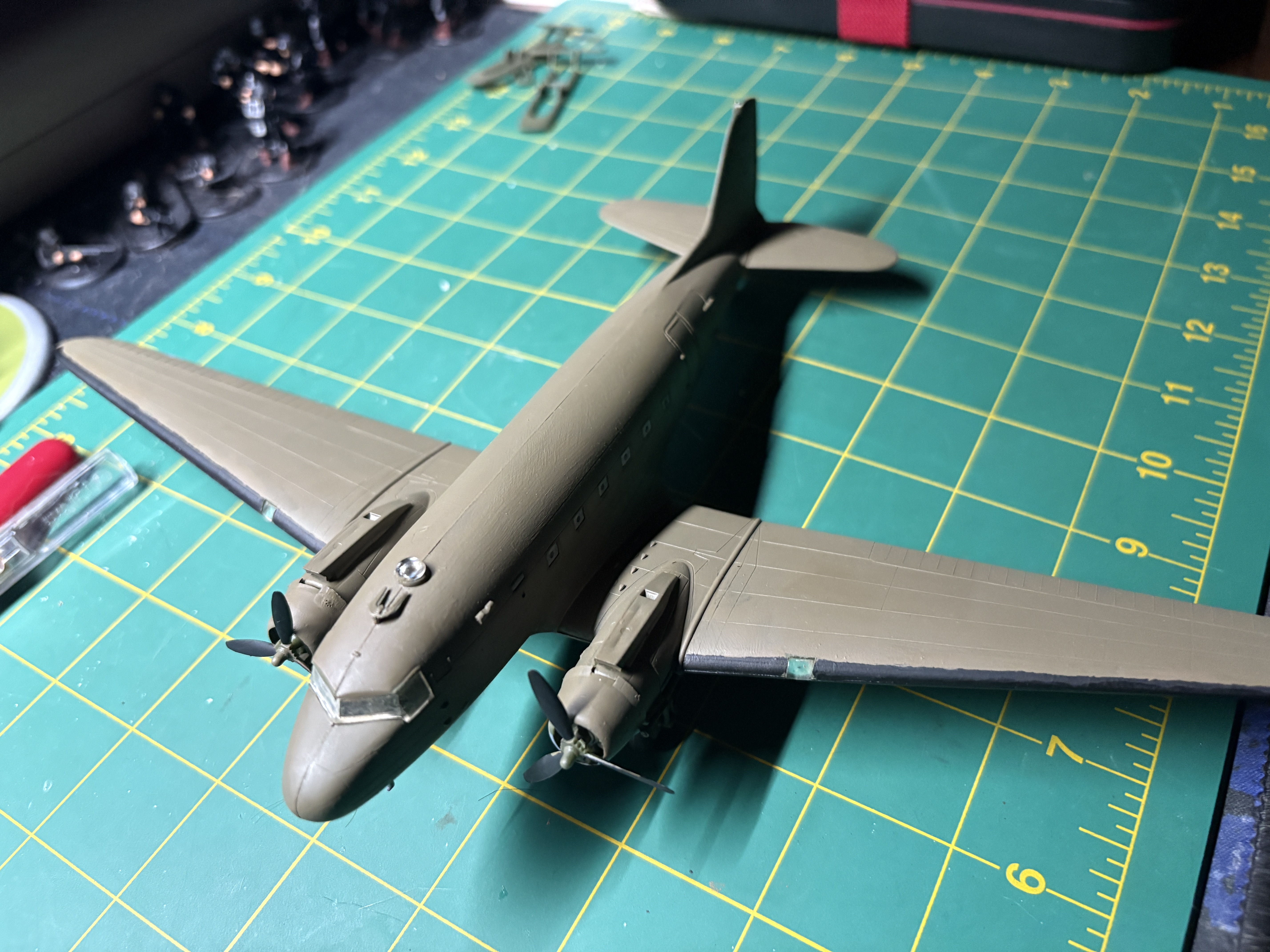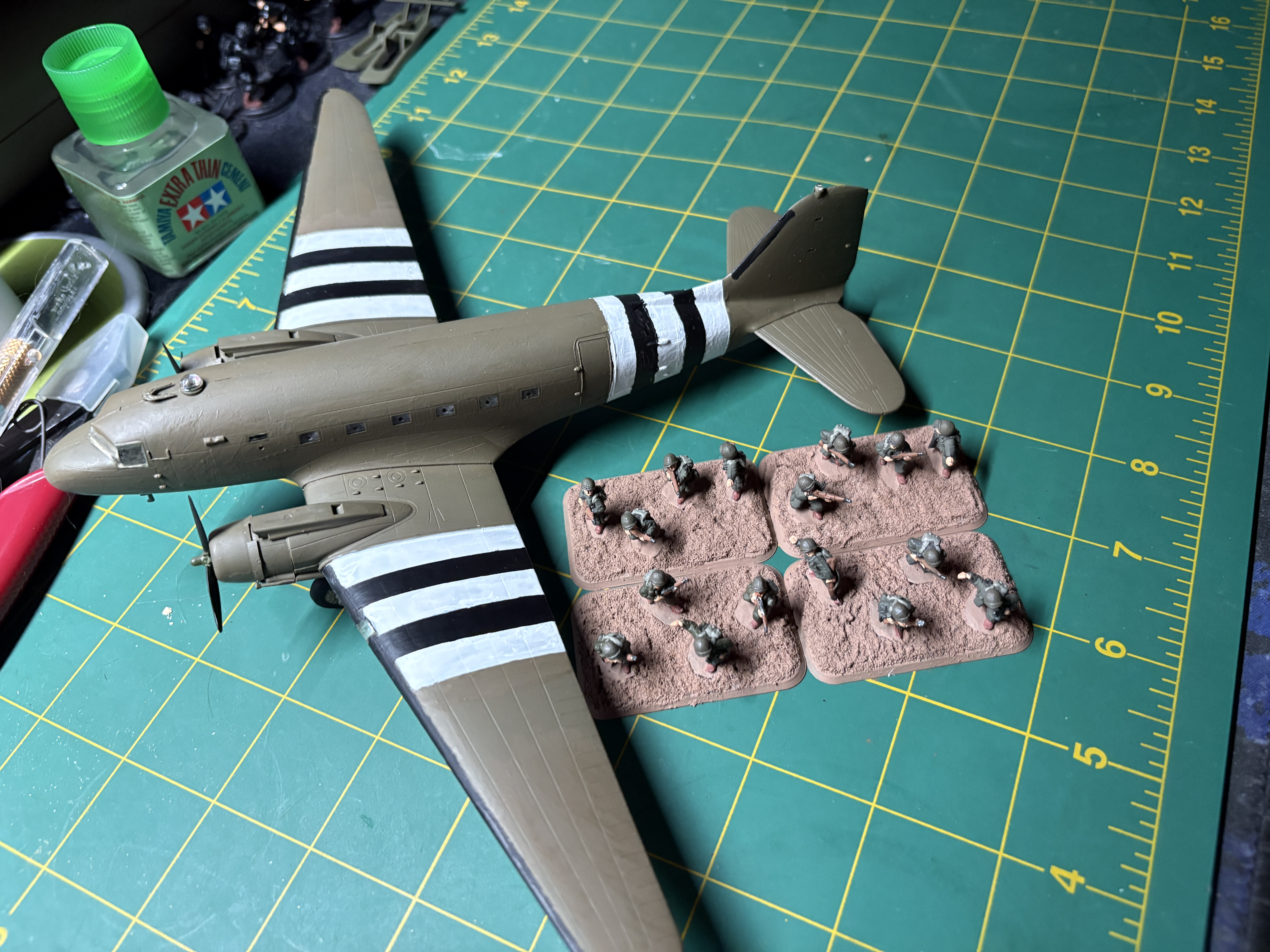 I wanted to make a nice display piece for my Flames of War Airborne army so found a 1:100 model kit of the plane they used for air drops. The model is older than I am. Then I sat on the model in storage for a few years. Time to break it out for Spring Cleaning Challenge 2025!