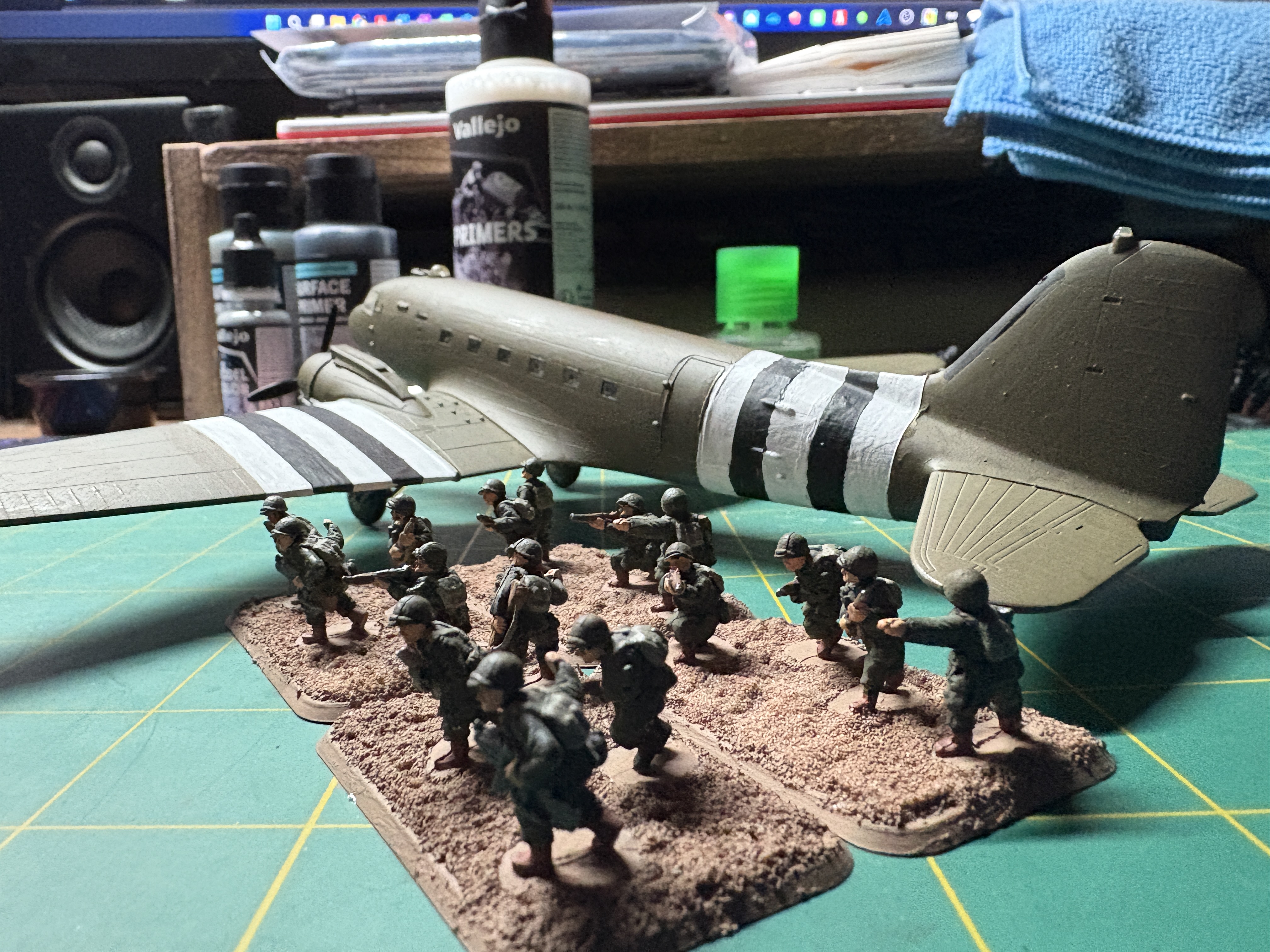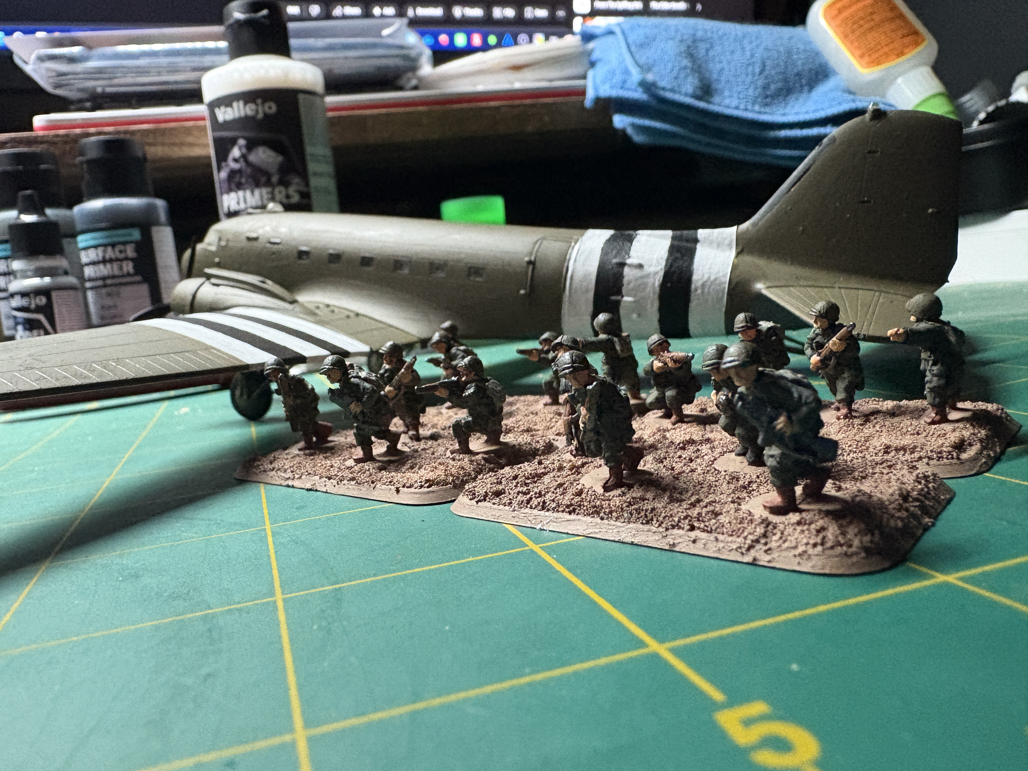 But look at how great the plane is with some Flames of War Airborne next to them. Perhaps one day I’ll make a display board for them. I also want to put some vegetation on the bases but that is for a future project this one is done for now.