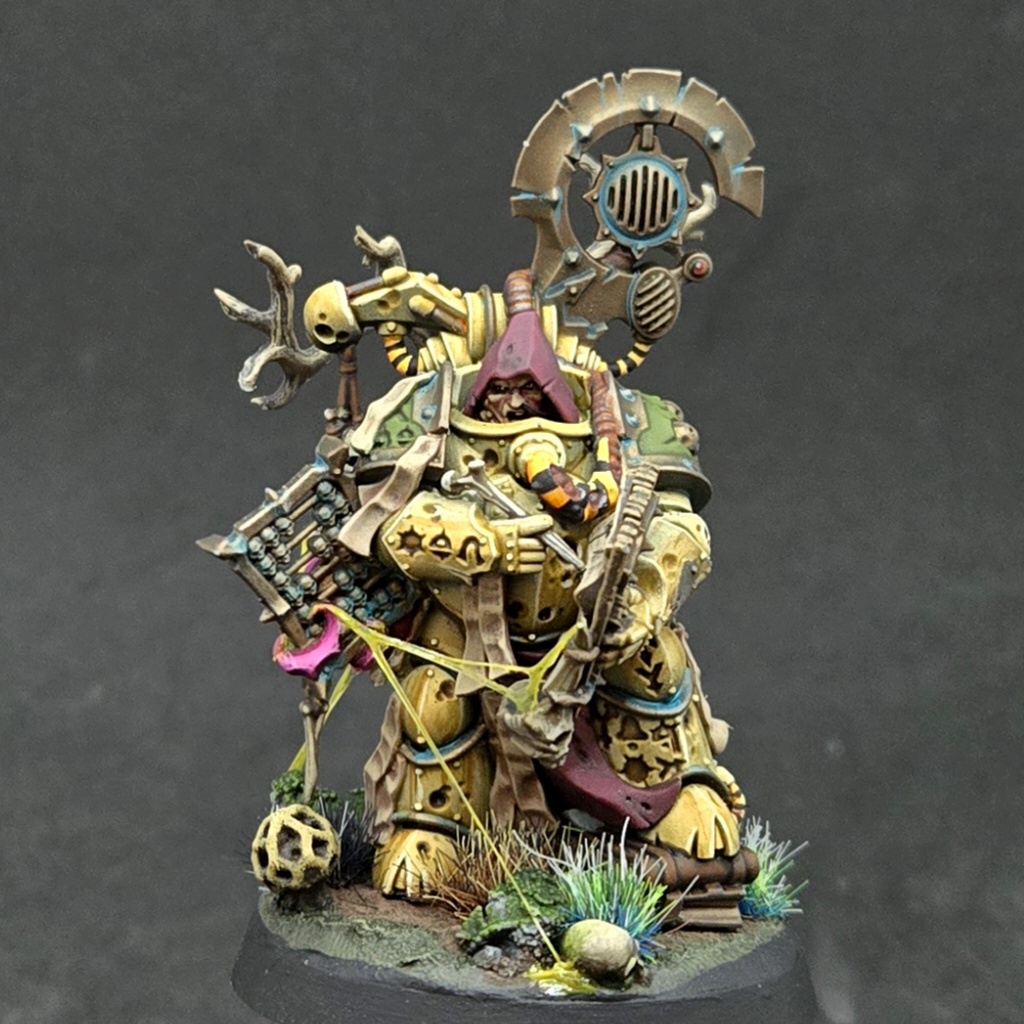 I begin my walk in Nurgle’s garden with the Tallyman. I wanted to have the army in pre heresy color just incredibly dirty and grimy. As for the bases, obviously a corrupted garden look. Dead trees bringing life to the things that decay them.