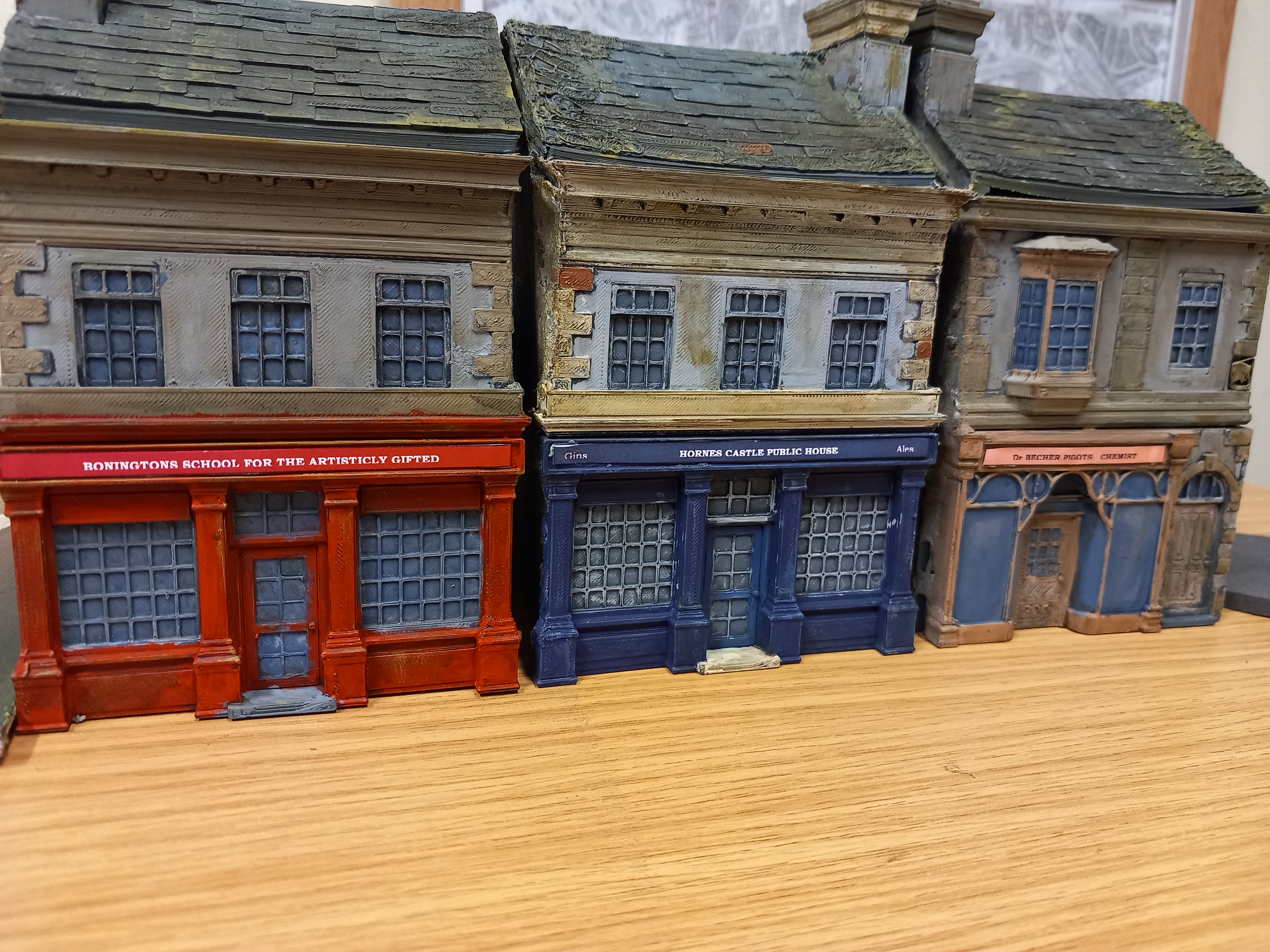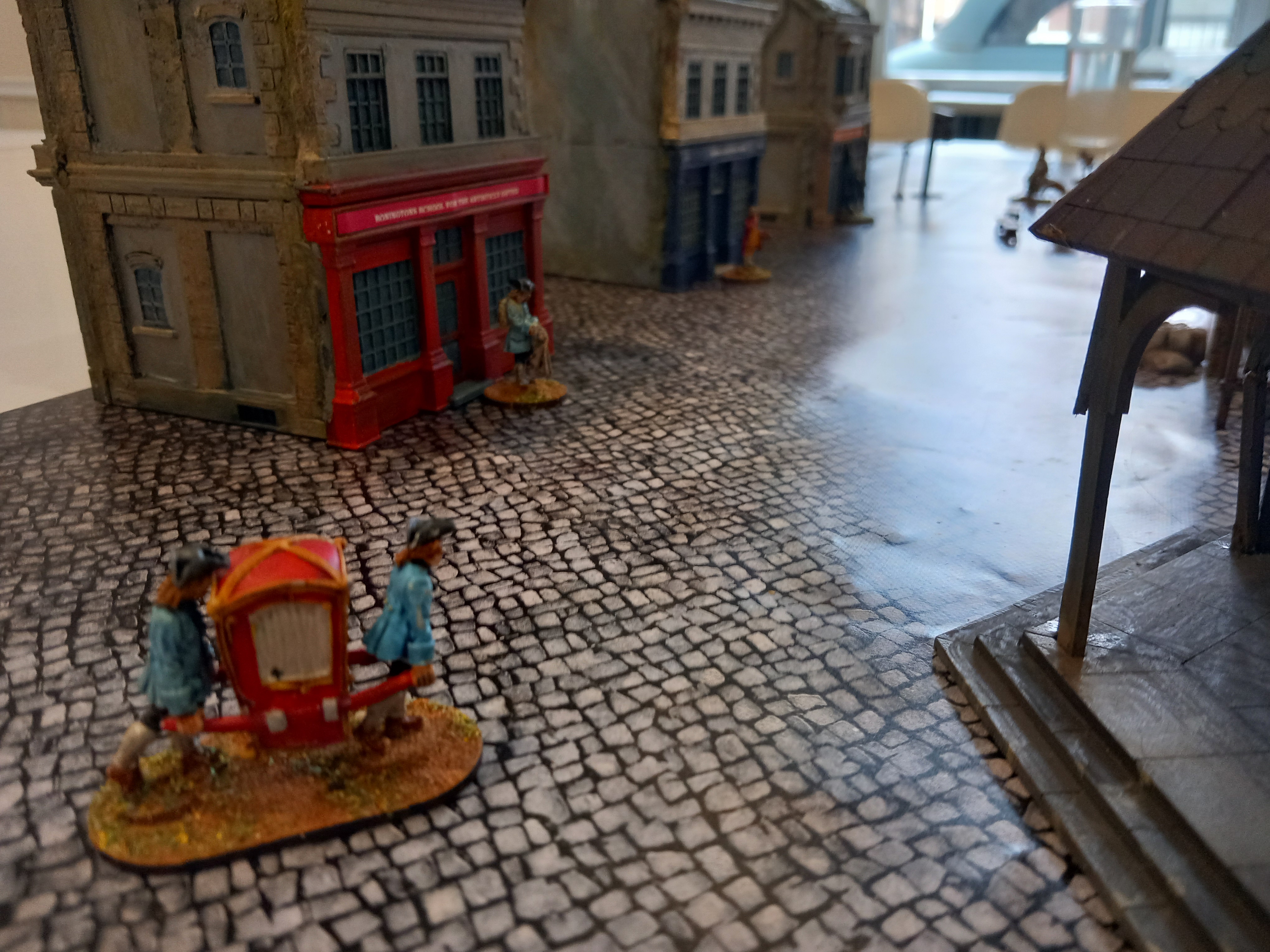 I need three buildings on one edge of my board do I took these from my collection and added some signage. Each sign is from something in Nottinghams history. Gaoler Bonington quit being a gaoler and opened a school and became an artist. Dr pigot was friends with byron and as an older man became hhe mayor and magistrate. He was arrested at ghe age of 70 when he pulled a gun on two bailiffs who entered his house. He counter prosecuted because they subdued him by hitting him with a poker. The case was dropped. Horses castle was a pub named after a Georgian bigamist and murderer.Revisiting the Cheese Riot