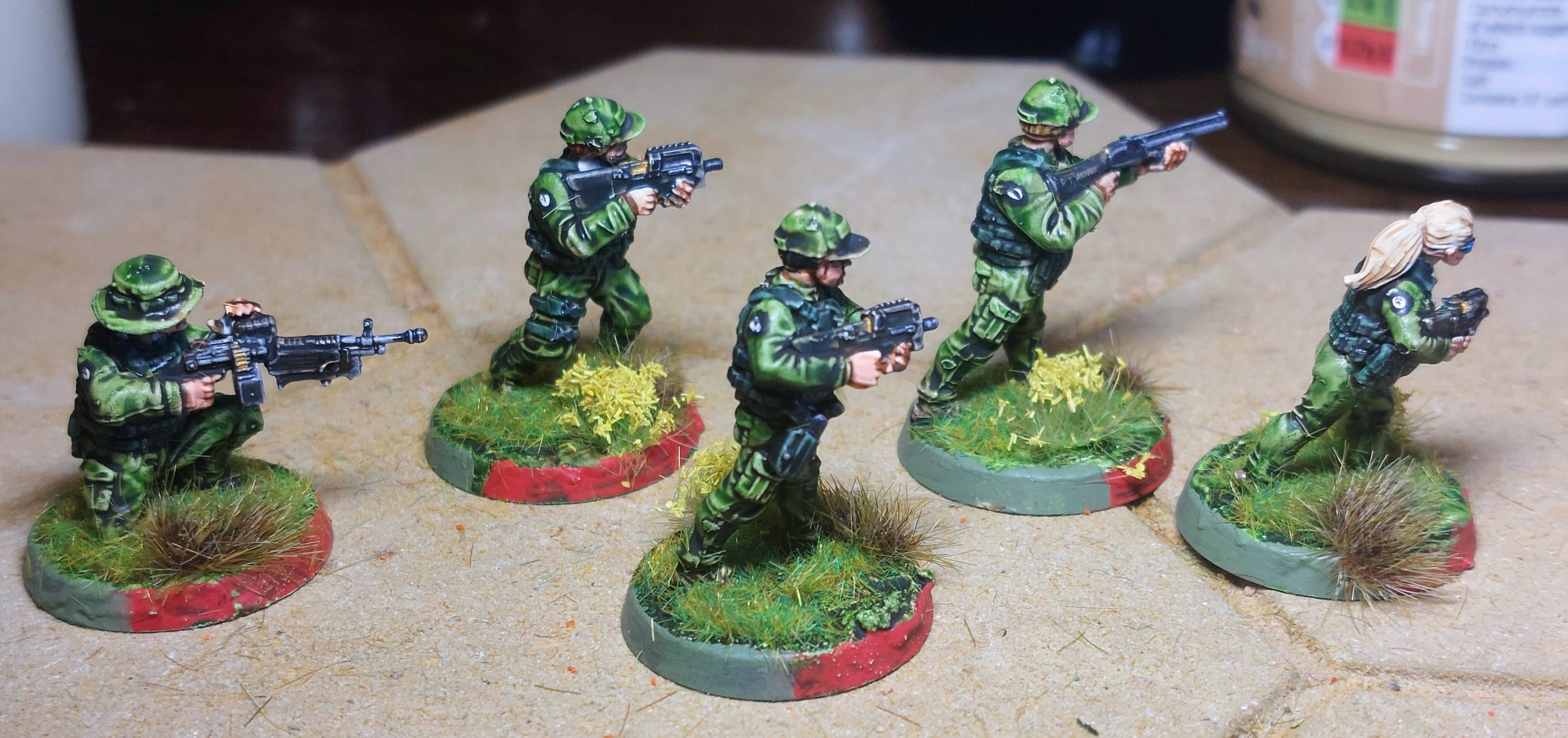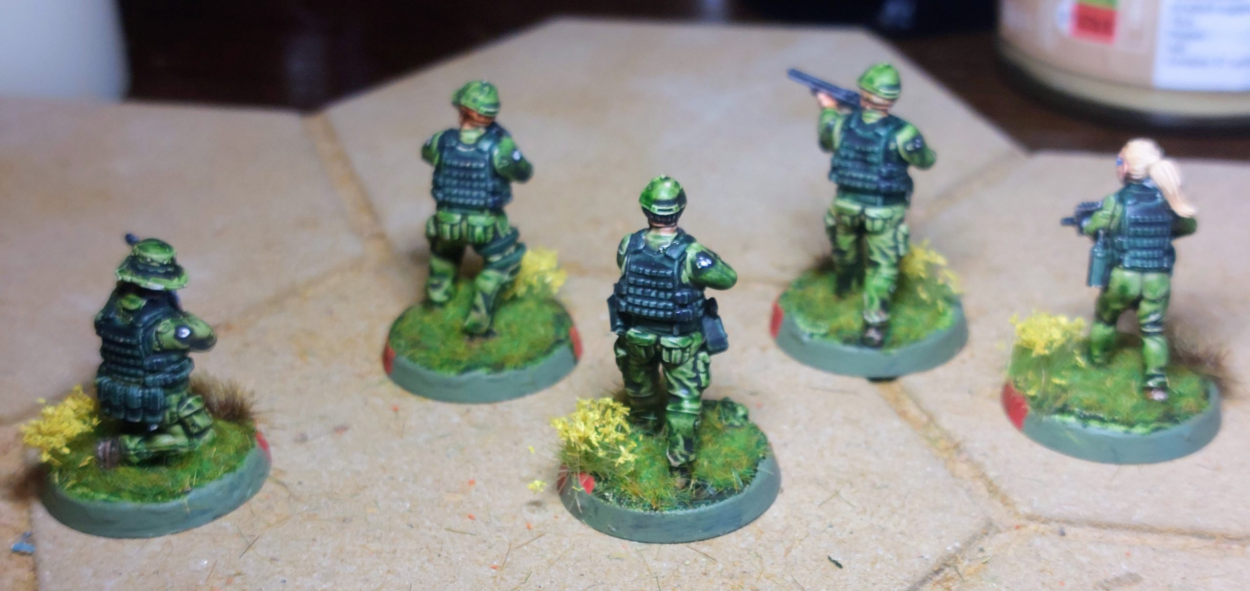 For plot device/ available actors etc , team personnel changed , so I added a 5th Female figure ( nice add in WA Agents box set , allowing for the addition of the female Lt Jennifer Hailey .