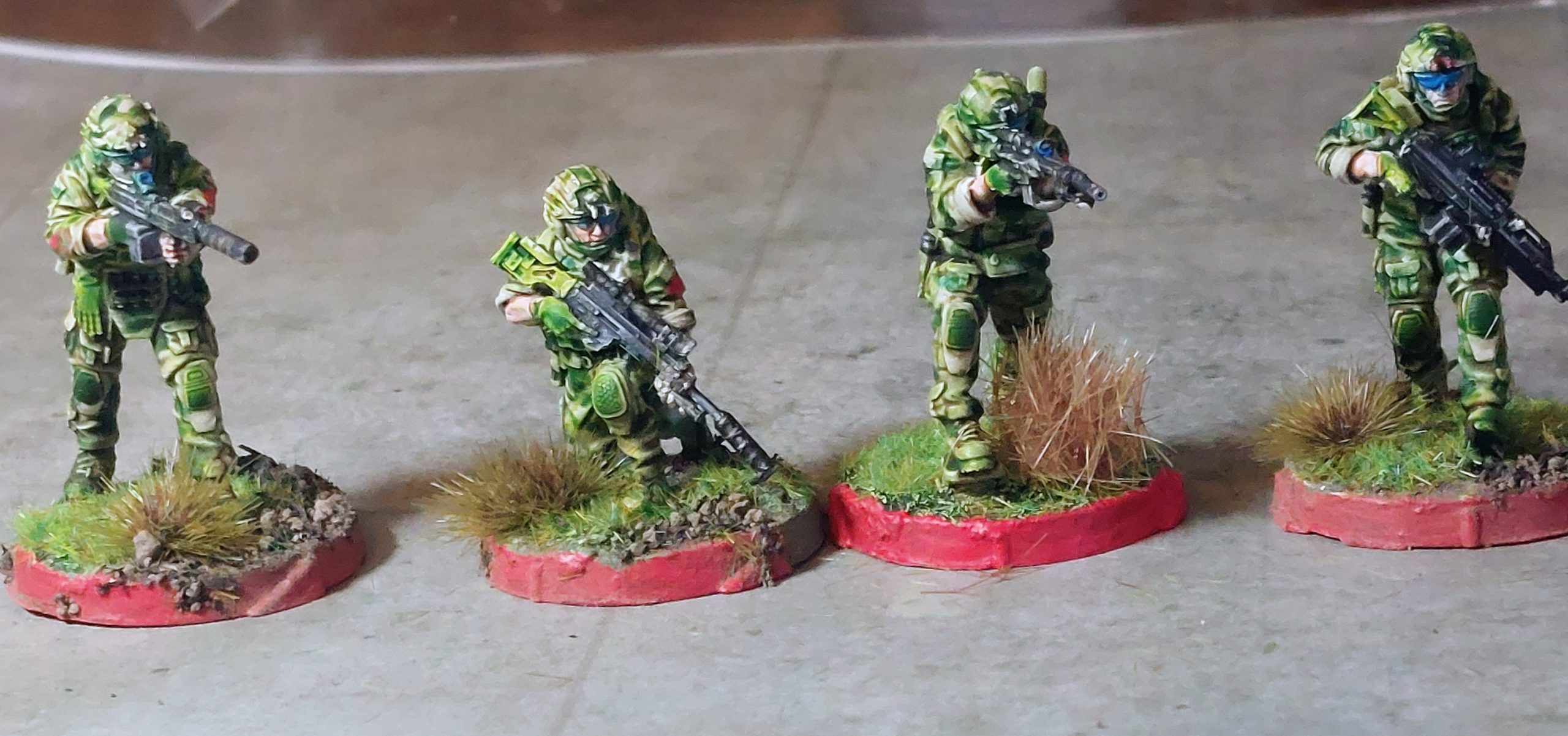 And I thought, these look like they are carrying everything including kitchen sink , and to me looked like a modern take on your Dungeon exploring troop, particularly the guy with the Auto Shotgun . I did try a vary the cammo patterns amongst them, but not sure anyone will notice.