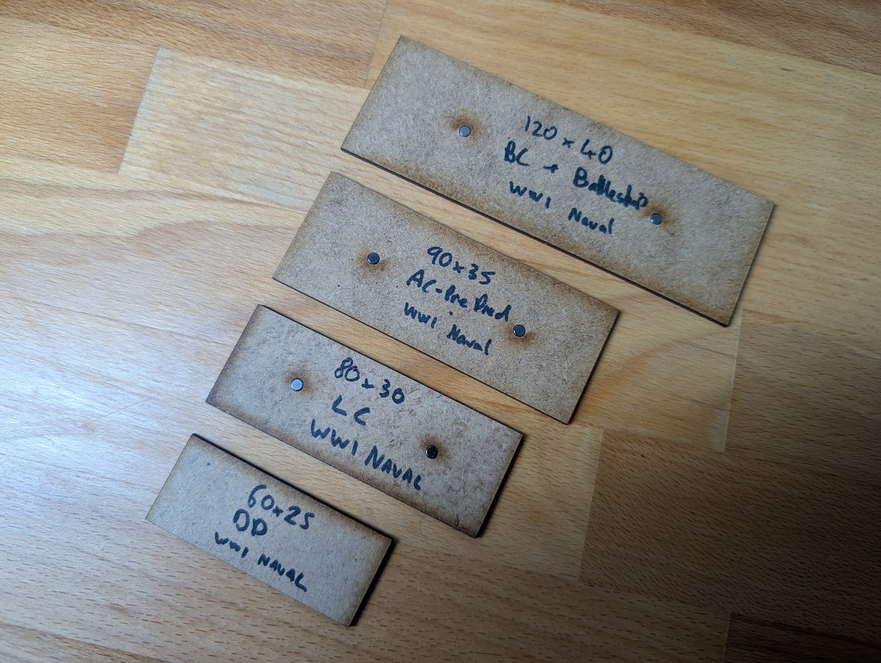 I’ve decided to go for the following base sizes based off those used by Yarkshire Gamer for his and Leeds Wargames Clubs WWI naval wargame, which one day will hopefully get published.