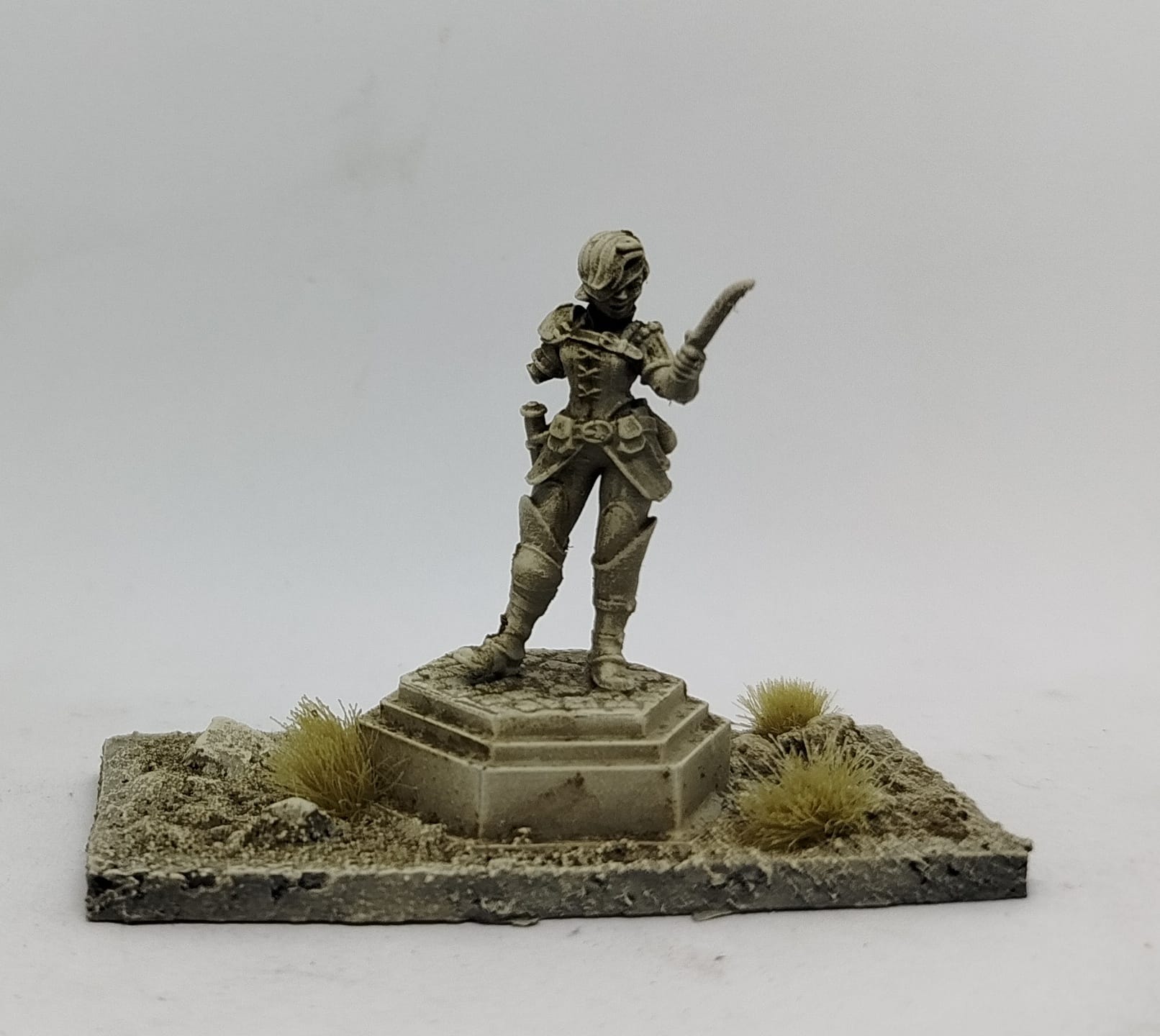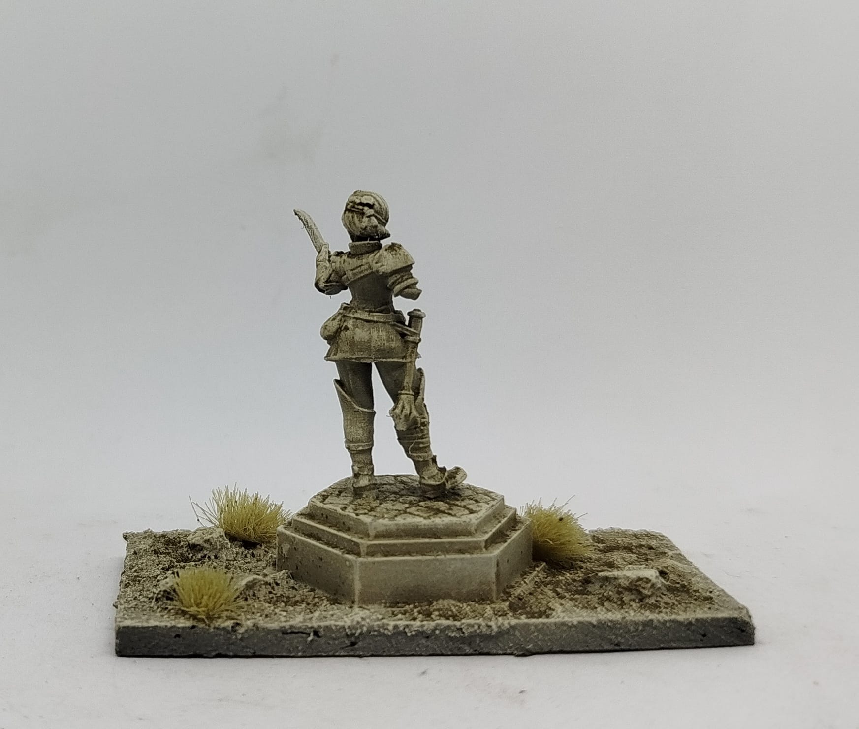 Statue, front and back. A failed 3d print on an odd base I had lying around.