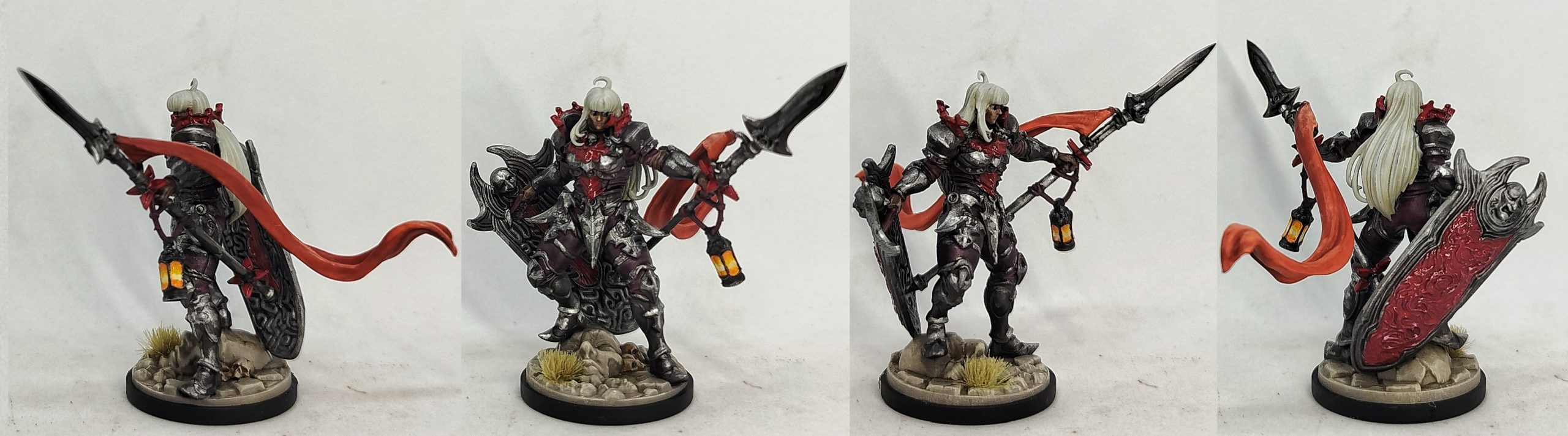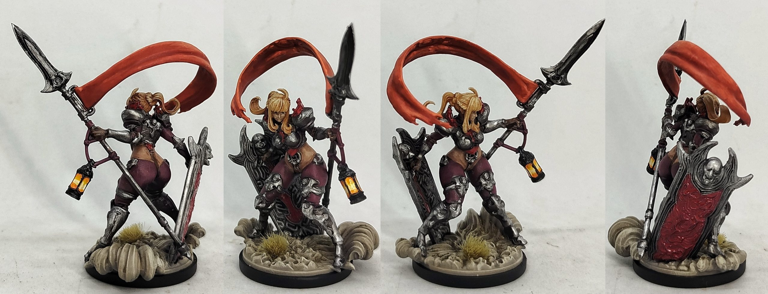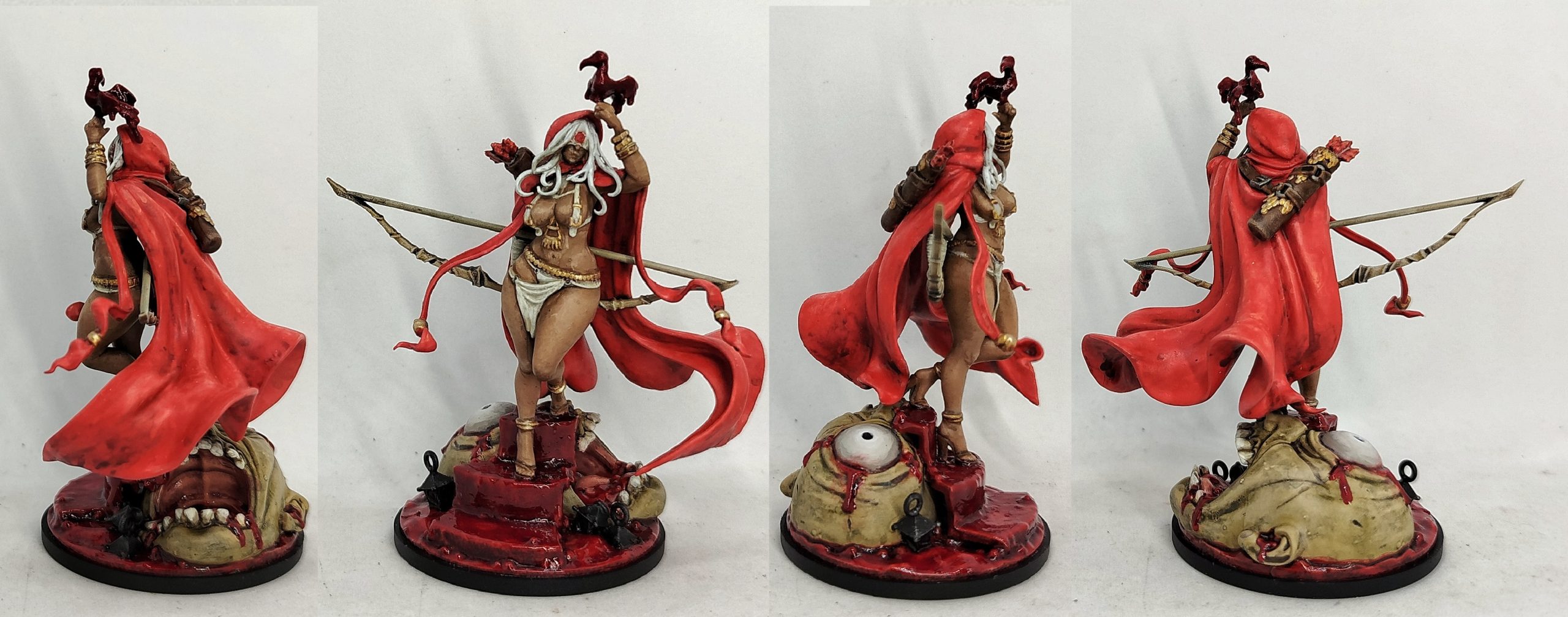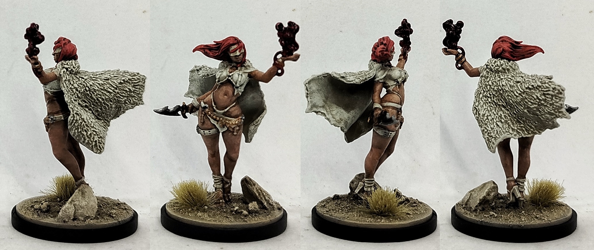 The Red Witches (pics 3-5 above) are currently on my painting desk and should be finished this weekend. As far as I can tell, the Red Witches are the police force of the White Speaker Cult, and so share a lot of their paint scheme. They all get a shiny new red cloak though, which is the basis of the inventively named Black and Red armour set, which lets people teleport swap locations.