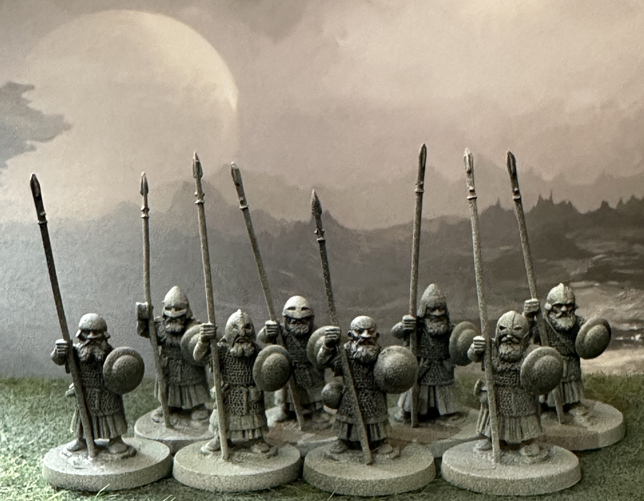 The mists clear and the moolight penetrates the pitch black night uncloaking rank upon rank of silent warriors, motionless as the towering peaks above. They emanate a malign fury. In the fold of the valley below the faint lights of the dwidling fires of the miners' camp can be seen between the dark mounds of fresh spoil heaps. None will survive this night and the sacred roots of the mountain shall be restored. After, the Dvergr will seek redress and ensure all remember why their sacred stones are never to be disturbed.