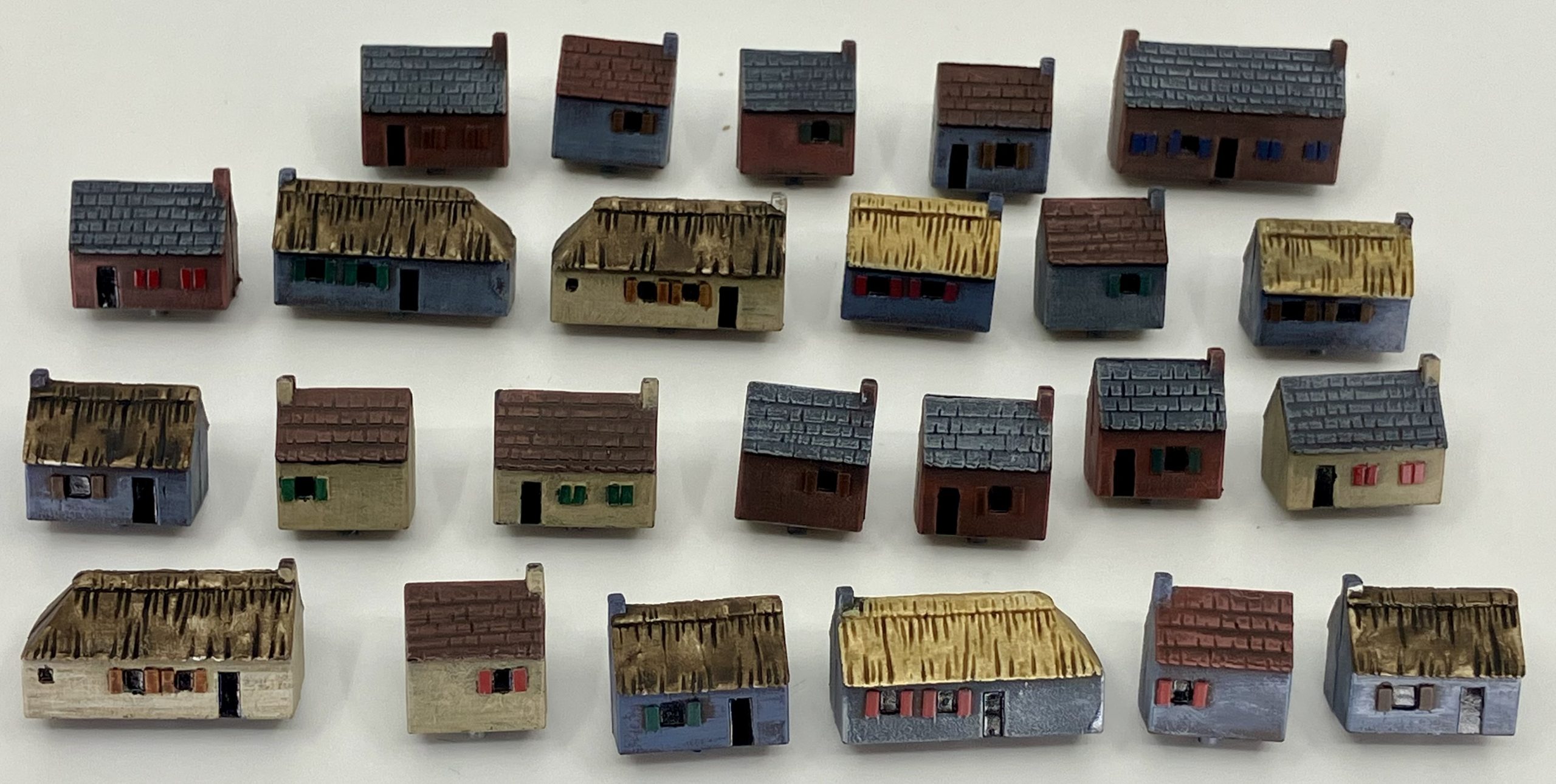 A few were done with desert yellow and khaki to give variance and represent some wattle&daub / render without starting to add timber lines.