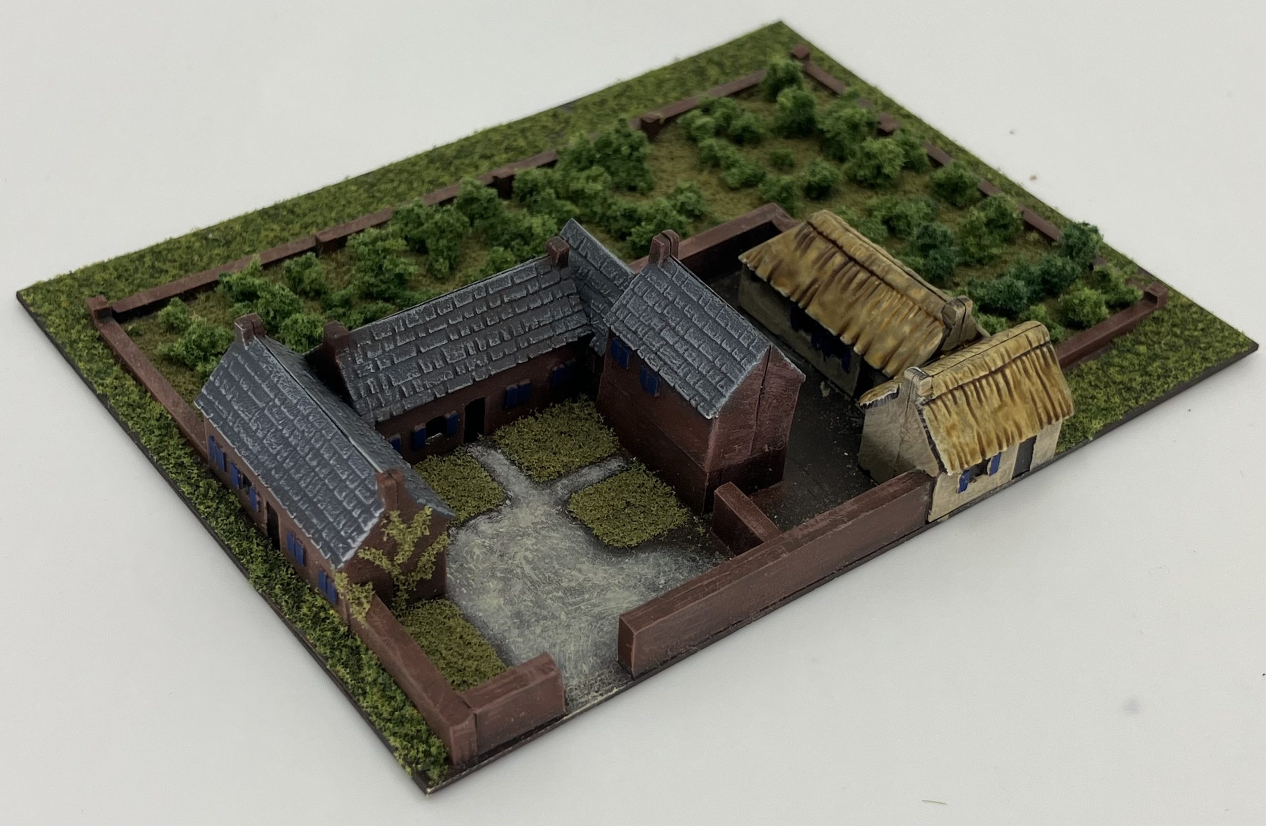 Chateau D’Hougoumont and the farm of La Haye Sainte got a little more attention and have been made on their own bases, removable from the game board.