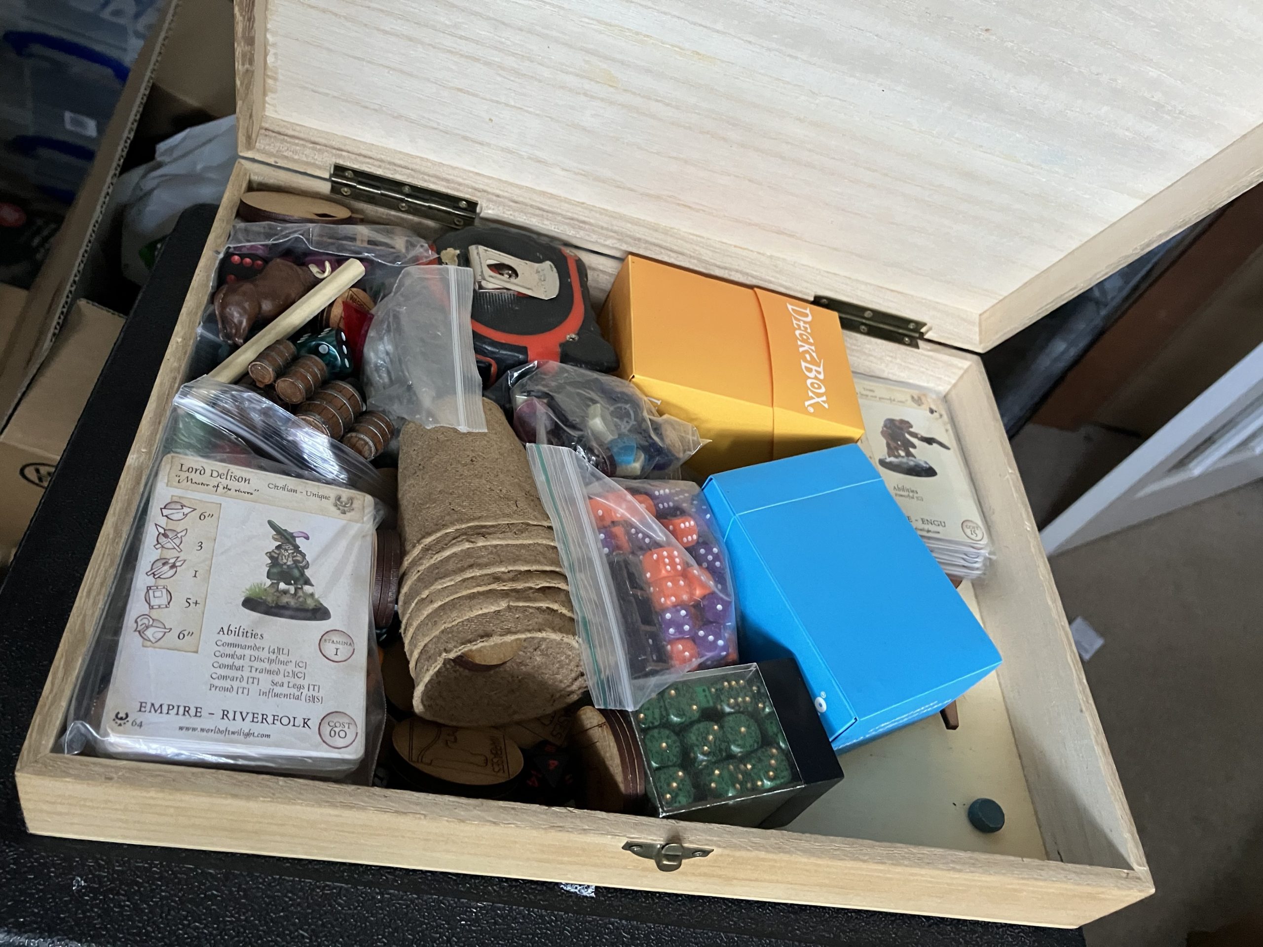 first thing I made was a box for all my general games stuff which is still used for all dice, counters and tapes any time I go gaming….