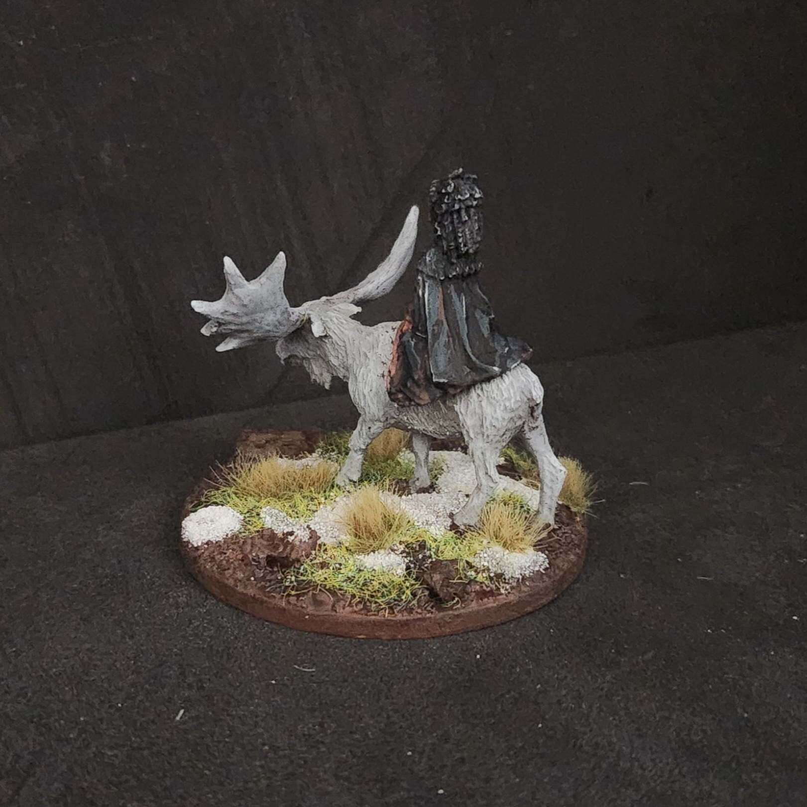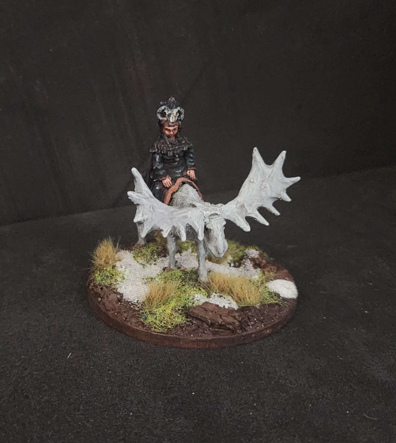 As I put up before this was just too cool a model to overlook. I have seen so few moose figures and this was great in combo with the witch. The only drawback is that she is so very plain and my lack of skill in painting black might not do it justice.