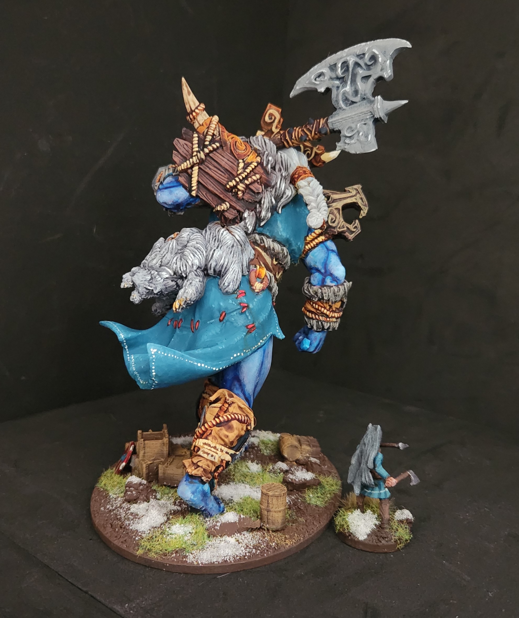 I have finished up the frost giant for this army and she is not the same as you find in the series My Hero Academia. I’m glad to be done and so so with the paint job. Done is better than perfect and for a playing army this does the job. I’m late putting this up as the hair braids broke a couple of times and the crown required repair after dropping. Resin is good for detail but crap for impact resistance.