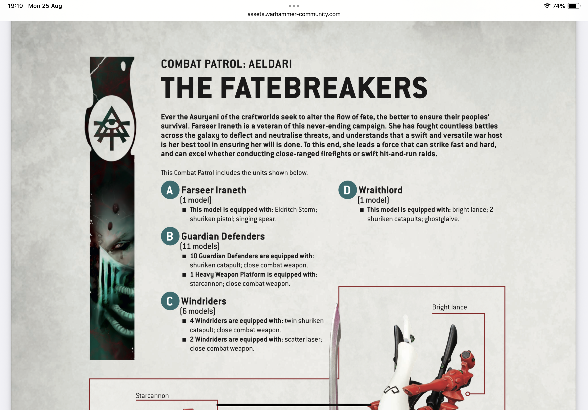 Some of my original Eldar. All characters, I wasn’t good at motivating myself to paint armies even then!!Cool – so Eldar it is. There are two Eldar Combat Patrols with rules on the GW downloads page. The newer one is a lot of Aspect Warriors. Cool, but gribbly! The older one looks much more doable for a simple paint scheme.