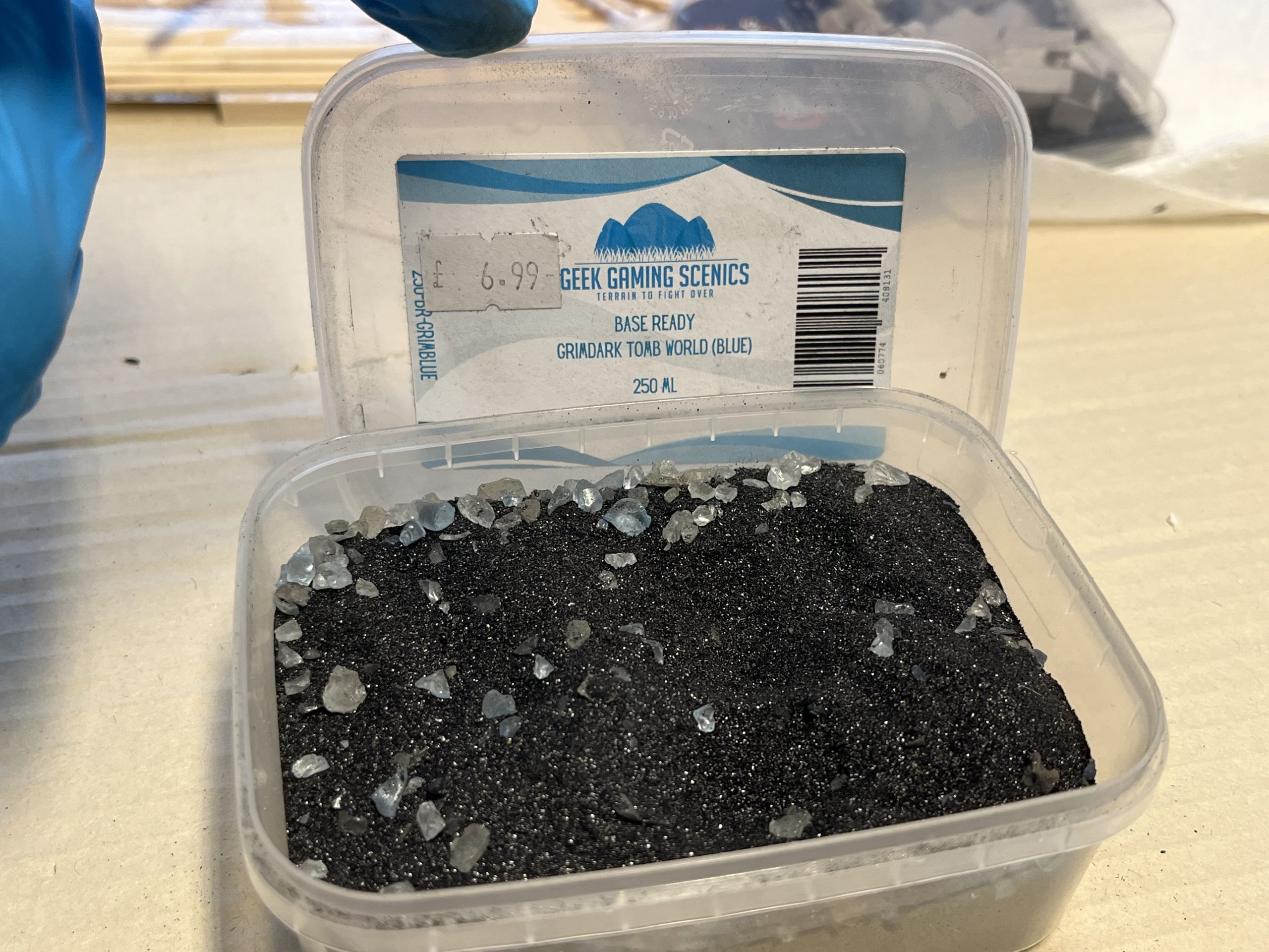 In the spirit of speed and simplicity I opted for a glue-and-done basing mix from Geek Gaming Scenics. Tomb World Blue in this case.