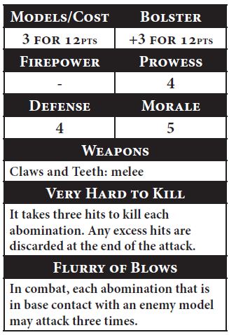 I went a bit extravagant for the abominations. If I wanted to do it on the cheap I could have used my Kings of War trolls and shamblers. But no, I finally had an excuse to grab some conquest miniatures. I picked up a box of trolls and a box of Sicarii (purely on the basis that they look cool as f**k).