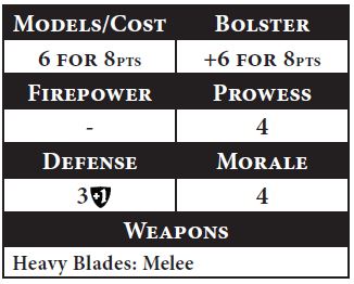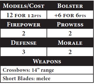 Skirmishers – A broad range of elite and specialised forces -this are still fairly generic in terms of troop types- nothing will feel too exotic here.