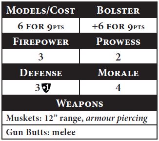 Line Infantry – The bulk of your army. Larger units of melee, musket and crossbow men, these units can include a cultist which give various abilities /bonuses to your otherwise vanilla troops.