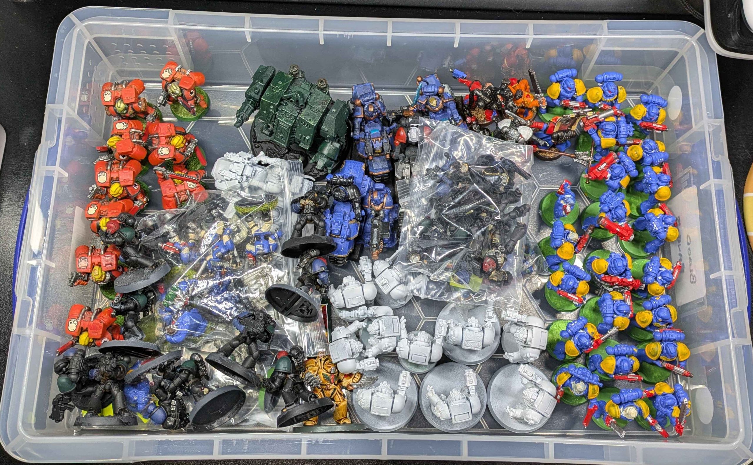 Now the 2nd hand market for old space marines isn’t as mad as some oldhammer but there are still plenty of people taking the piss. There are a lot of options but you really have to watch for a while to figure out what the kind of “normal” price vs condition is and then make decisions from there. I have limited budget and so for me there was a lot of sitting on eBay for hours. This box contains over £150 worth of extra models (though not all picked up recently, this is not the first time I’ve considered repainting these minis) and as much as I would love to add in more stuff, I can’t justify it on a project like this. This then shall be my Blood Ravens, behold their glory!