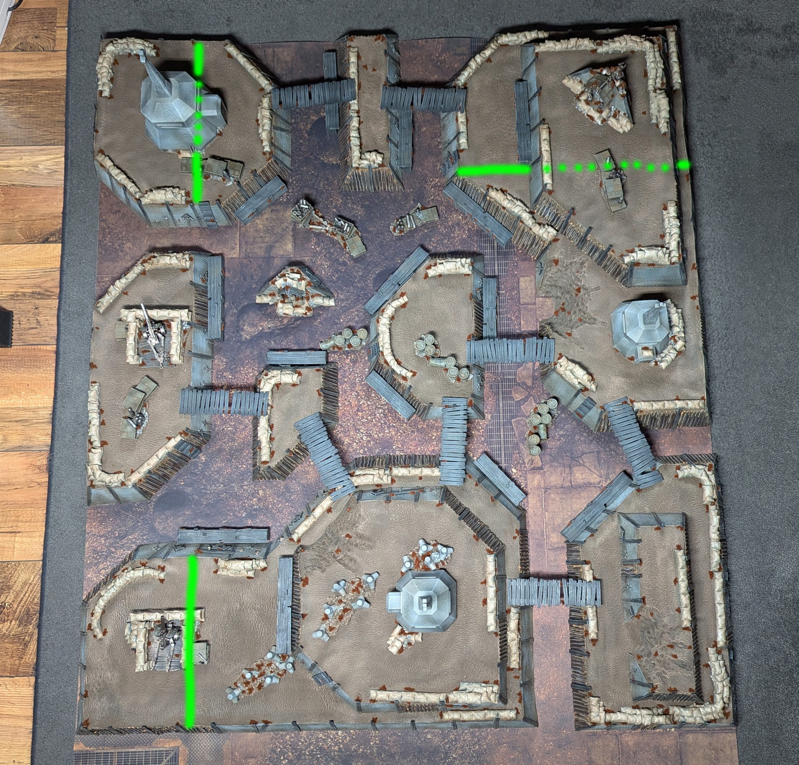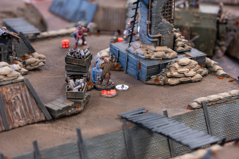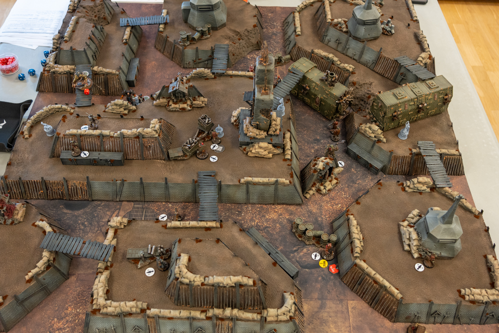 Trenches, low barriers, bunkers and sandbags – all great, but aside of trenchline levels there’s barely any overall verticality. In my opinion a proper skirmish gaming board should have at least some elevated platforms – some difficult to access, whereas a few should be easily accessible by snipers/long range shooters.