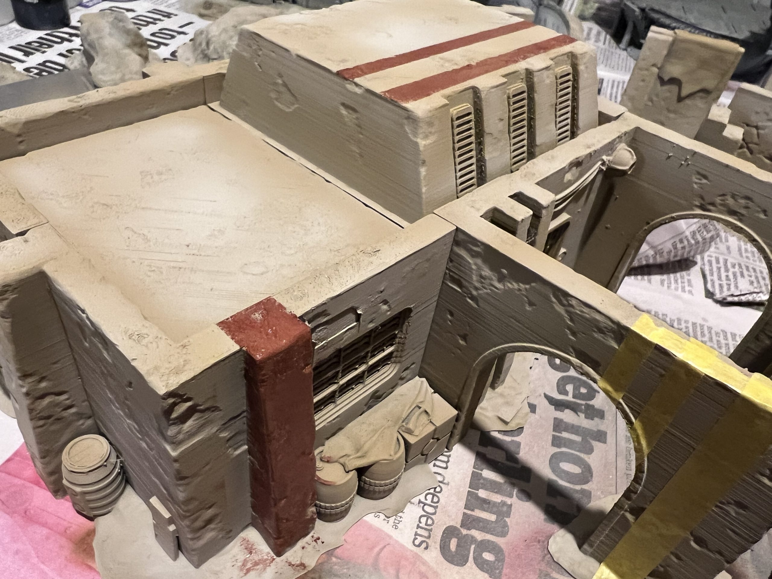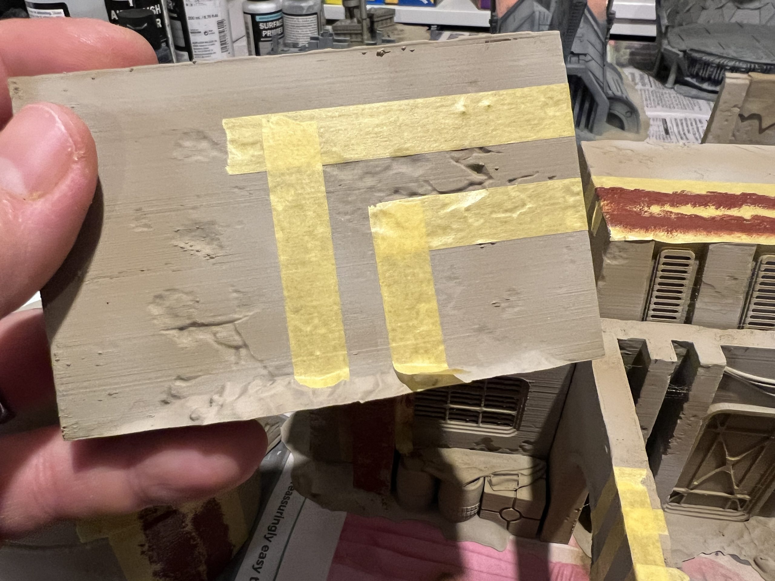 started with the rattle can primer I wanted to essentially highlight the buildings but also add that element of texture and surface variation so it did not all look just really flat