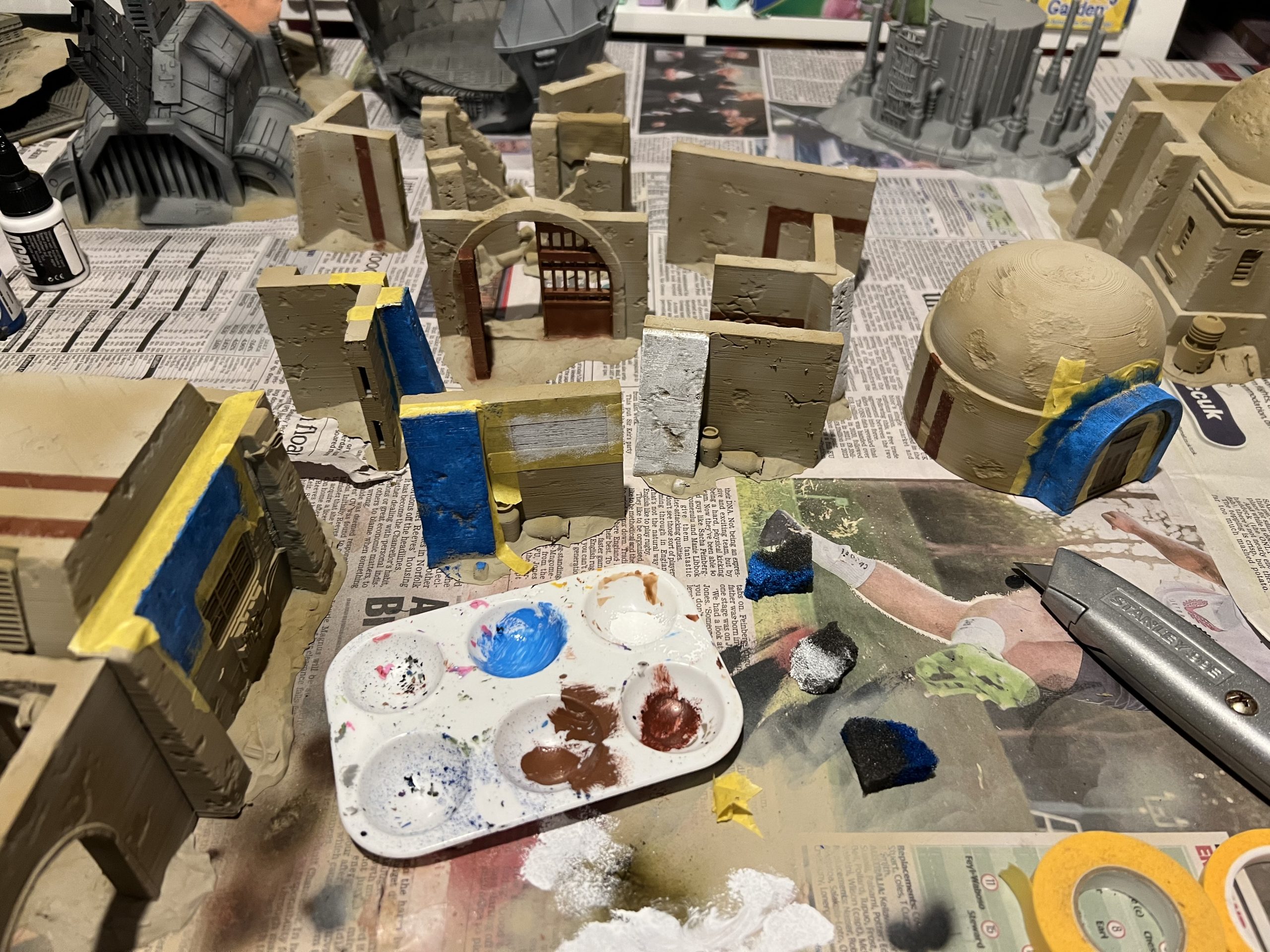 I want to break up the “everything is sand” appearance by adding in some colouring here and there on buildings and walls