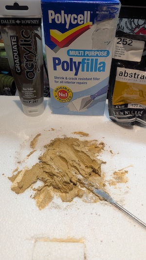 I made a rail out of fancy bamboo cocktail sticks and chain (you don’t want to fall off a height when you’re visiting your ancestors) and added a texture slurry of polyfilla, pva glue and craft paint.