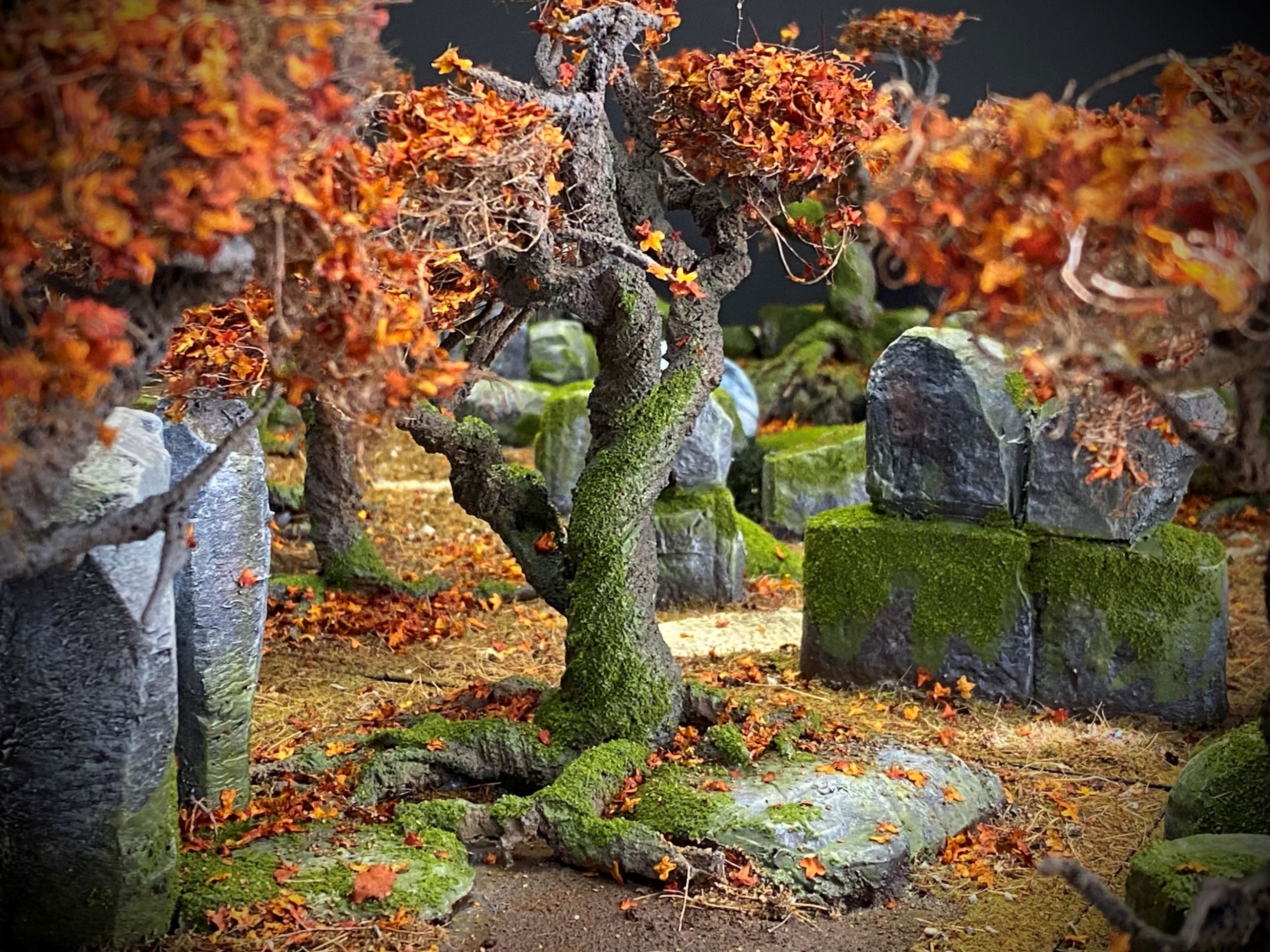 After that, it was a matter of spraying Water / Mod Podge over the horsehair and sprinkling even more leaf scatter over them.
