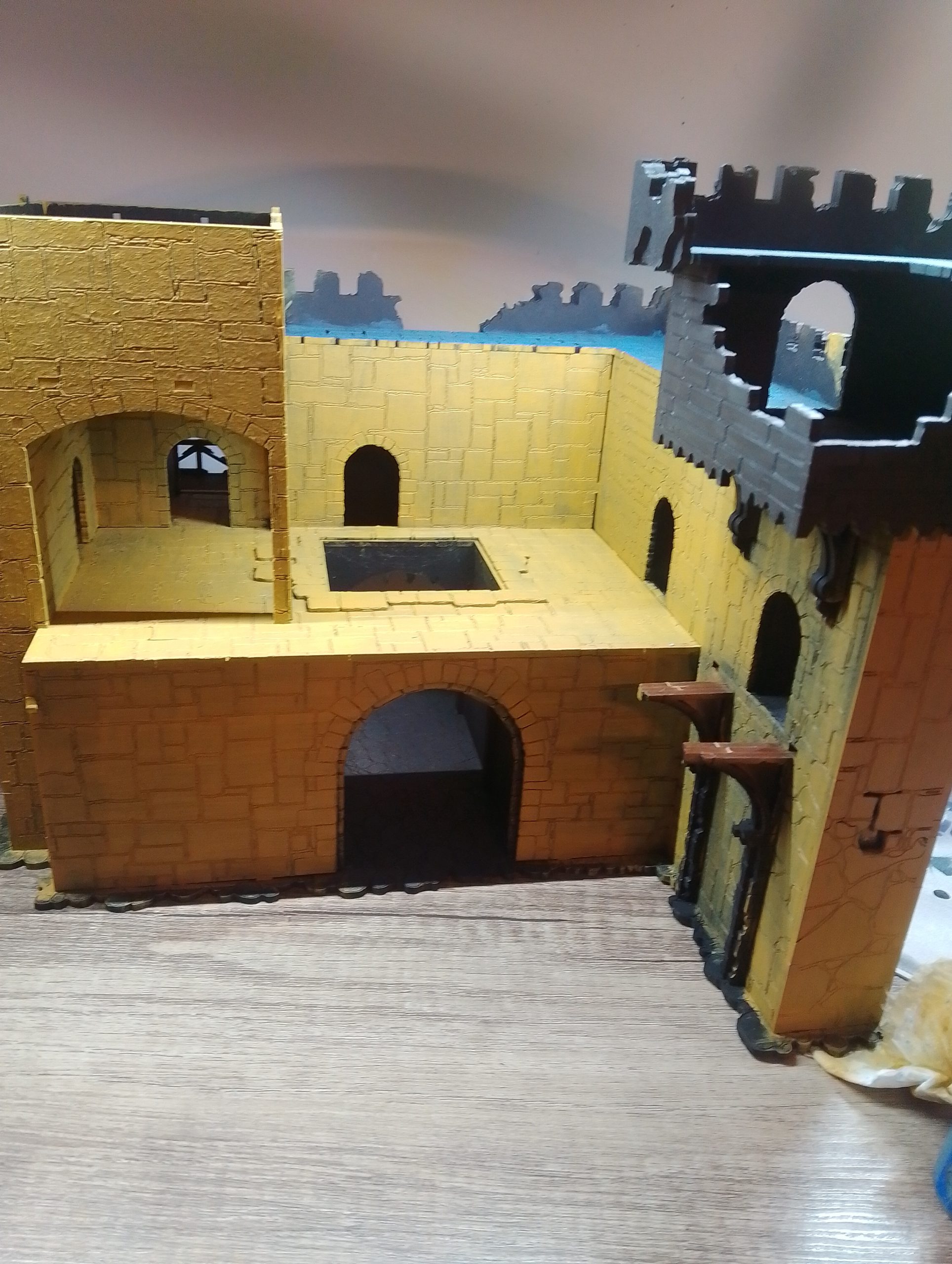 Ive used dark blue for the interior walls and a brown grey for the bottom stonework also.