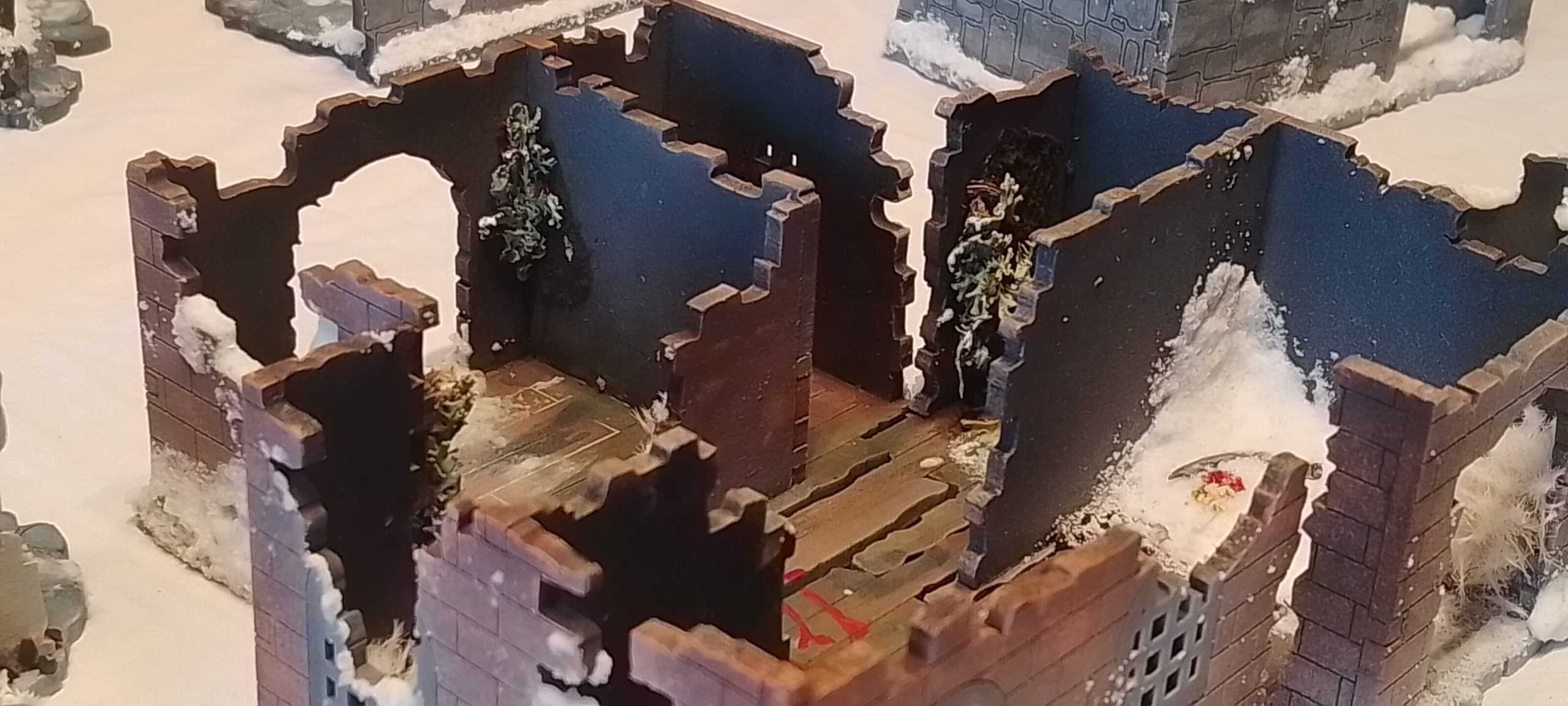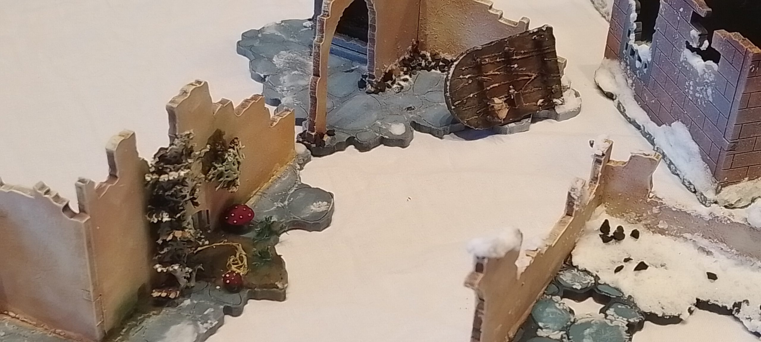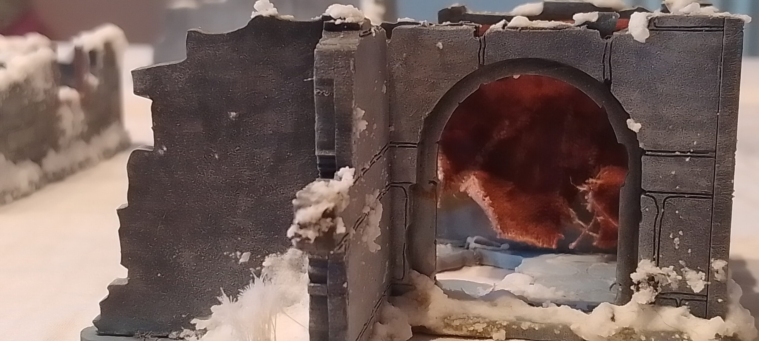 After I just added some snow on the primed mdf and made it quite flat deliberately so miniatures can walk and combat each other inside. I am sure it wouldn’t be so flat, but there is nothing more annoying than a wobbly positional combat.