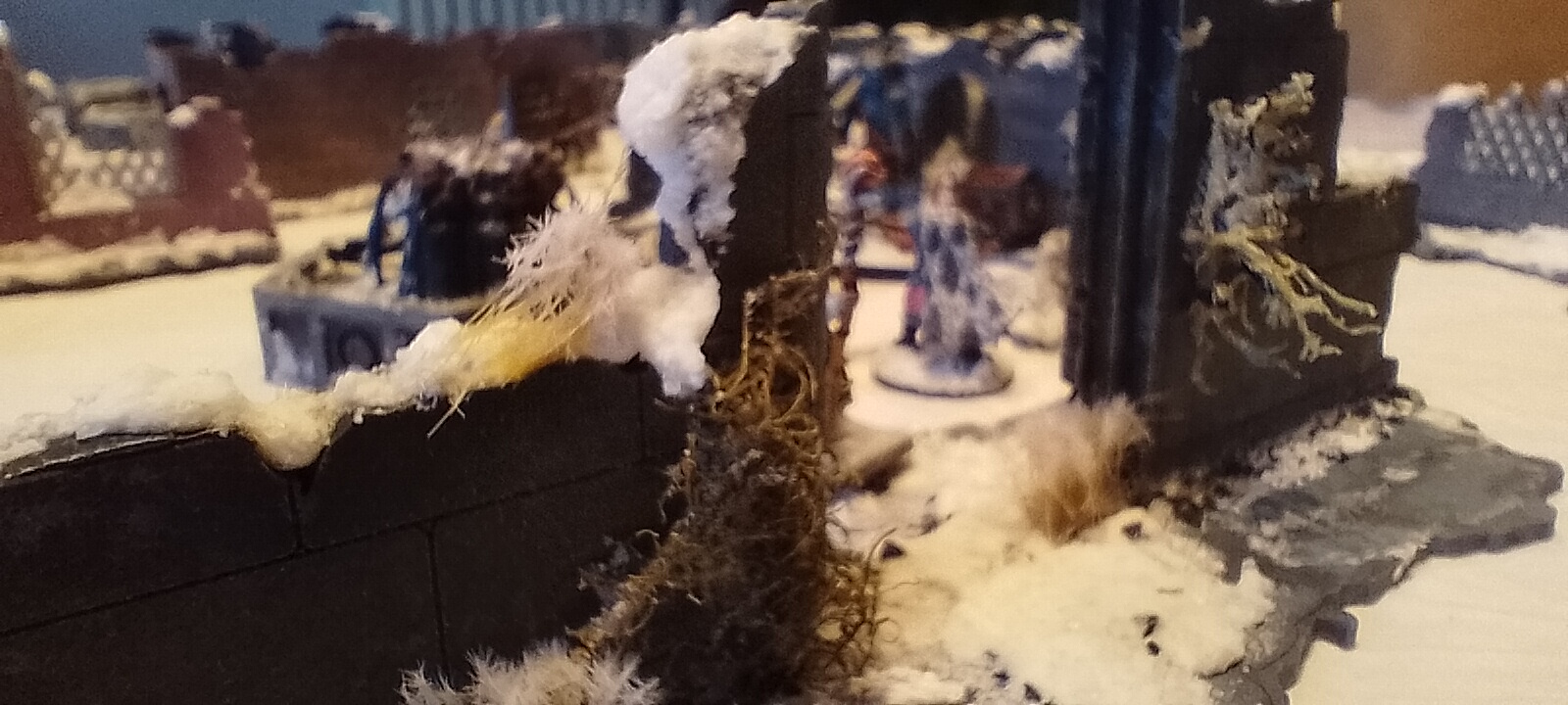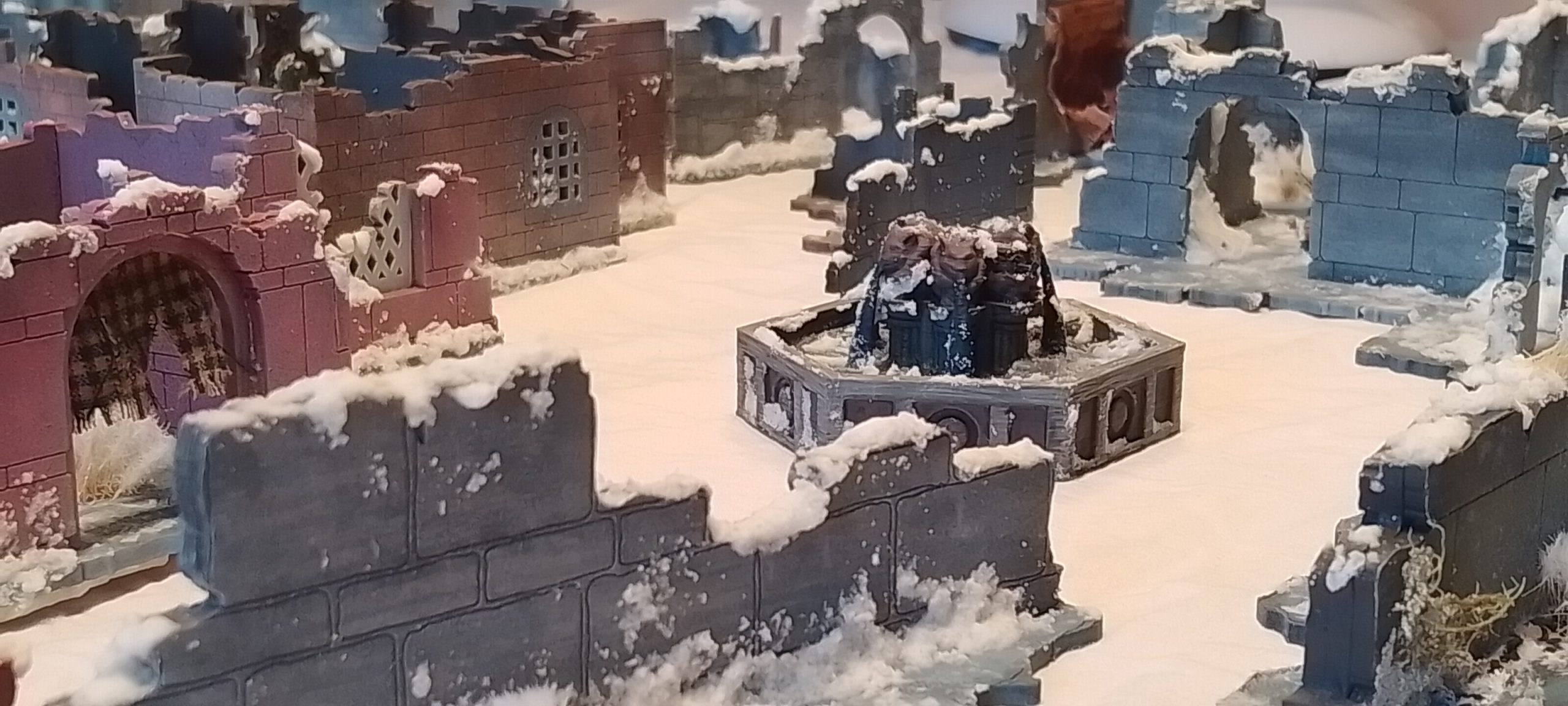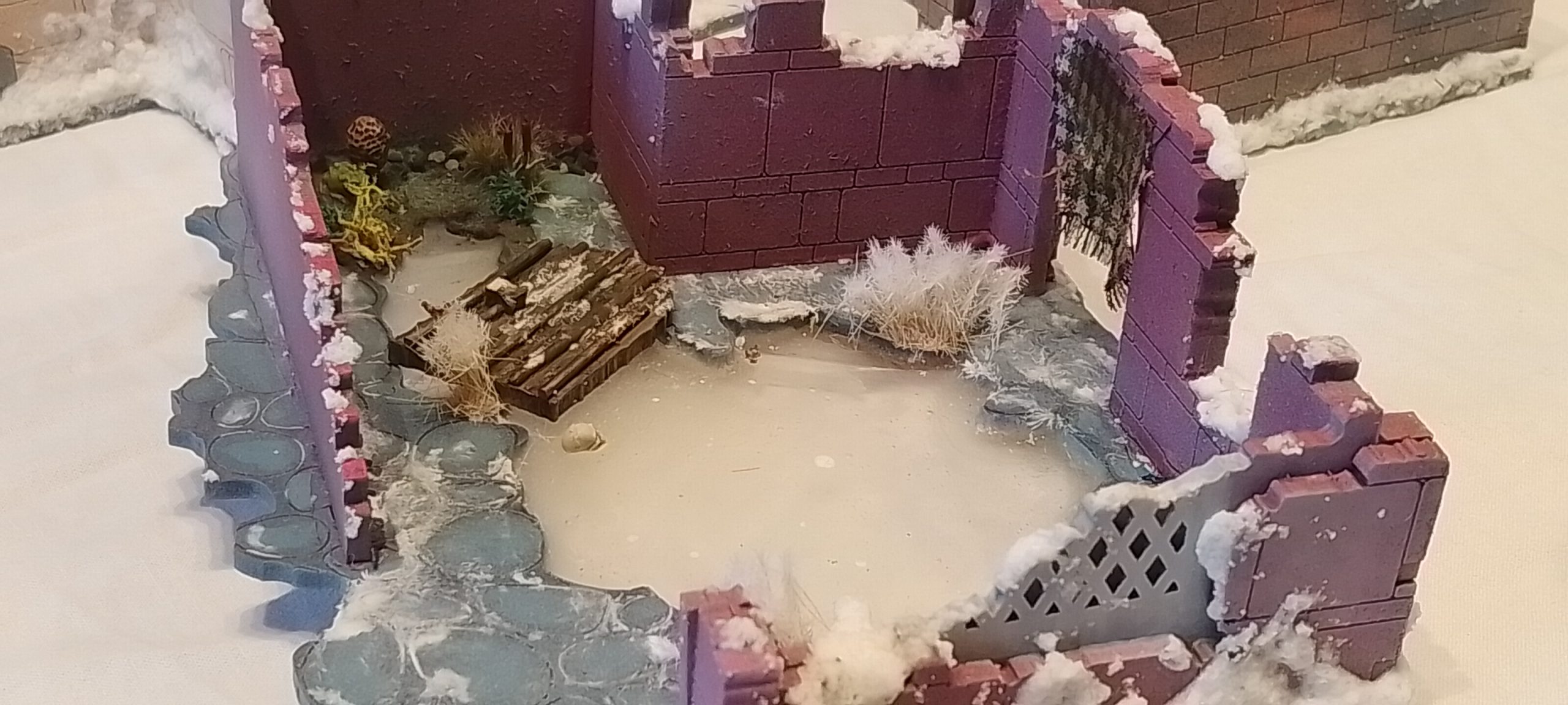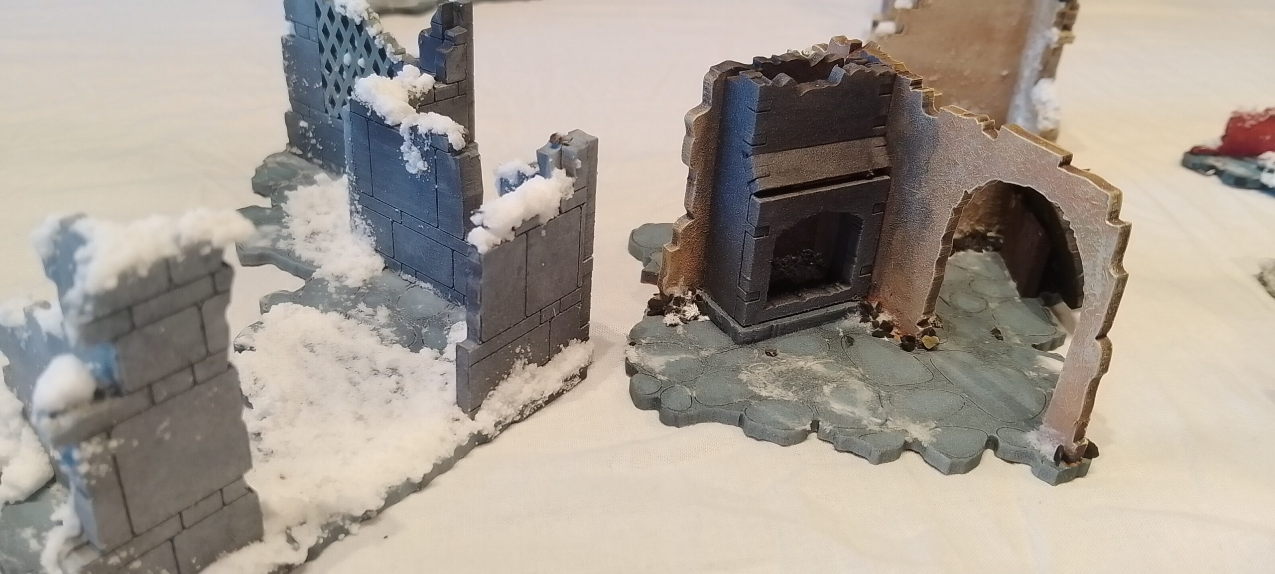 After I just added some snow on the primed mdf and made it quite flat deliberately so miniatures can walk and combat each other inside. I am sure it wouldn’t be so flat, but there is nothing more annoying than a wobbly positional combat.