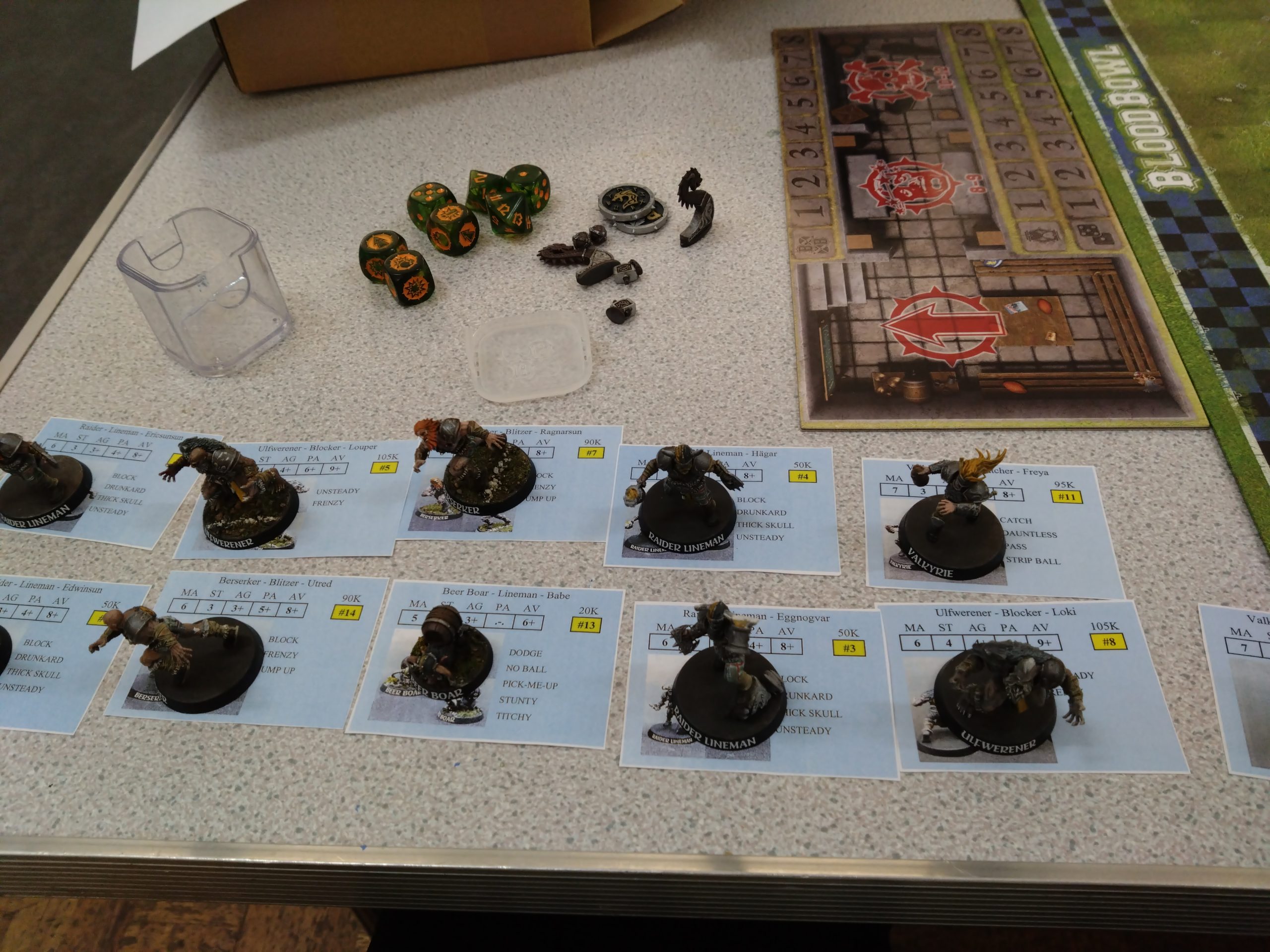 Sadly for the Elves they ran out of rerolls at a key moment, pushed their luck once too often and stumbled and fumbled the ball. After a counter attack from the Norse saw a mistake and dropped ball of their own there was a life line for the Elves. Sadly they ran out of rounds to play and a pass went wrong and the Norse came out narrow winners. Loved playing the game. Not just for the win, but the drama and the good company.Last minute fixture - WiP