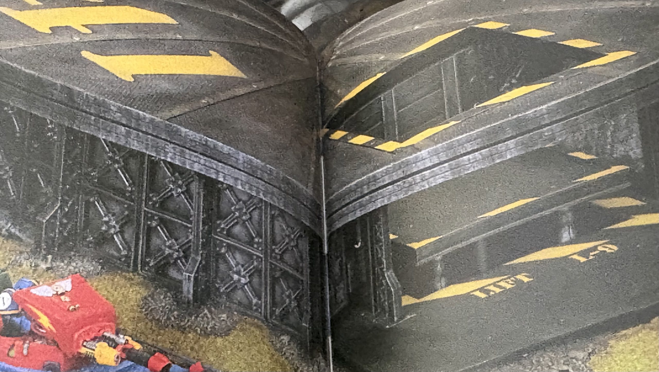Masked off lines, airbrushed in slightly different shades and borders, and rust for the grating areas.