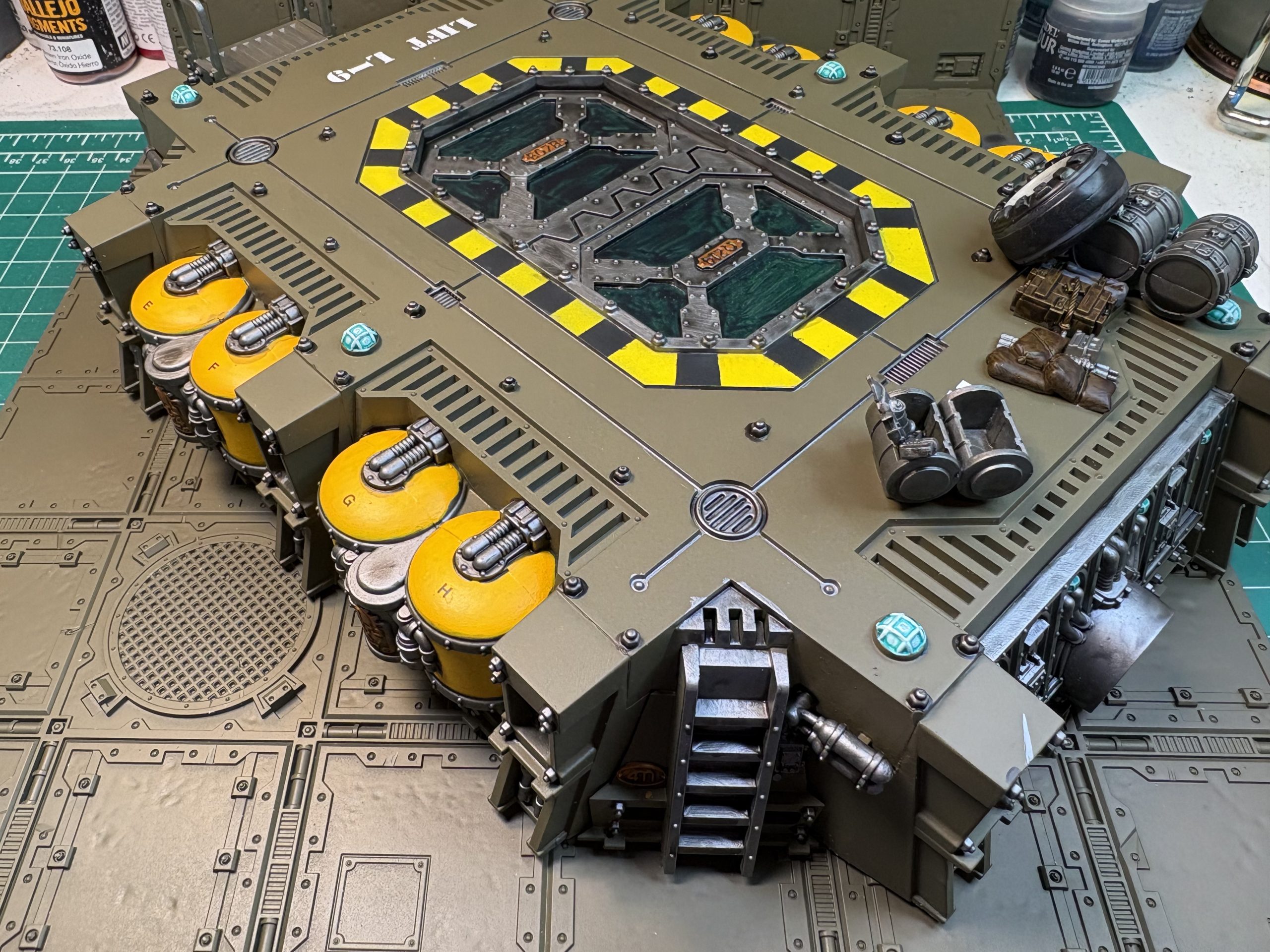 I used a lot of Nuln Oil shade to darken the silver, dry rub transfers to get the numbers etc on. Glued on the tools and random stuff on the end of the landing pad.