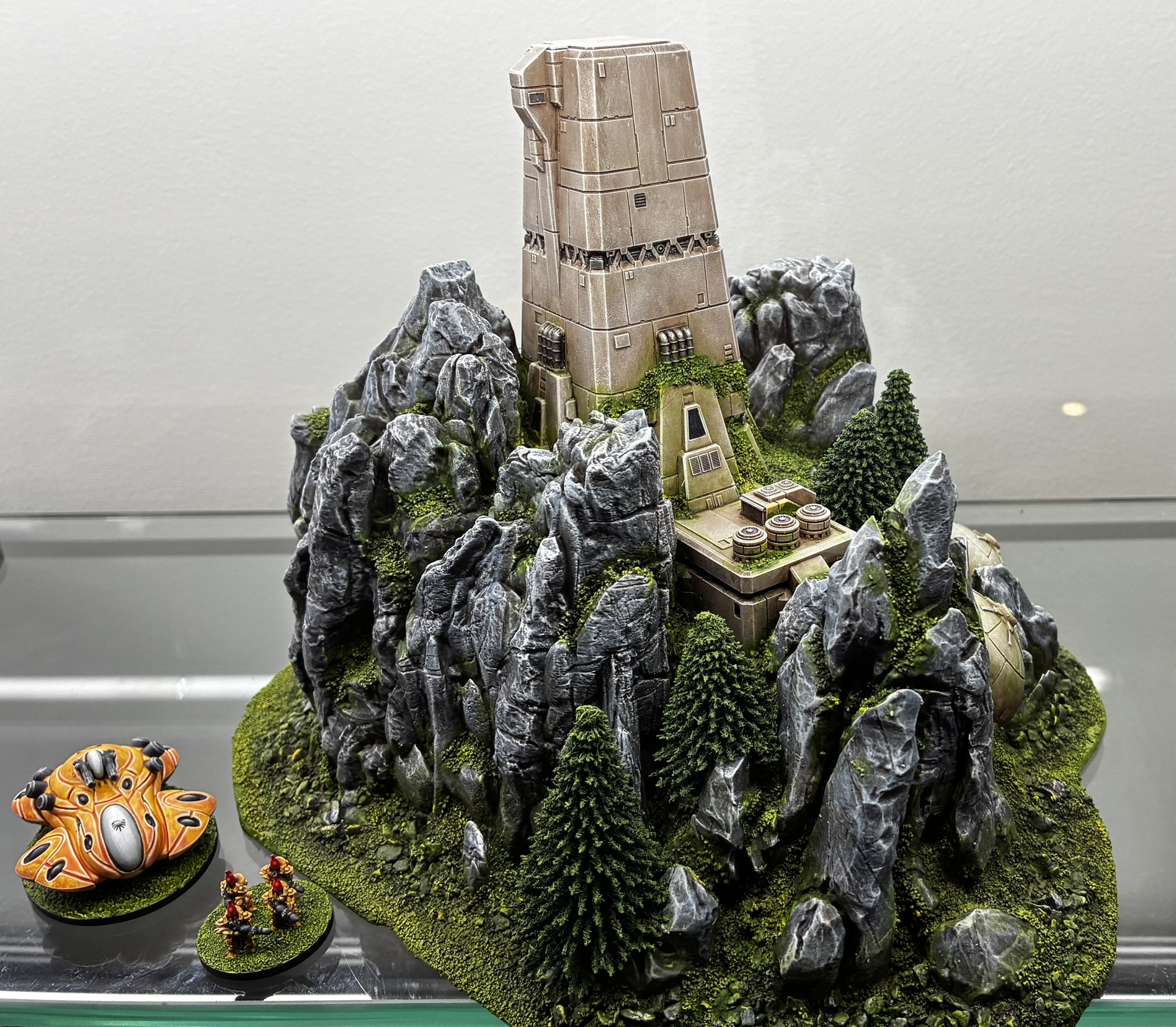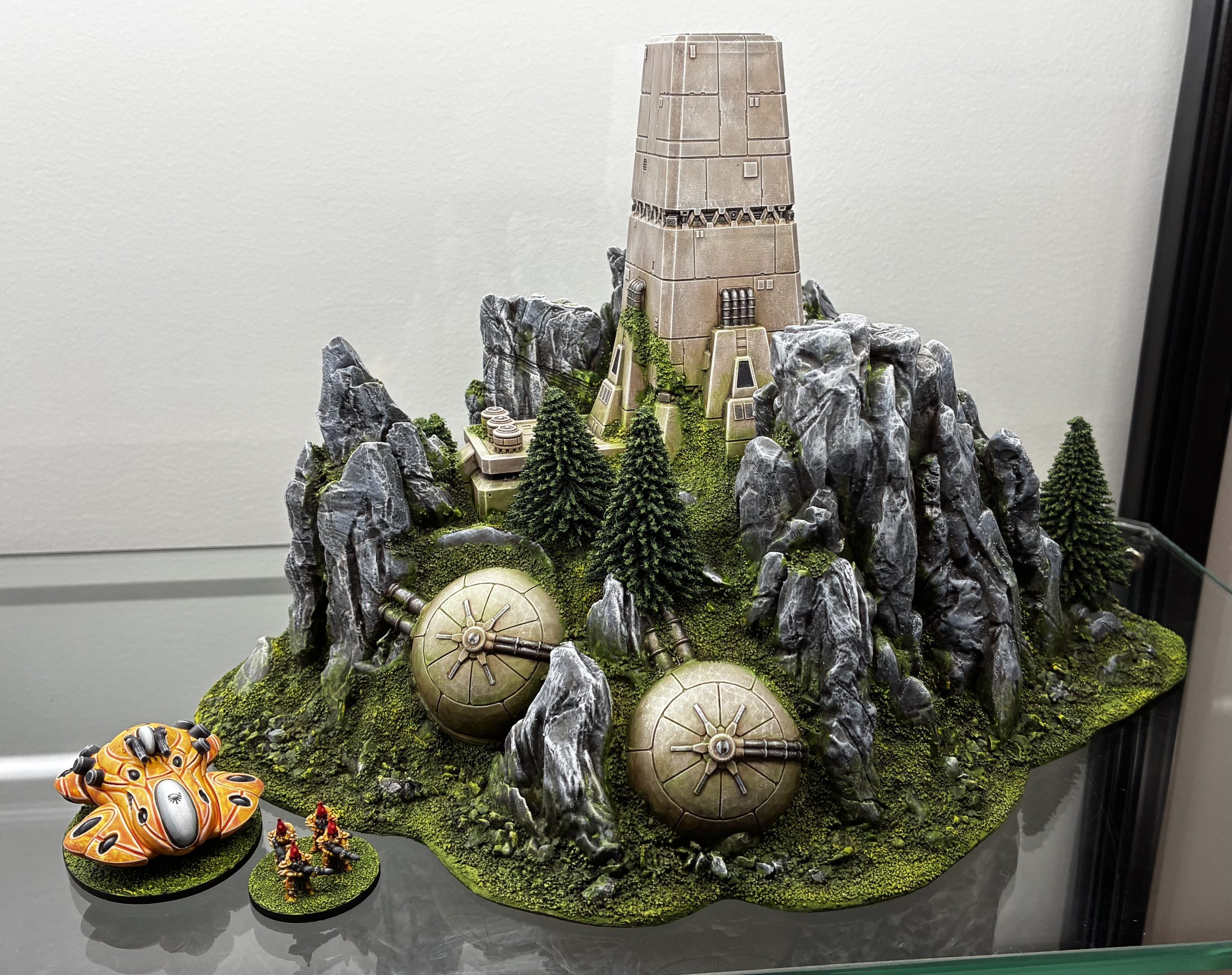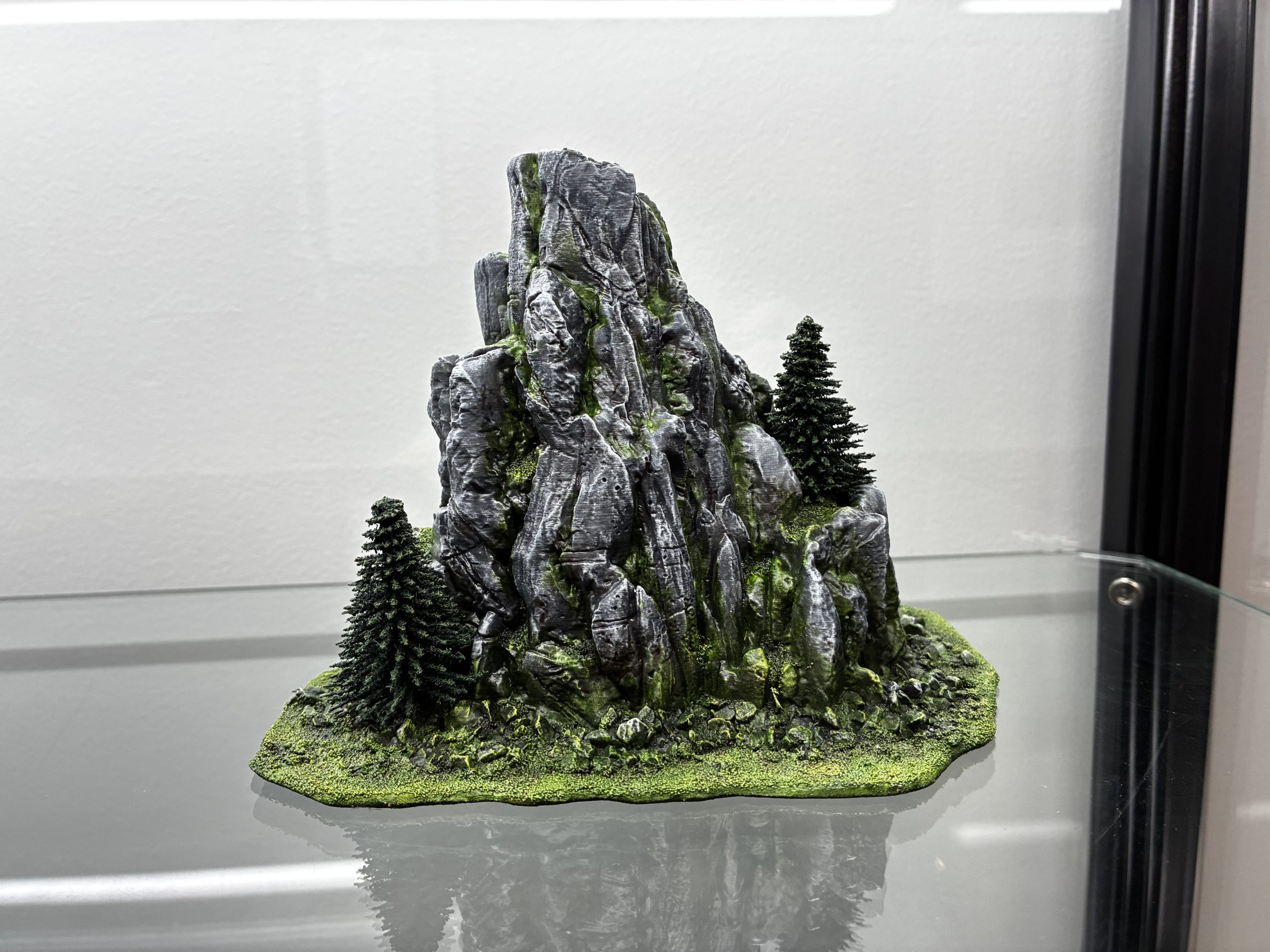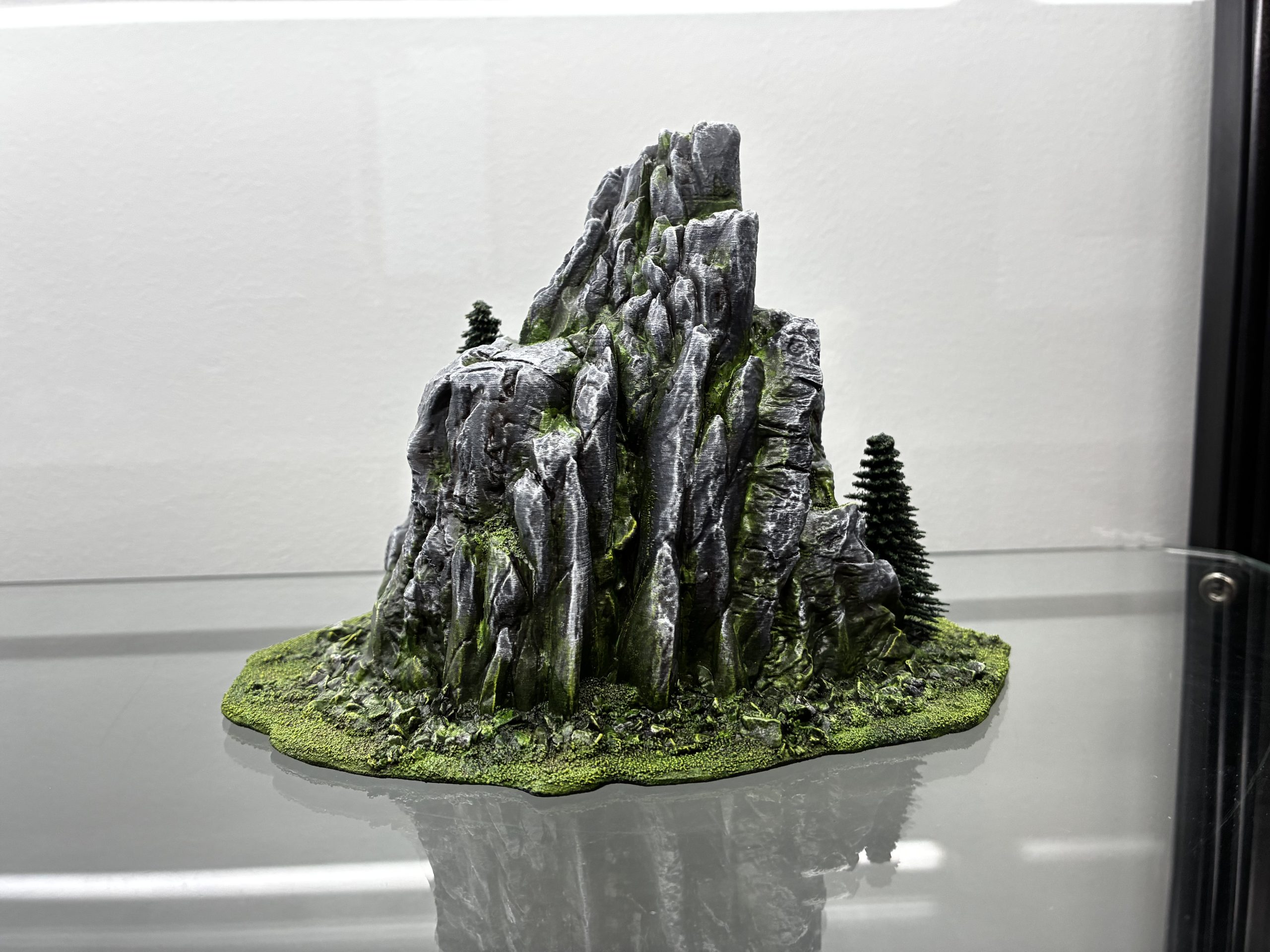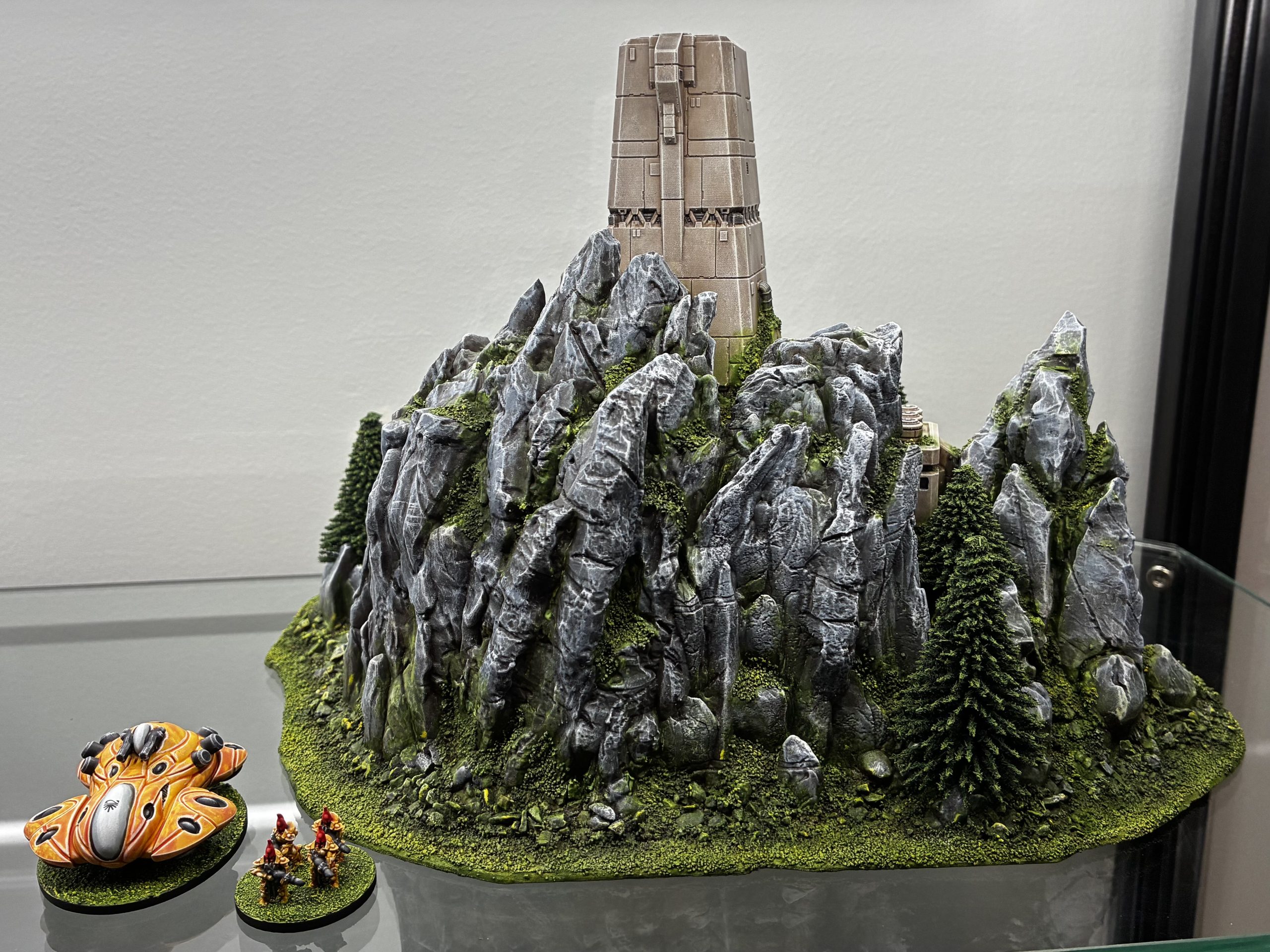 I wanted to make a center piece for the final element (at least for now) of my Epic Warpath table. I had a tongue in cheek idea that I nicknamed “project Barad-dûr” for hopefully obvious reasons. I wanted a center piece that really stood out on the table and drew attention. The tower was similar in concept to how I made all the other building pieces with the added challenge that it had to be sliced into 4 different sections to be 3D printed due to its size and shape – painting something of this size proved to be its own challenge but ultimately very happy with how it turned out.