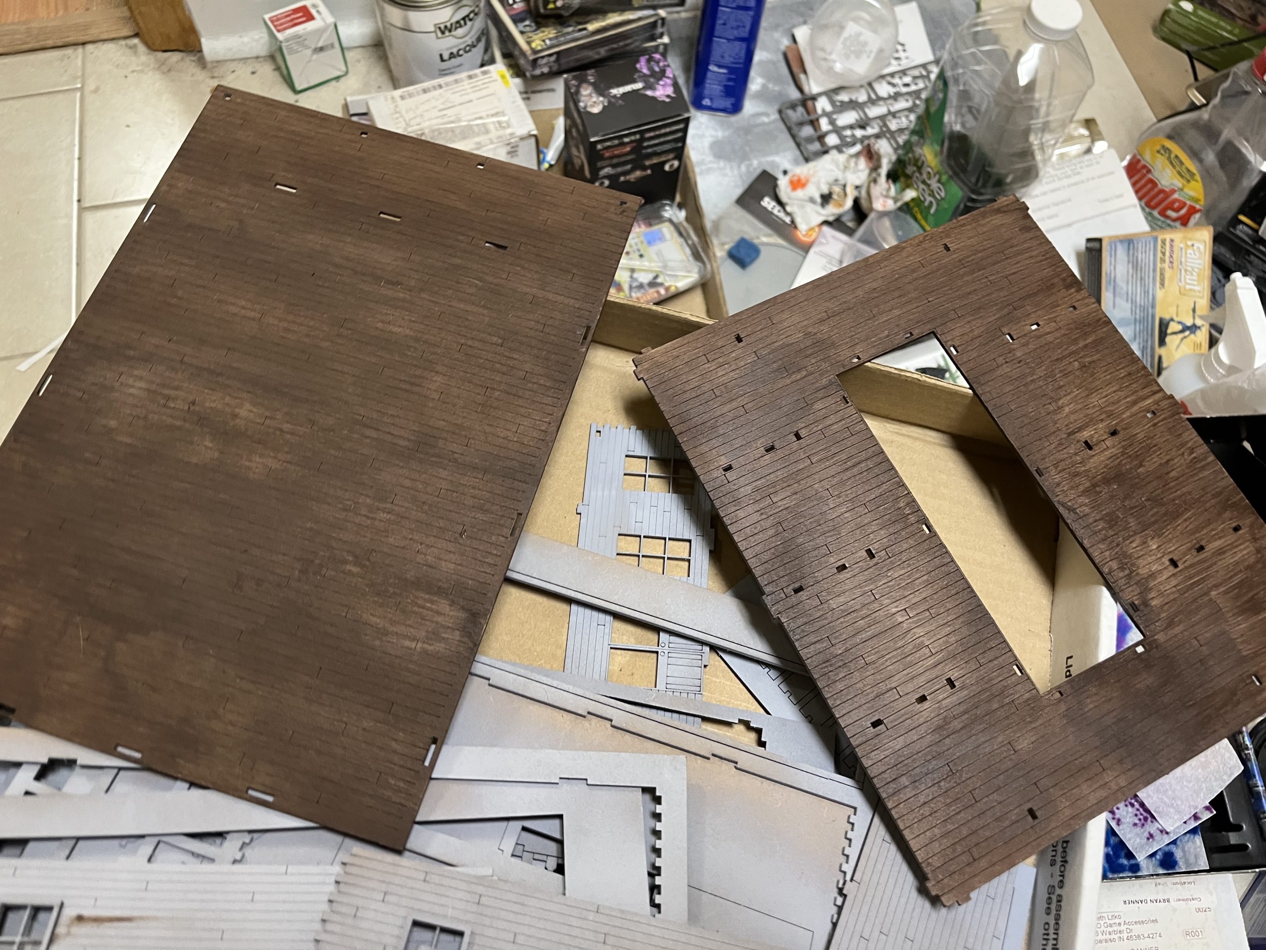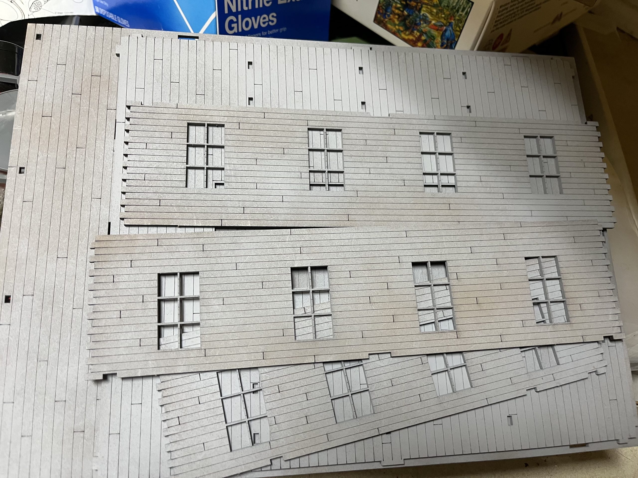 Buildings in the Old West frequently only had the front of the building painted with the sides and rear often left as raw wood. I’ll be replicating that here. As such I’ll glue the window frames into place on the majority of the windows before painting them.