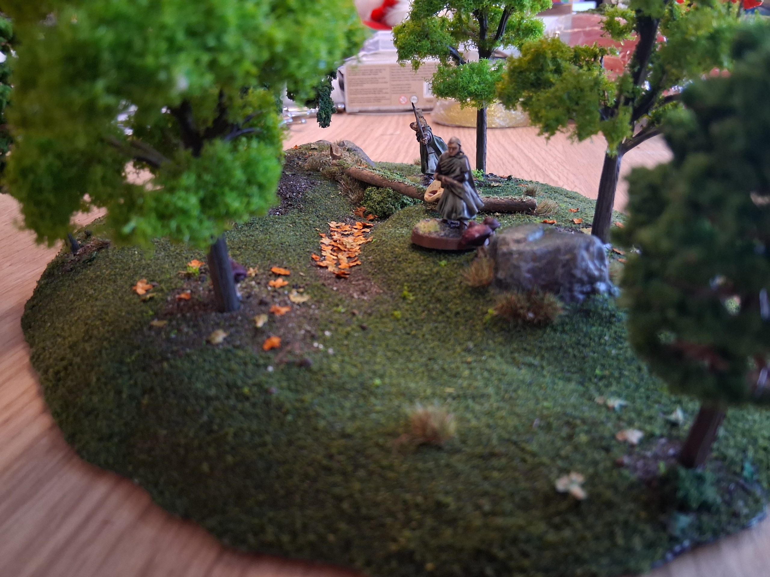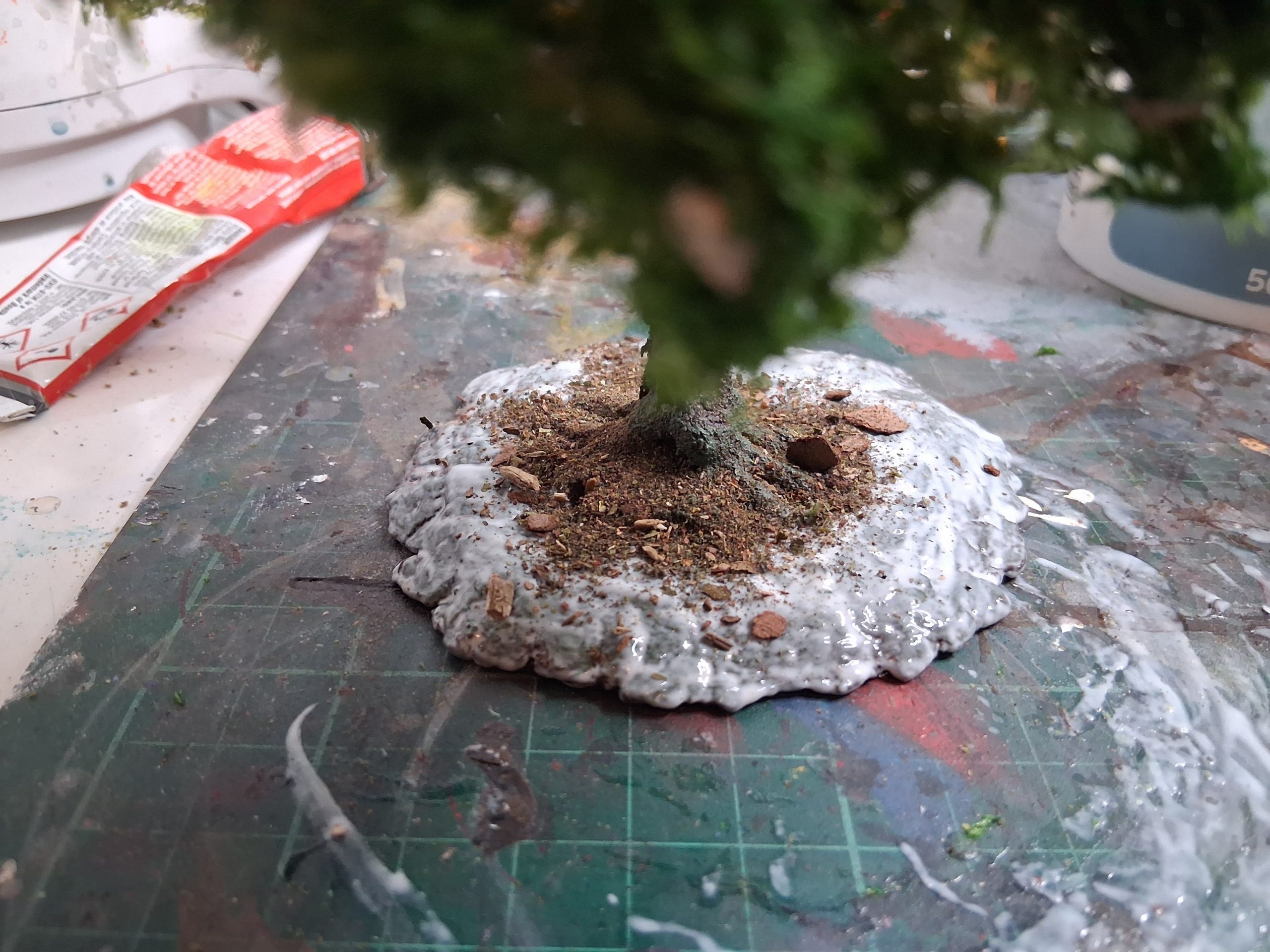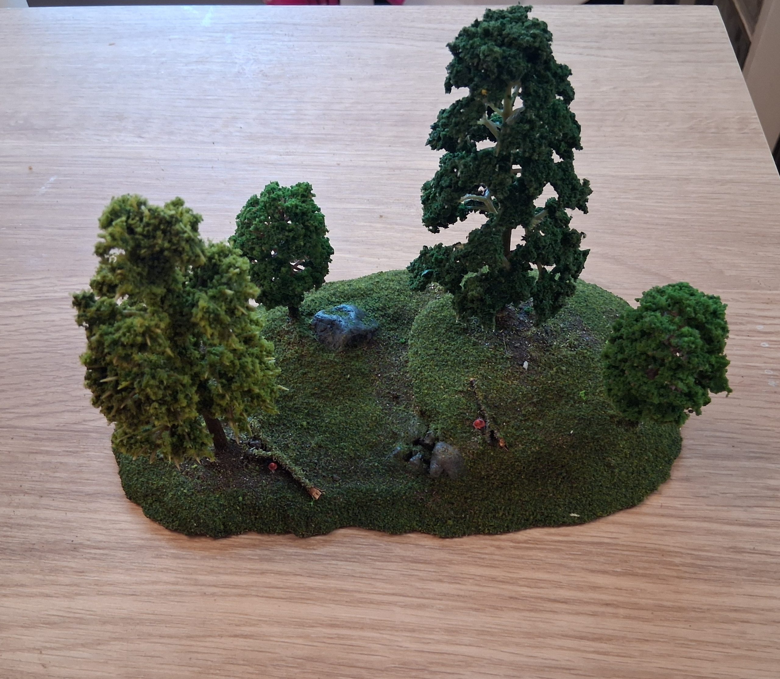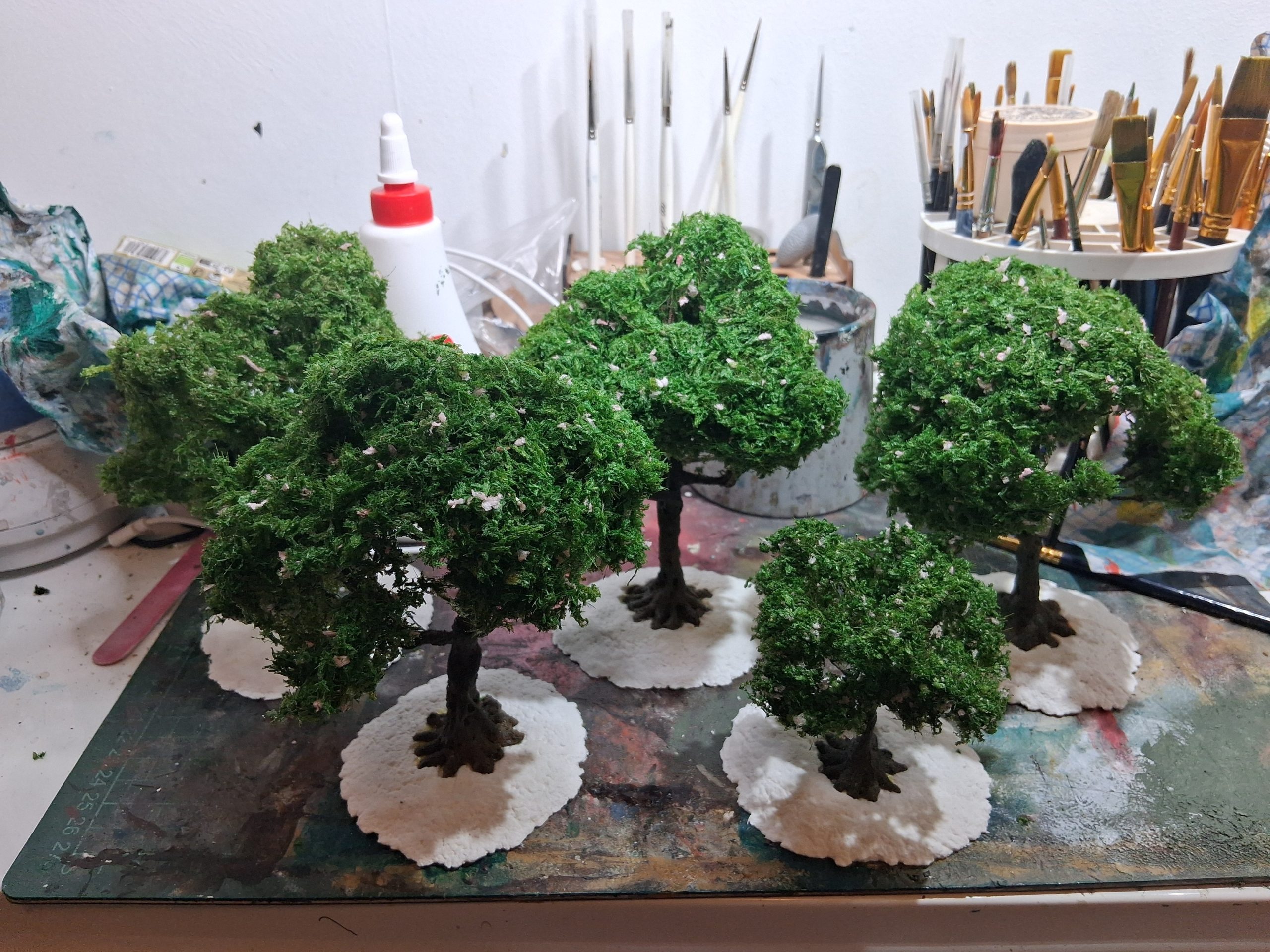 I have produced a further 3 forest bases, with another 4 in various states of completion. I have figured out that I can produce 1-2 of these per week, the limiting factors being space and time. Because I am using sculptamold, they need to be left to cure for a few days and I don’t have a lot of space so I am limited to 2. I have started a sort of production line to try and workaround that. On any given week I will make one or two new bases and leave them to dry, then I will take the two from the previous week and finish them off; painting, flocking, detailing and adding the trees.