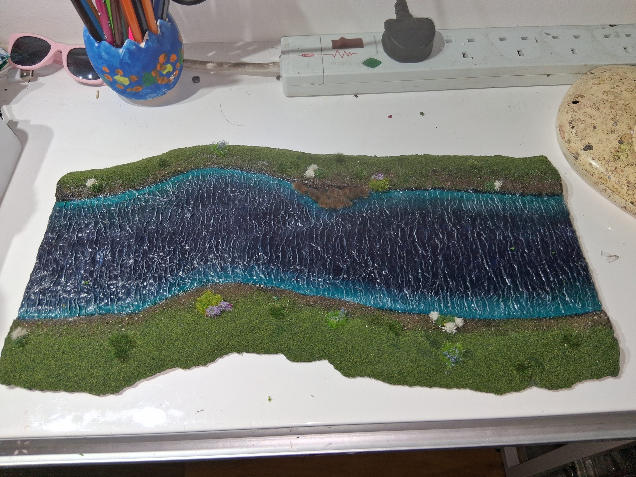 And the other test piece is a simple river section, which I think turned out really well. In hindsight, the section is too long and straight, so I will be making future pieces much shorter and with more shape to the river banks. But otherwise I think the concept is sound.