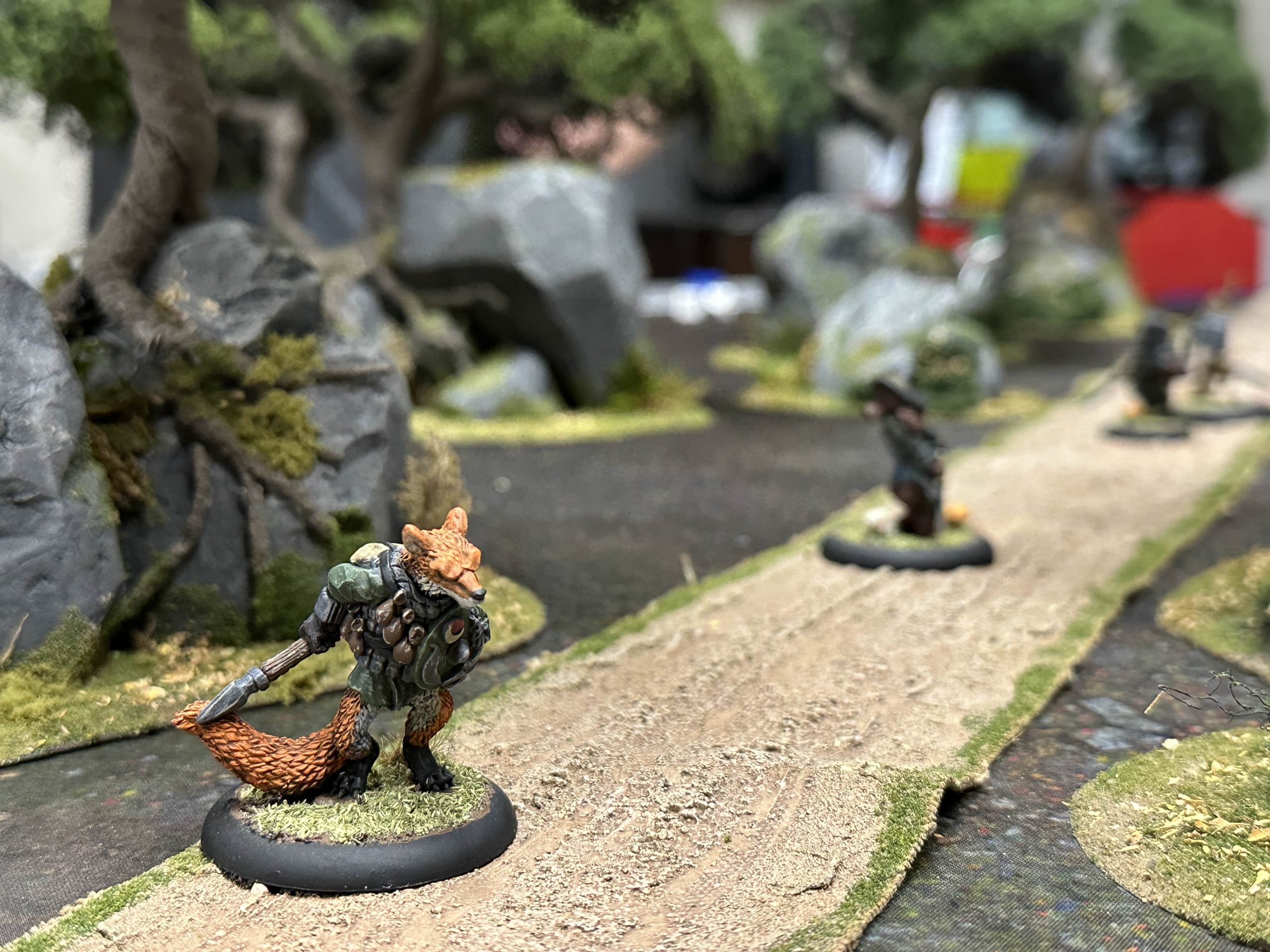 Here, at last, is the Creepy Forest in game. I’m super pleased with the playability and the how the forest served to add both visual appeal and opportunities for blocking line of sight and difficult terrain. It was also easy to perch the figures up in the trees.