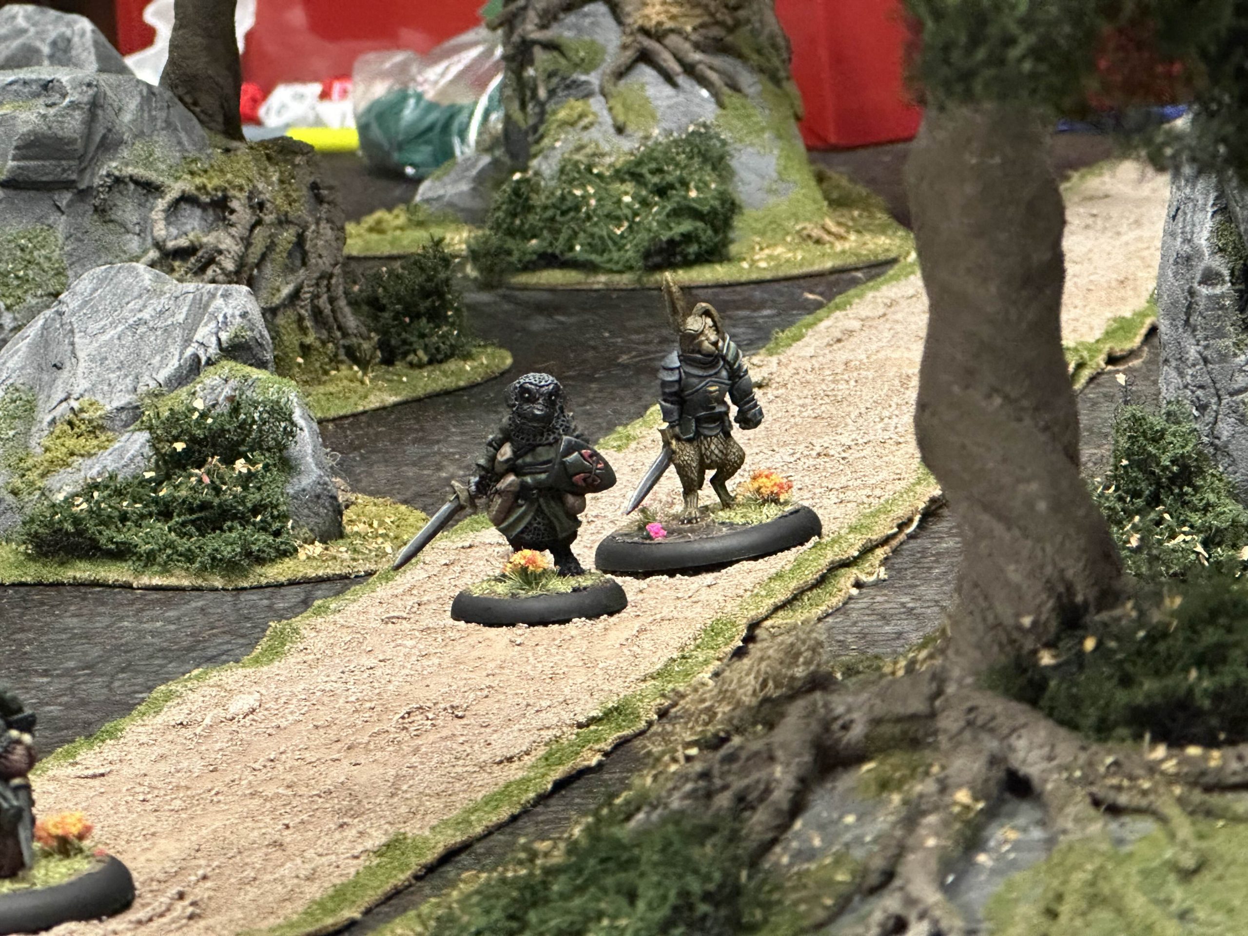 Here are some pictures of Frodo and his companions as they navigate the forest, which works great as Mirkwood or Fangorn Forest. There´s also a shot from a game in which the Garrison of Dale took on the Spiders of Mirkwood.
