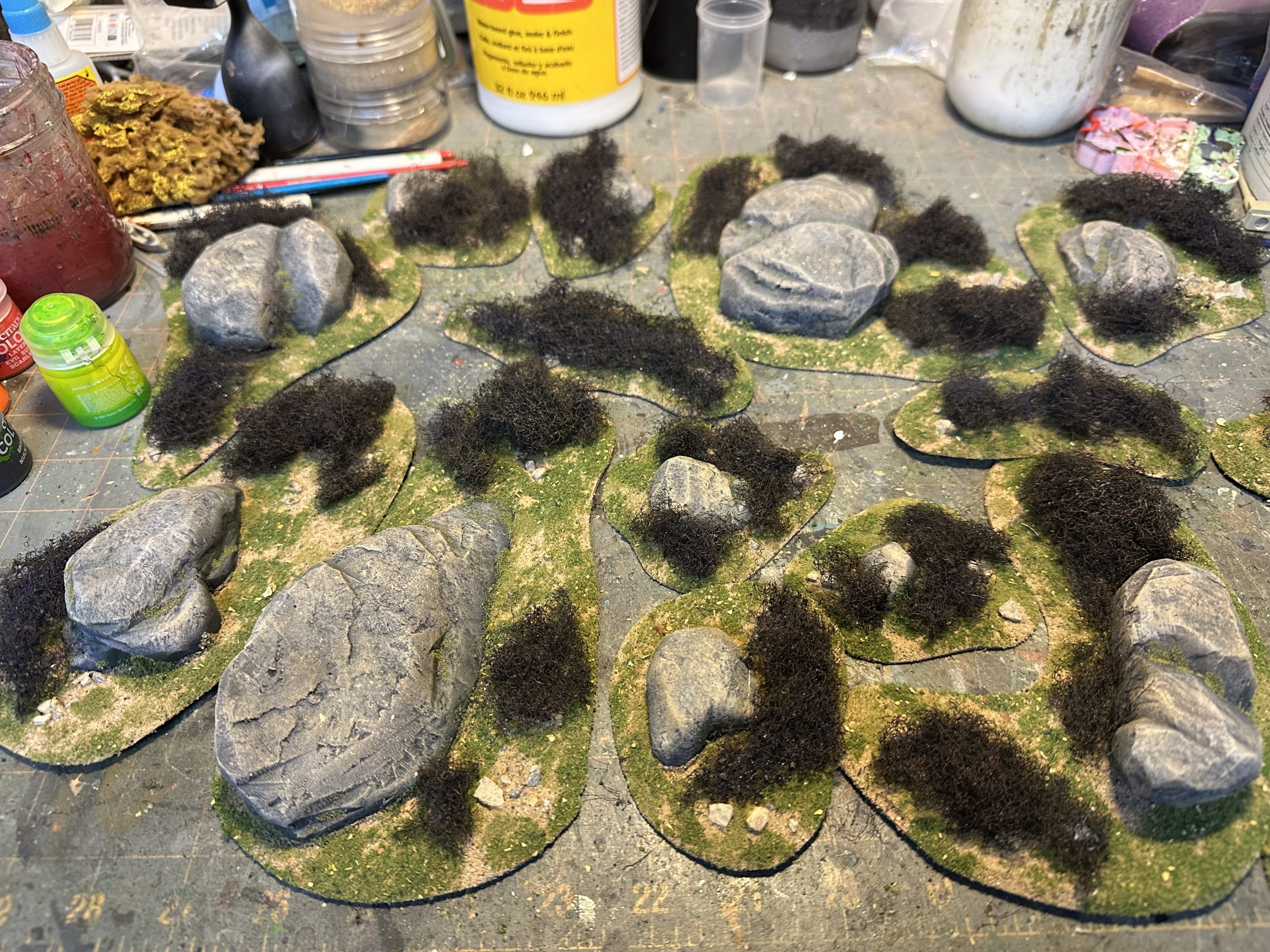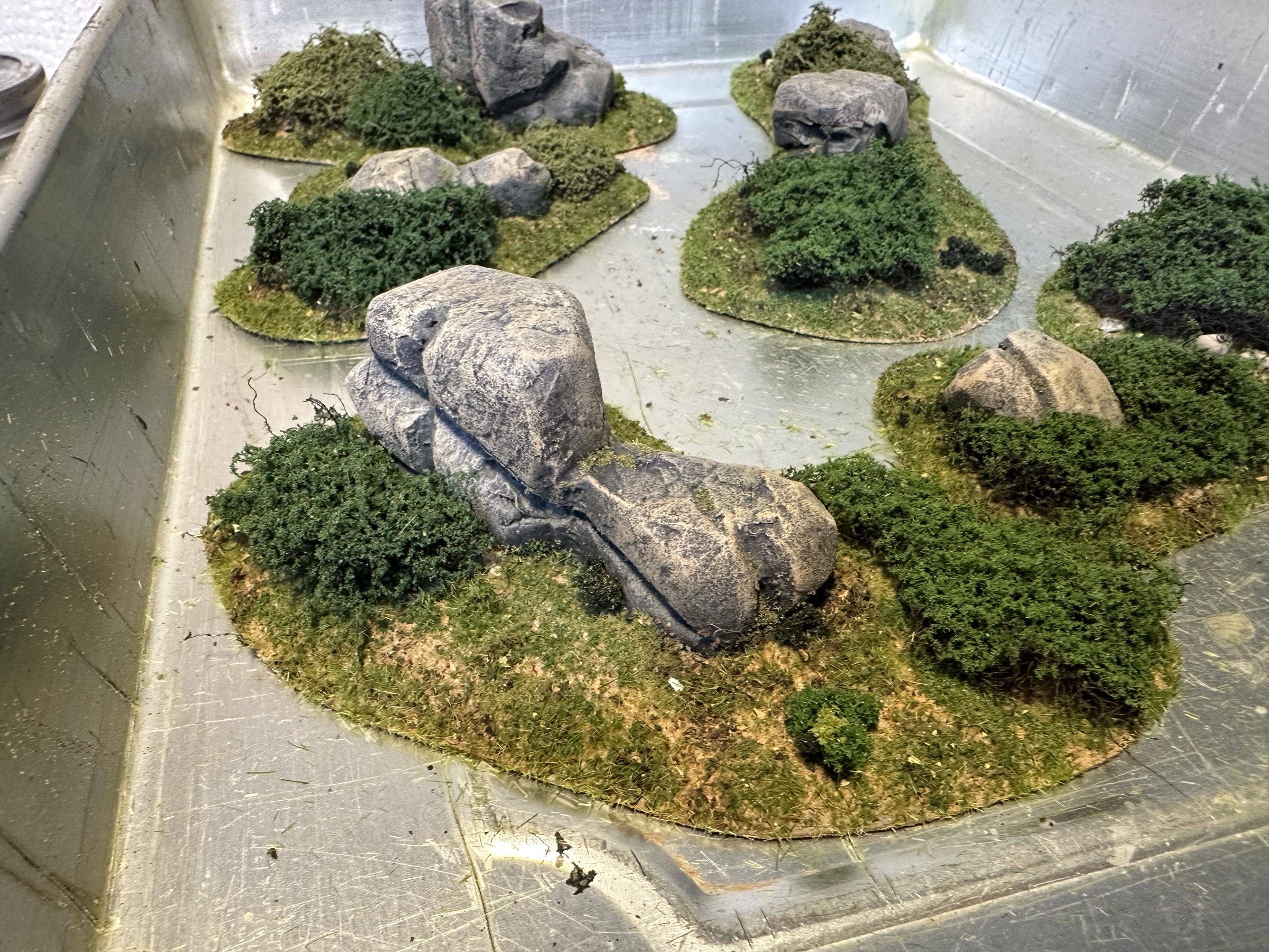 I decided that I need some more smaller, scatter terrain to go with the large rock/tree pieces.