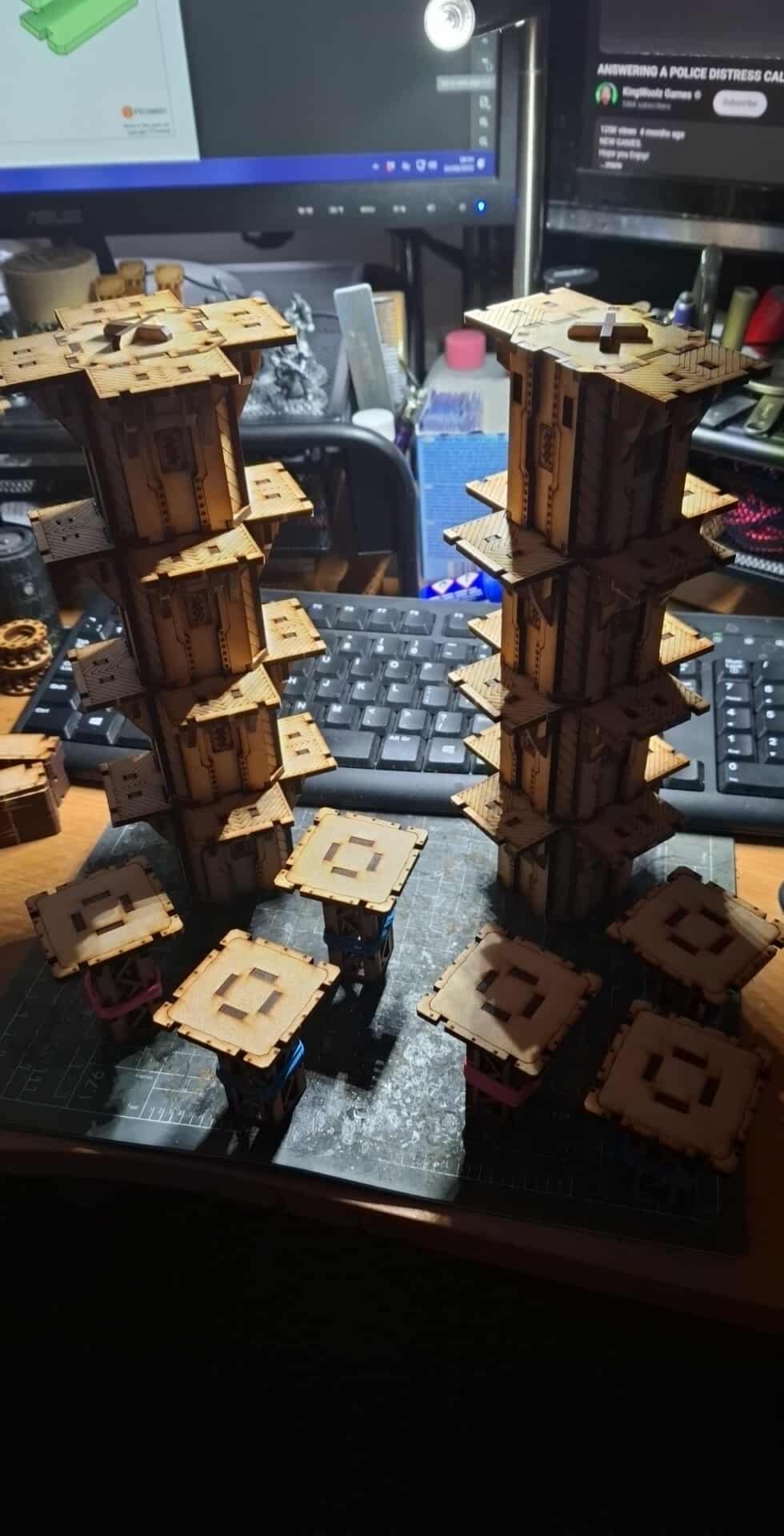 As I built the walkways, ladder and stairways, I attached them to pillars to dry and cure properly and in good form. These are REALLY nice. The stairways in particular are spaced so that a minis base can slide between them, showing that the ganger is up the stairs! Brilliant!