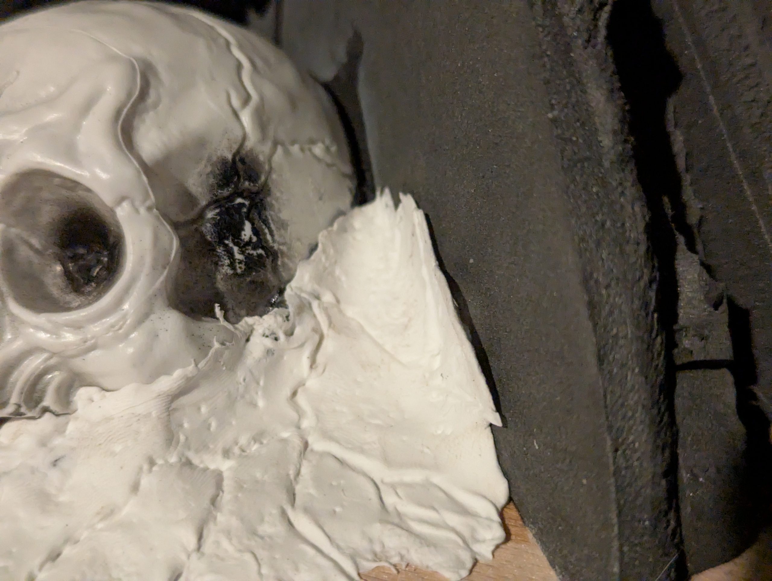 I did a small section to test adhesion and detail retention. The foam clay is a pleasure to work, with no mess or strange smells. I replicated the fractured texture of the skull which is quite convincing when cured.