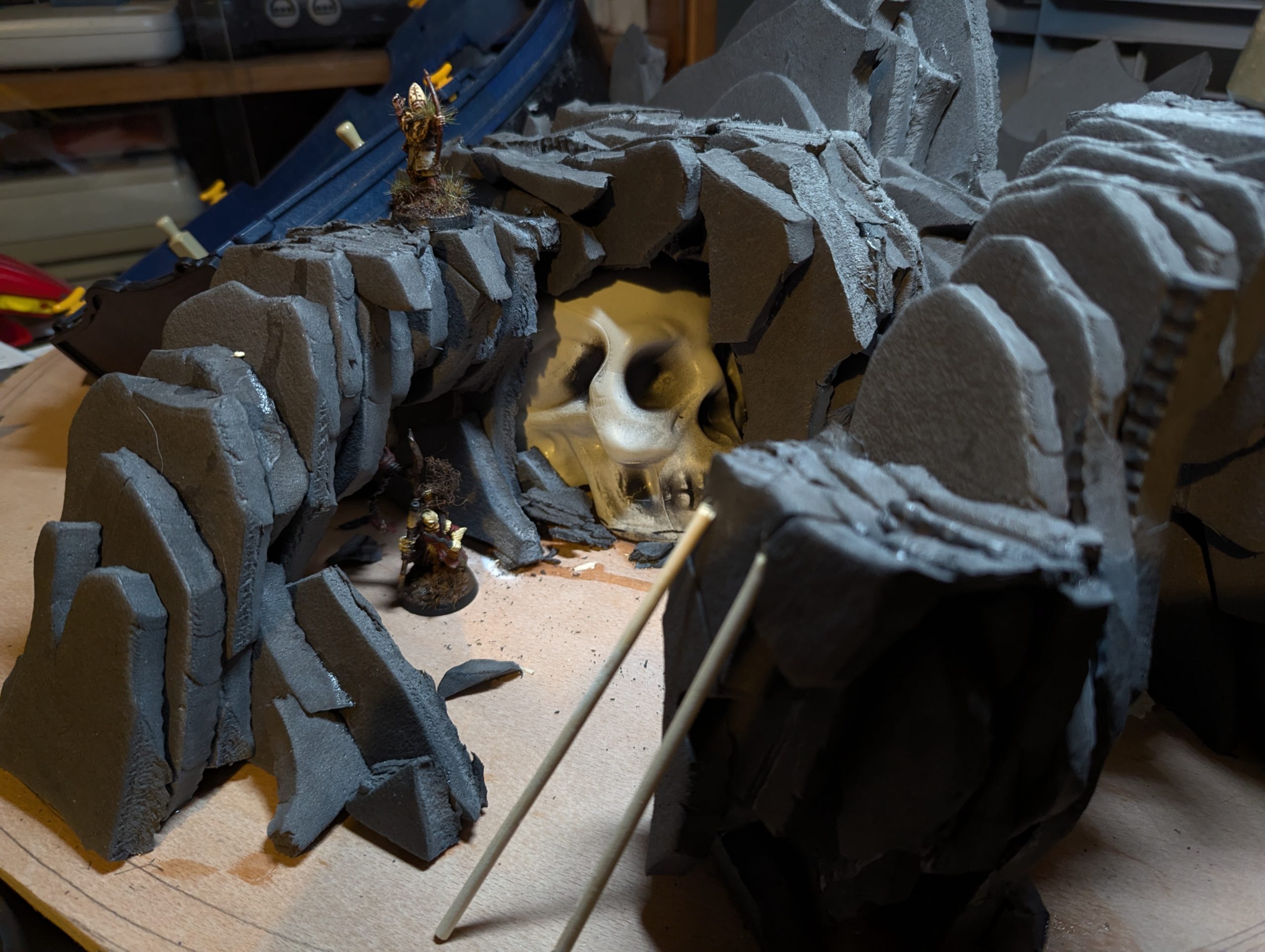 Despite covering the board with 20ft skulls I don’t want them to be a prominent part off the finished piece. They are recessed in to caves and overhangs in create more interest (and hide the heinous mould lines).